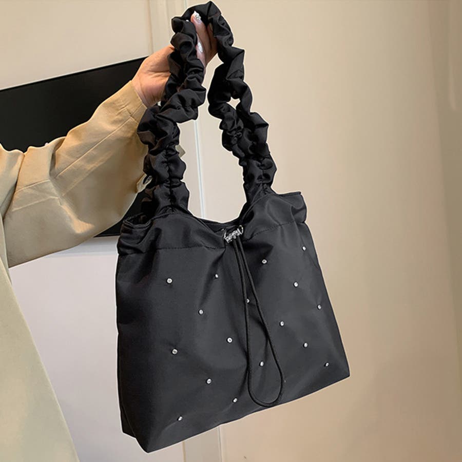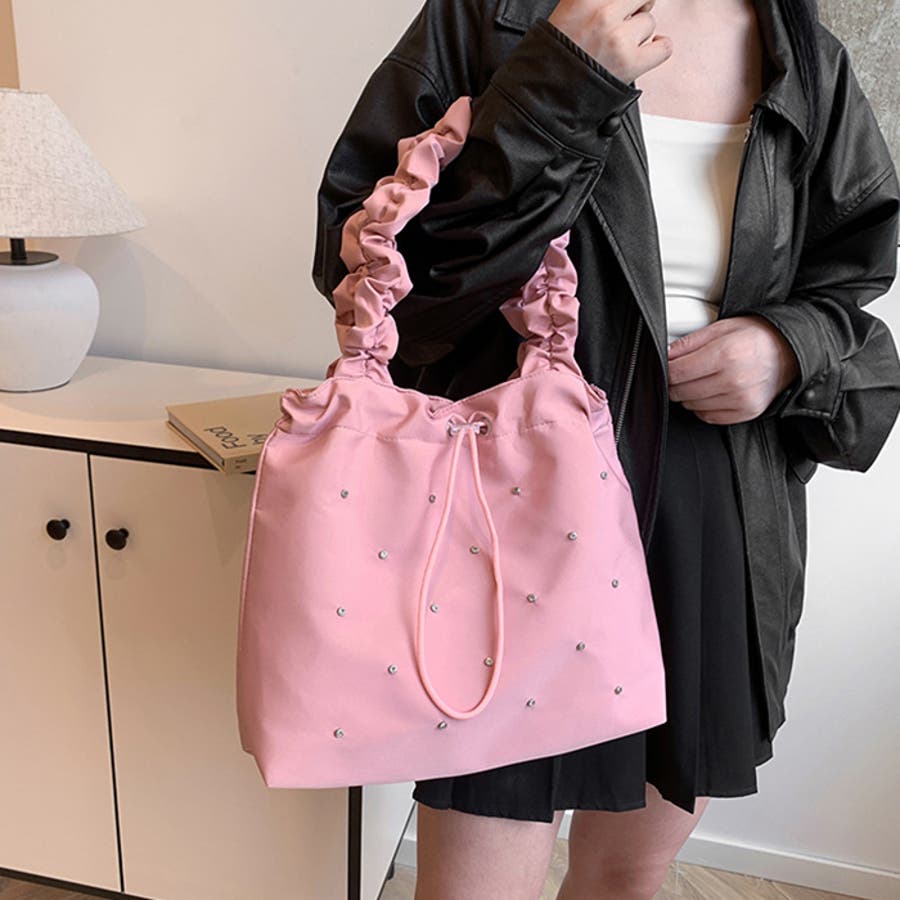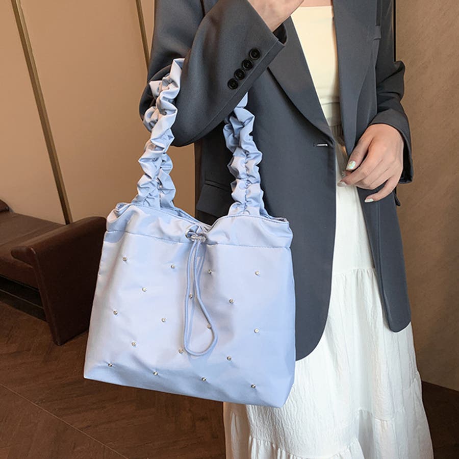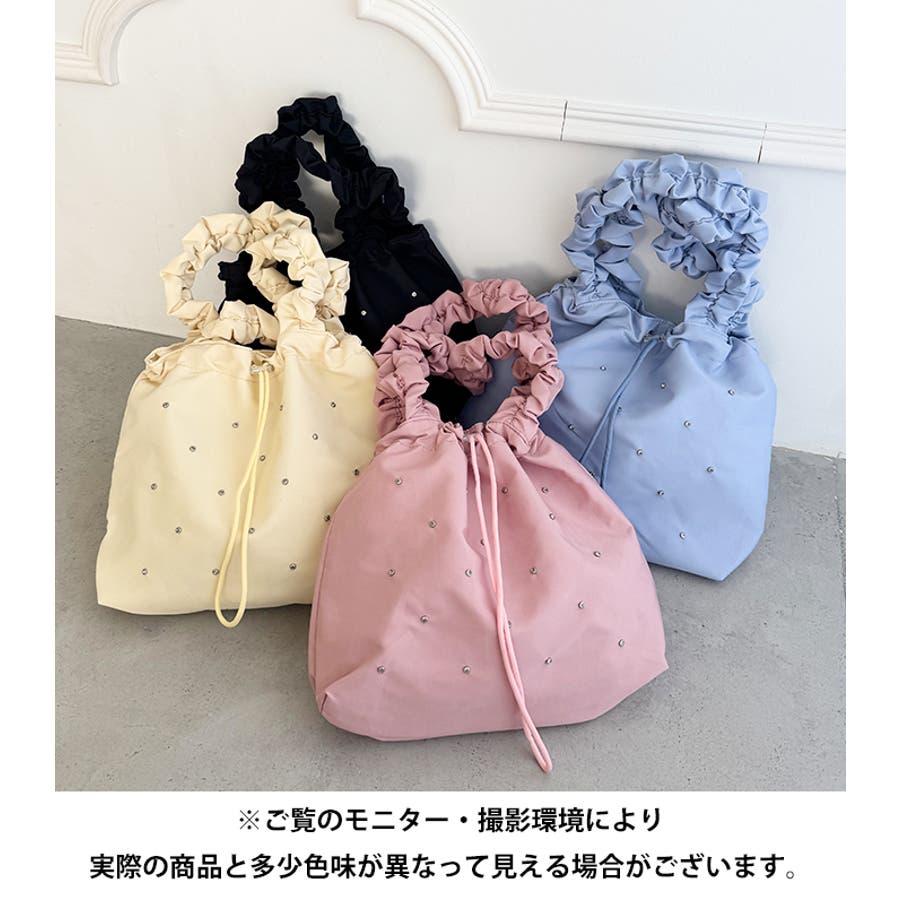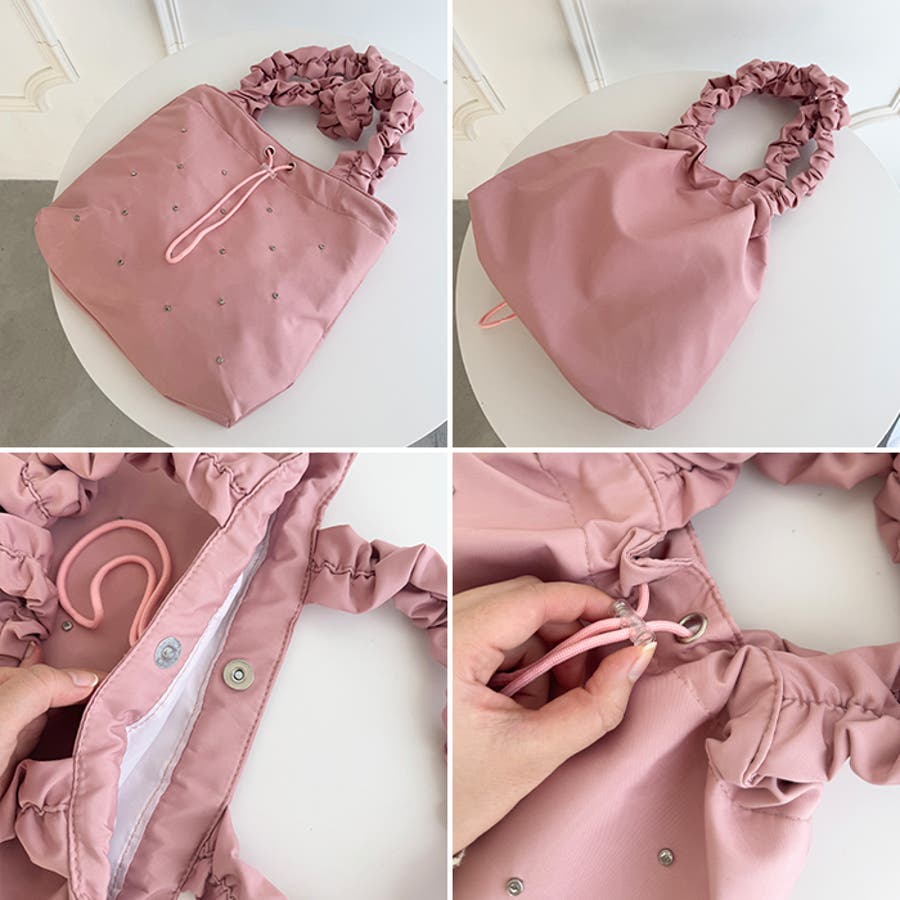 ・ナイロン素材&ドロストでスポーティながらもギャザーハンドルで可愛らしい印象