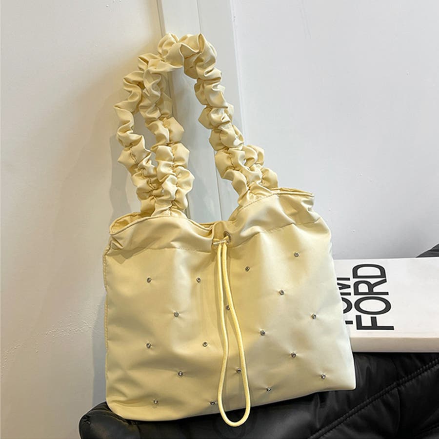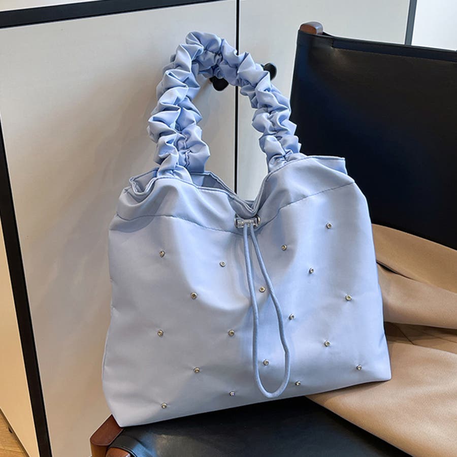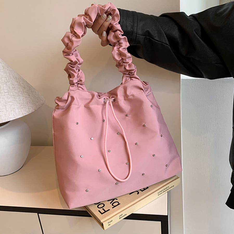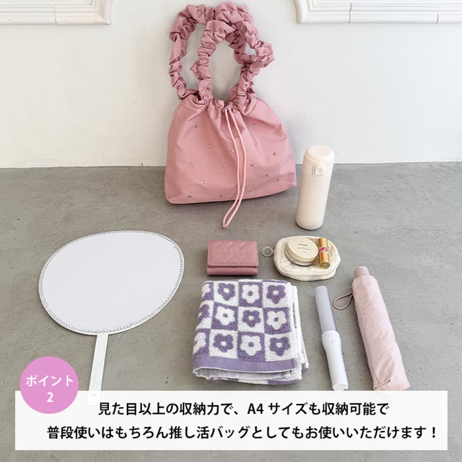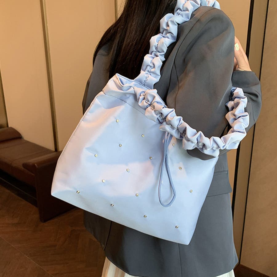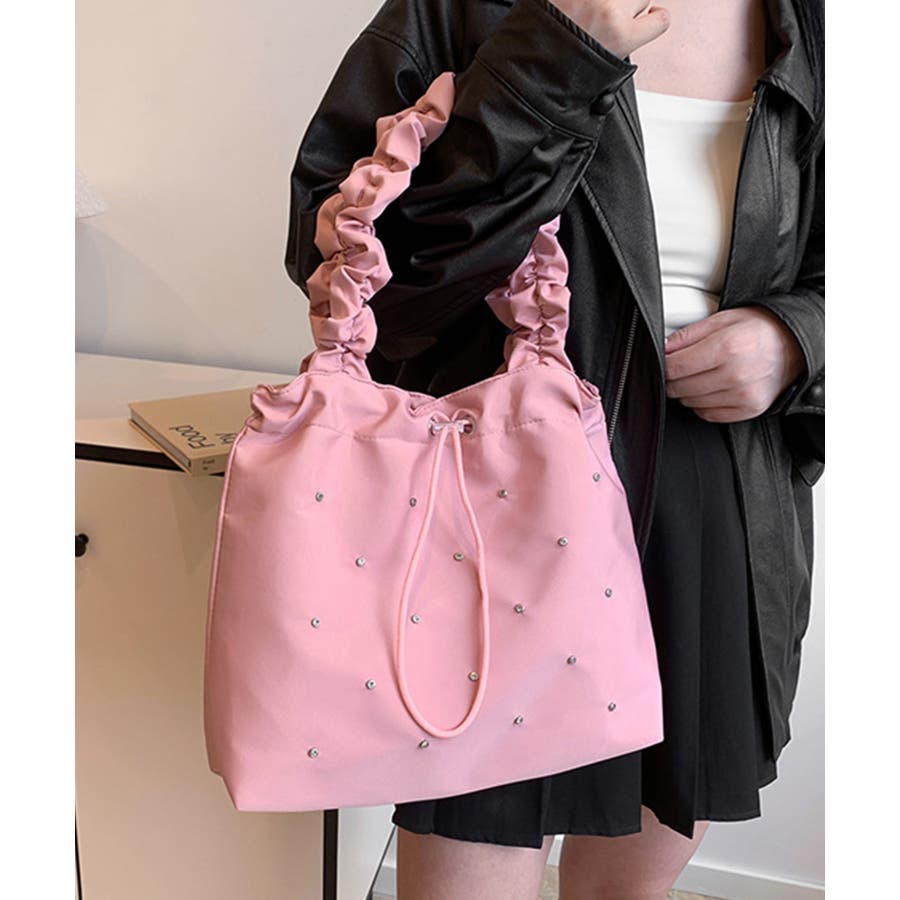 ・ナイロン素材&ドロストでスポーティながらもギャザーハンドルで可愛らしい印象