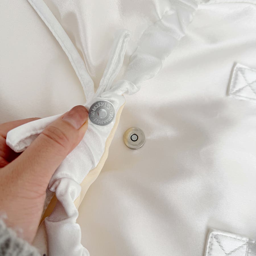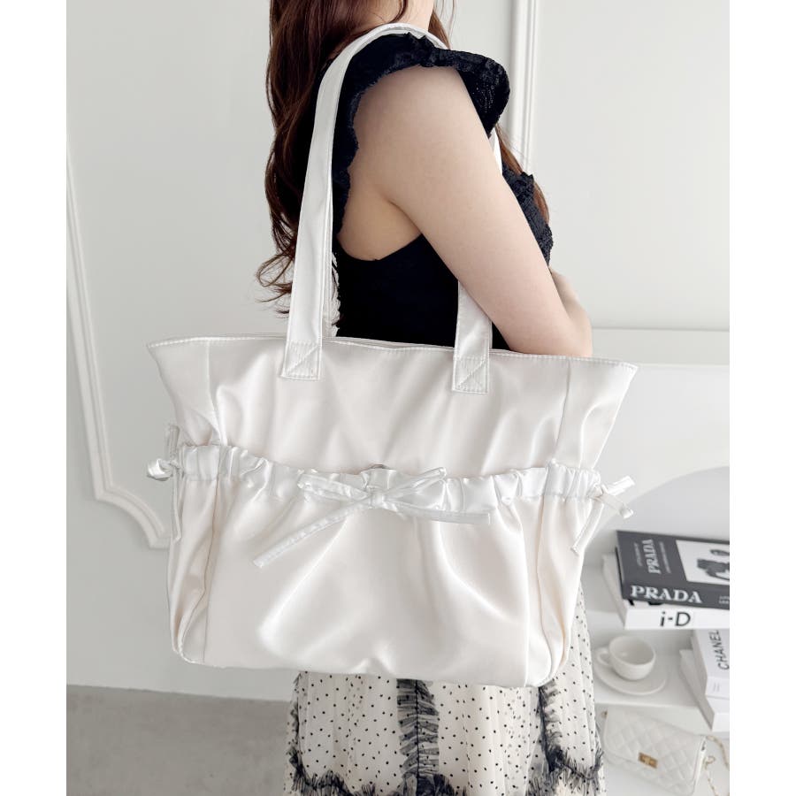 ・程よく光沢感のあるサテンライクな素材がガーリーコーデにマッチ