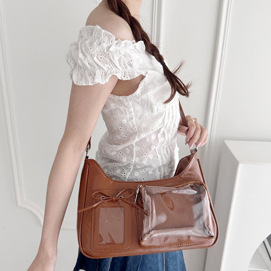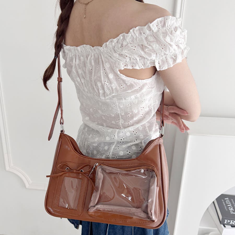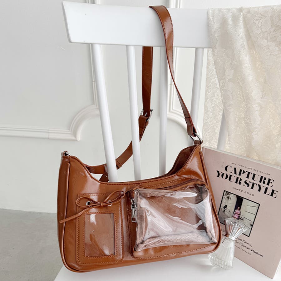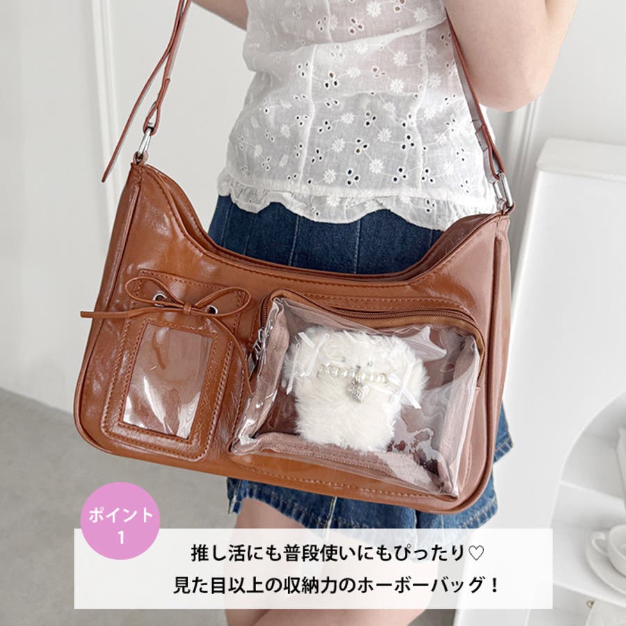 【ブラウン】クリアポケットホーボーバッグ/痛バッグ