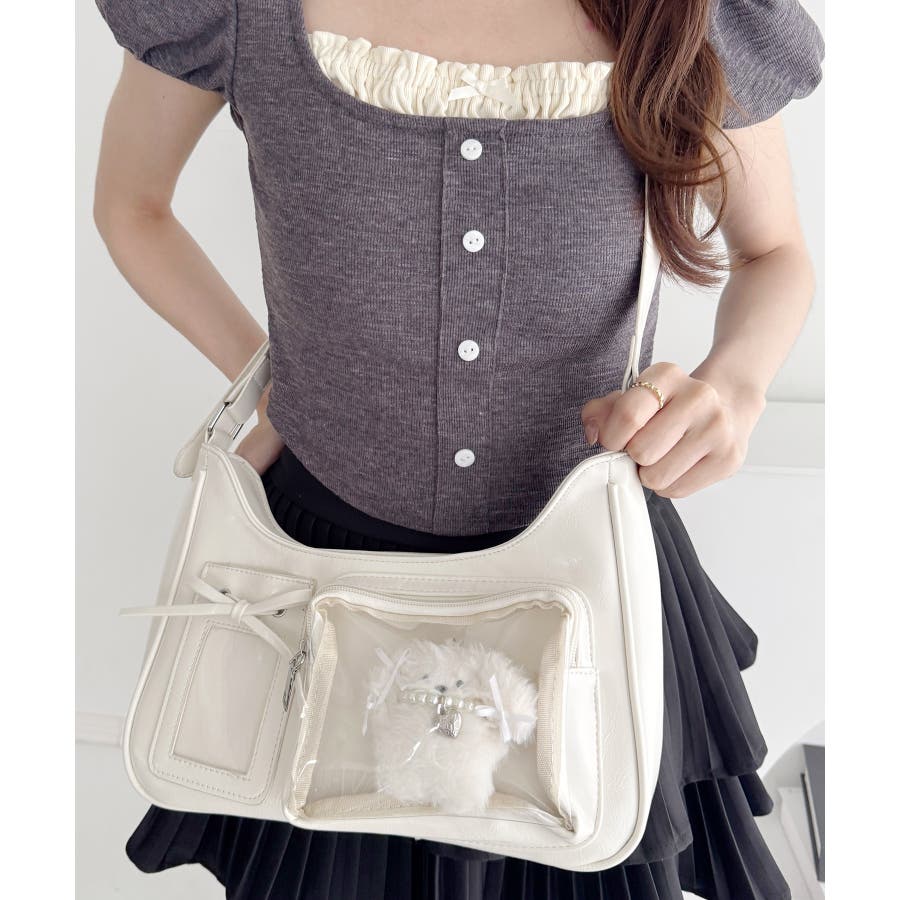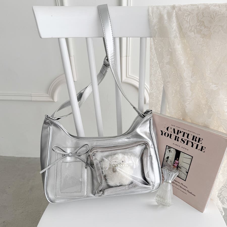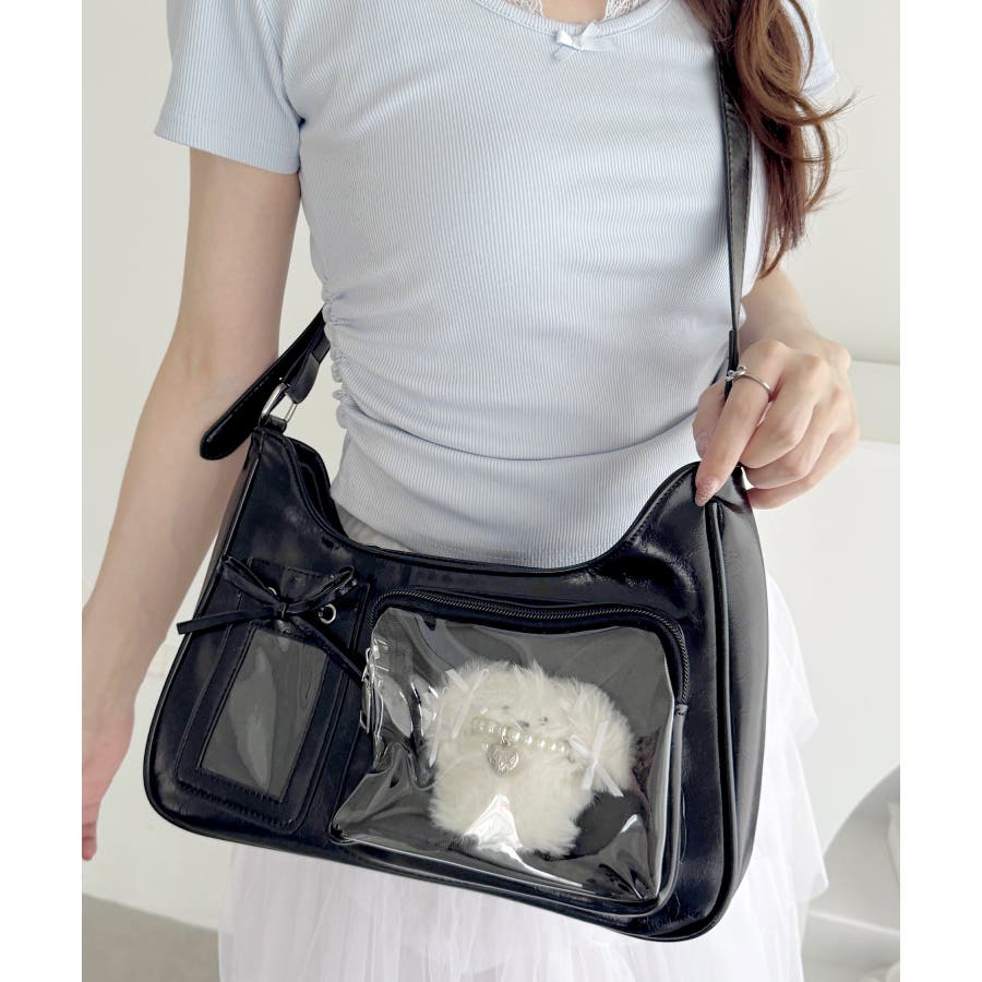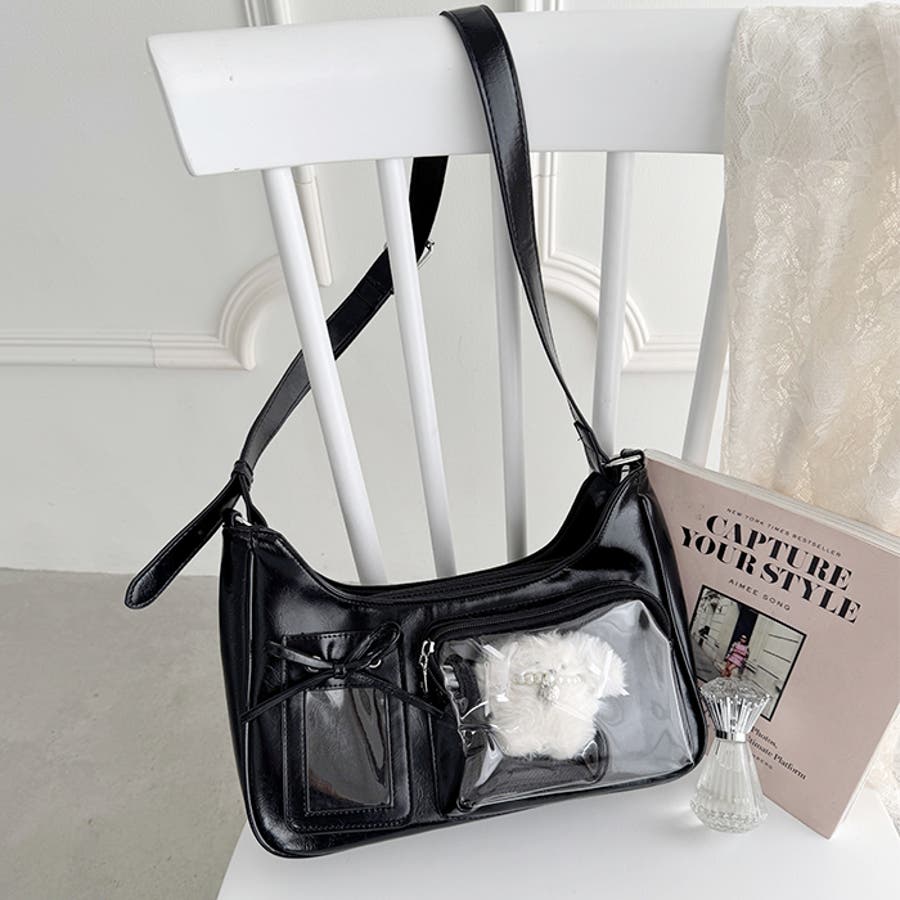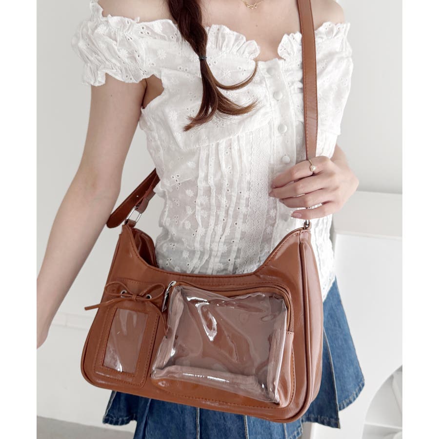 【ブラウン】クリアポケットホーボーバッグ/痛バッグ