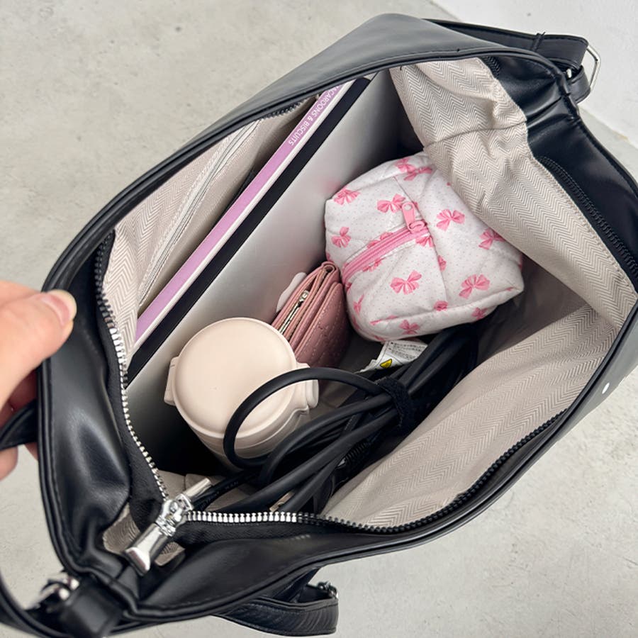 ・マチ付きの立体感あるデザインで、ファスナー開閉で安心して使える