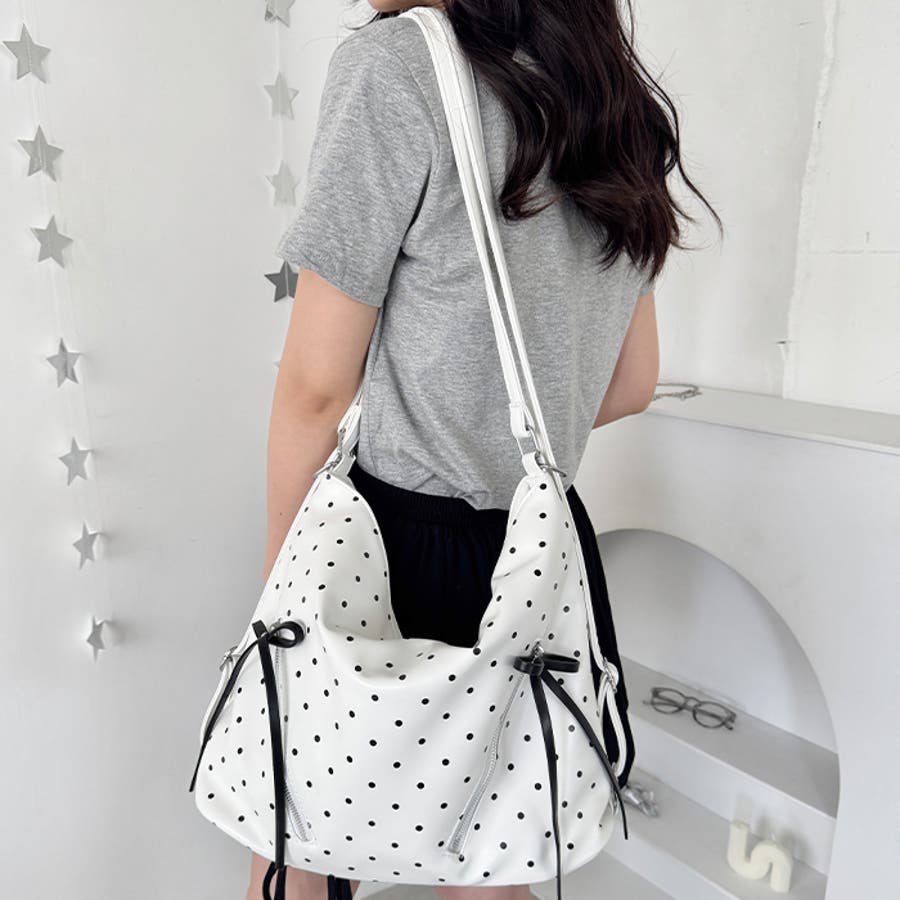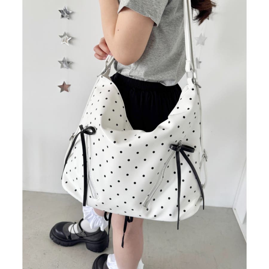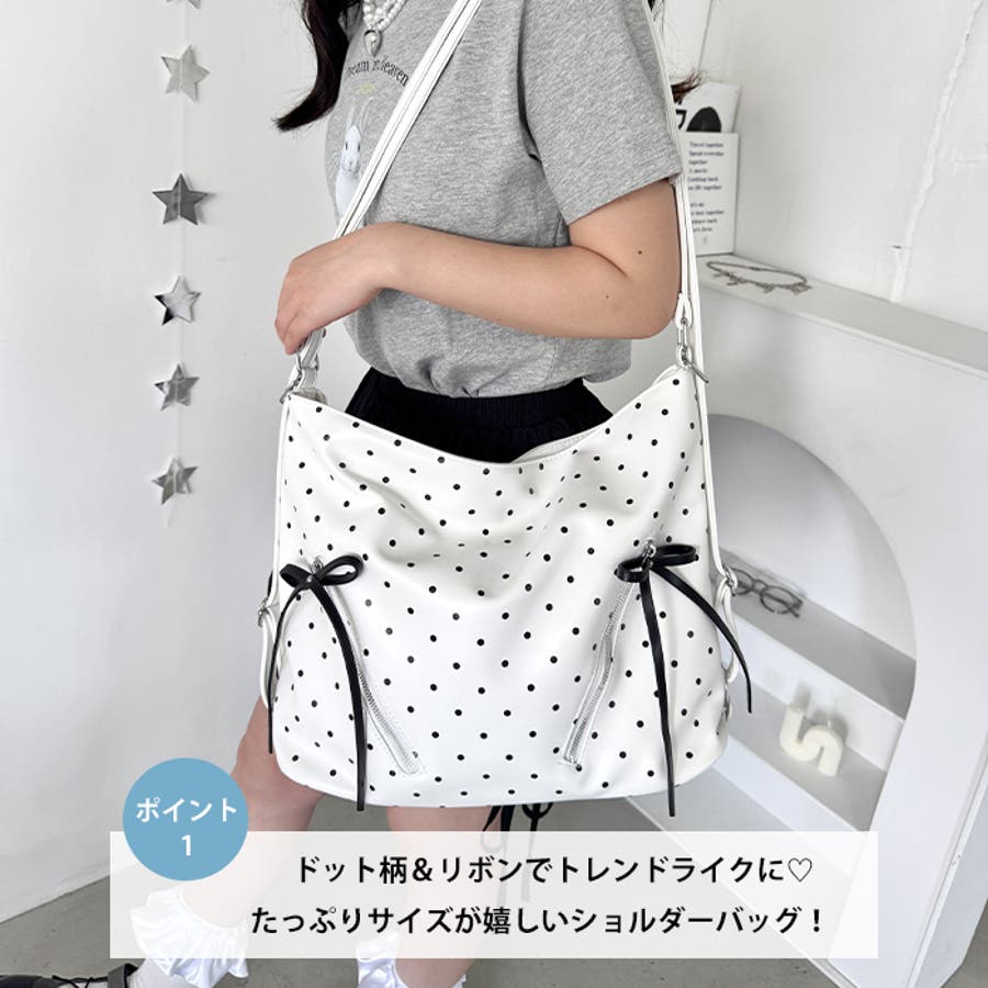 ・トレンドの水玉模様&リボンがアクセントのショルダーバッグ