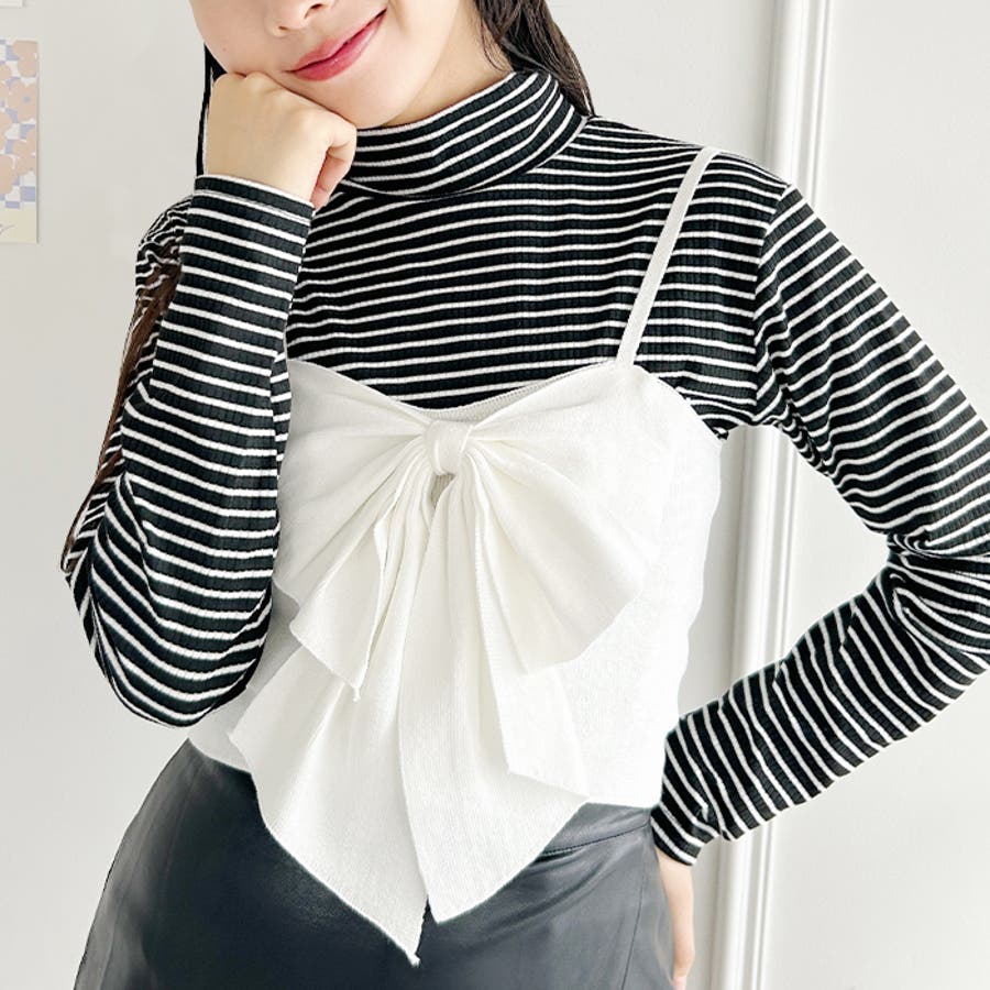 いつものコーデにプラスするだけで一気にお洒落度がアップする、ビッグリボンビスチェ。