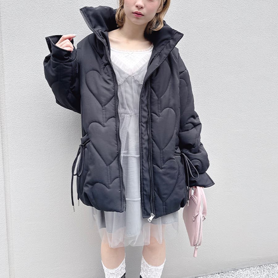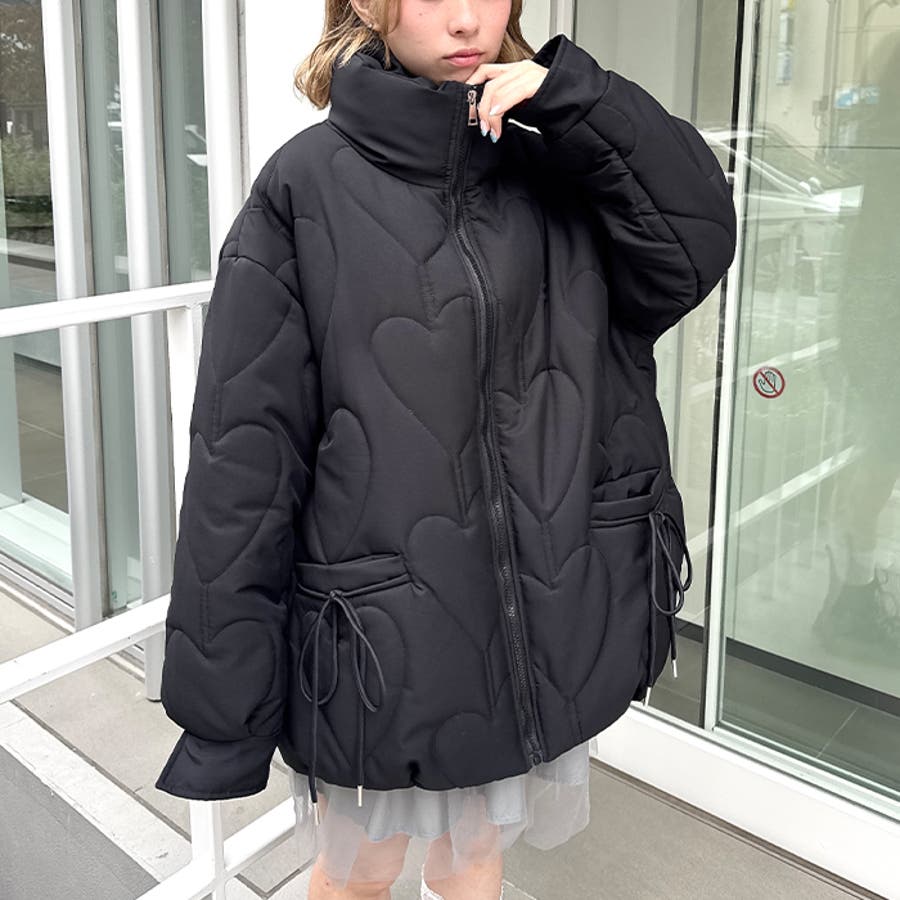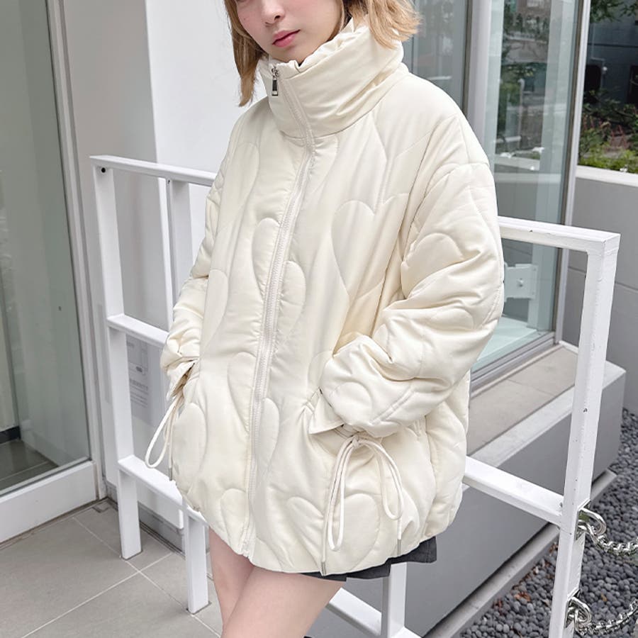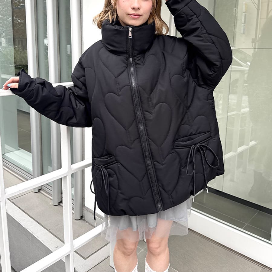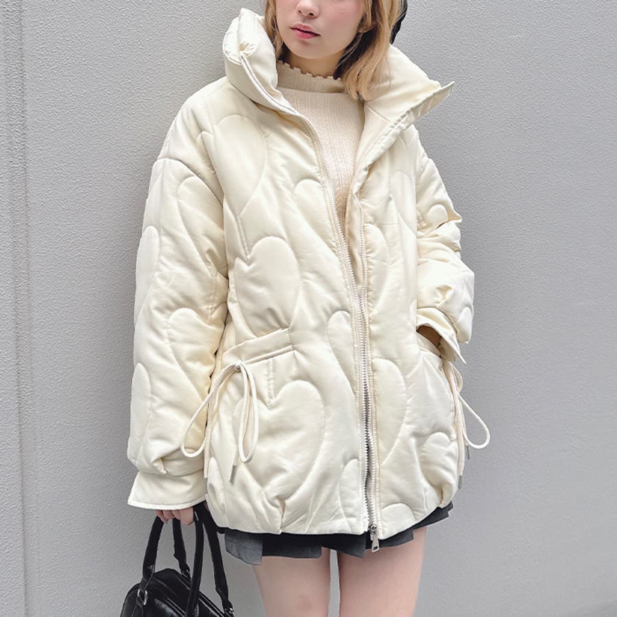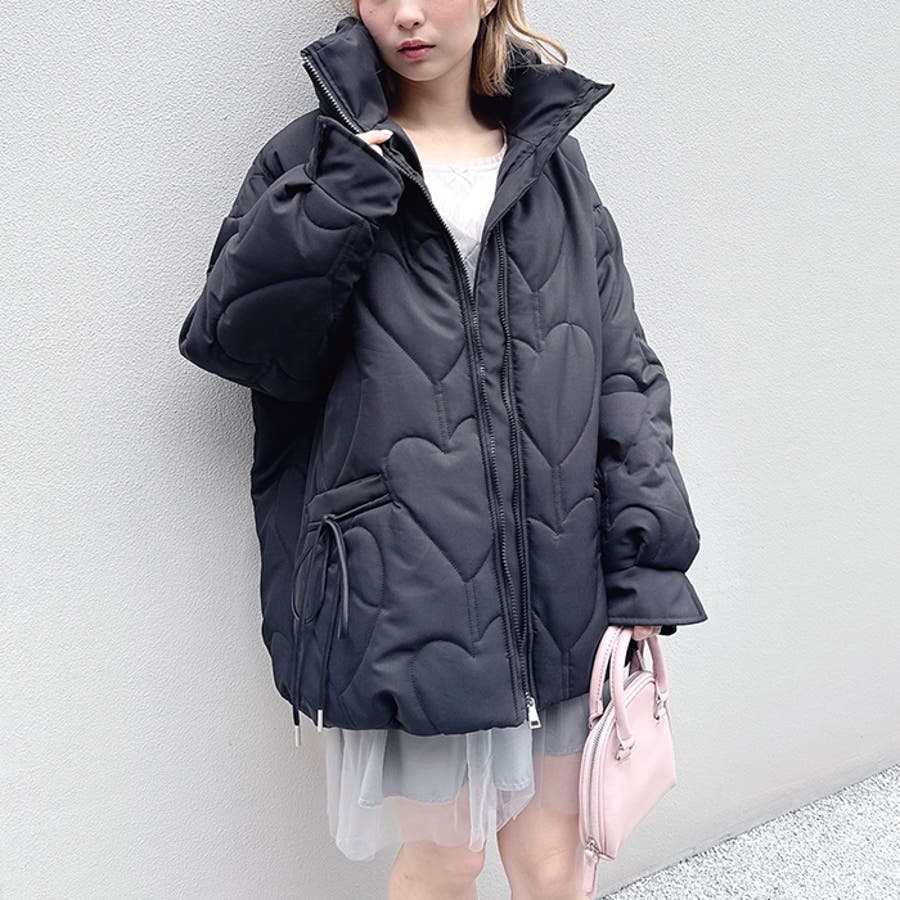 ・大きなハートが可愛いオーバーサイズのキルティングコート
