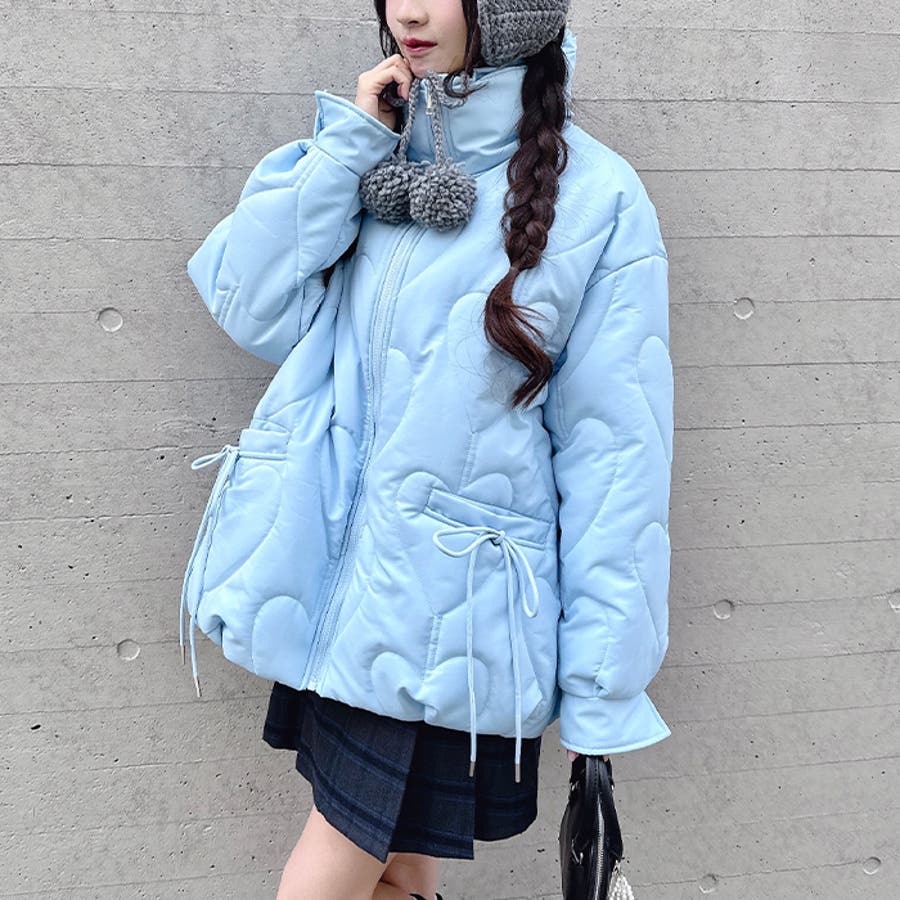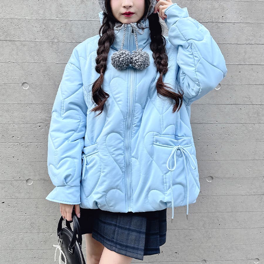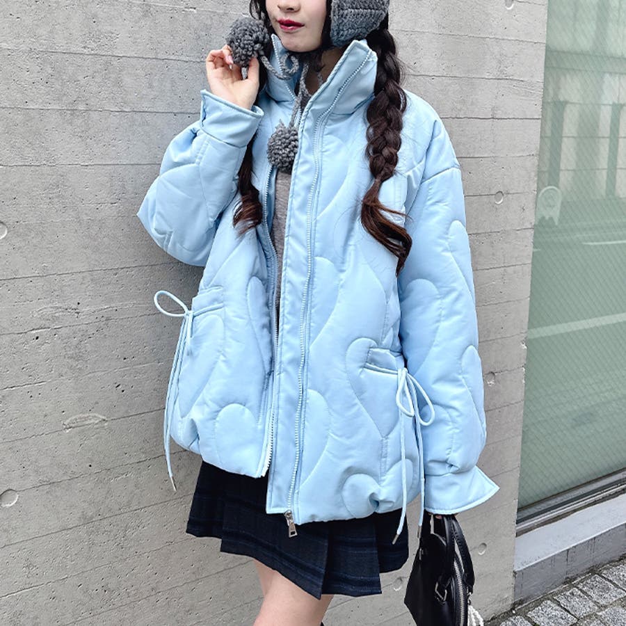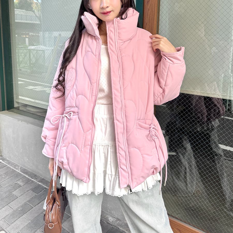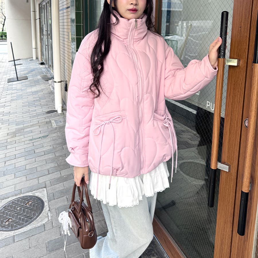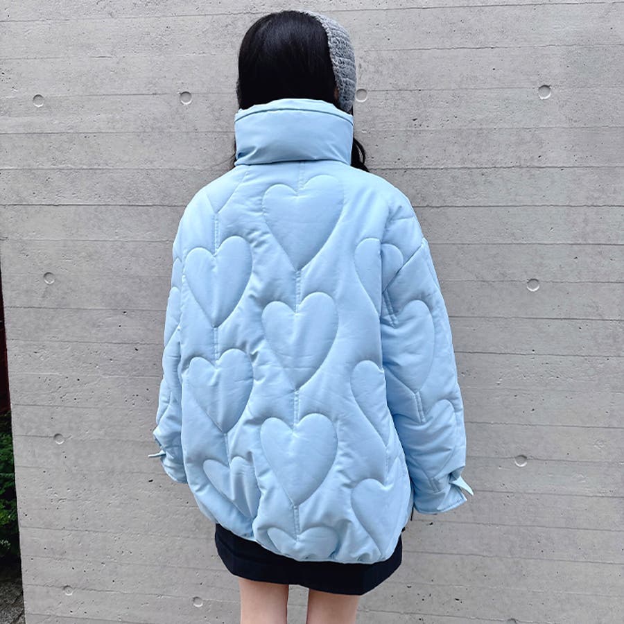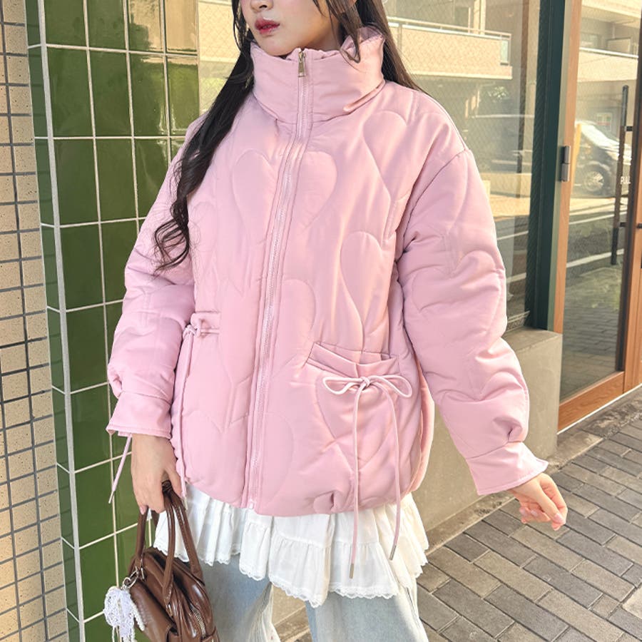 ・大きなハートが可愛いオーバーサイズのキルティングコート