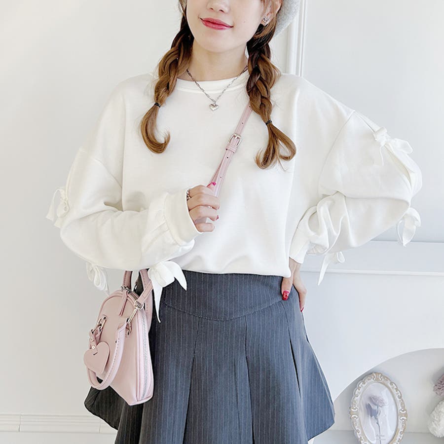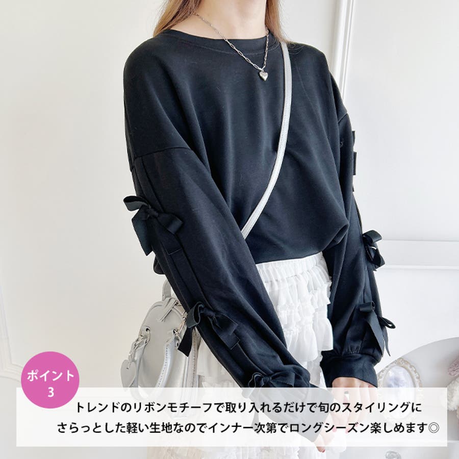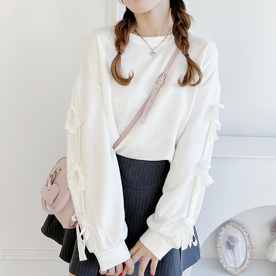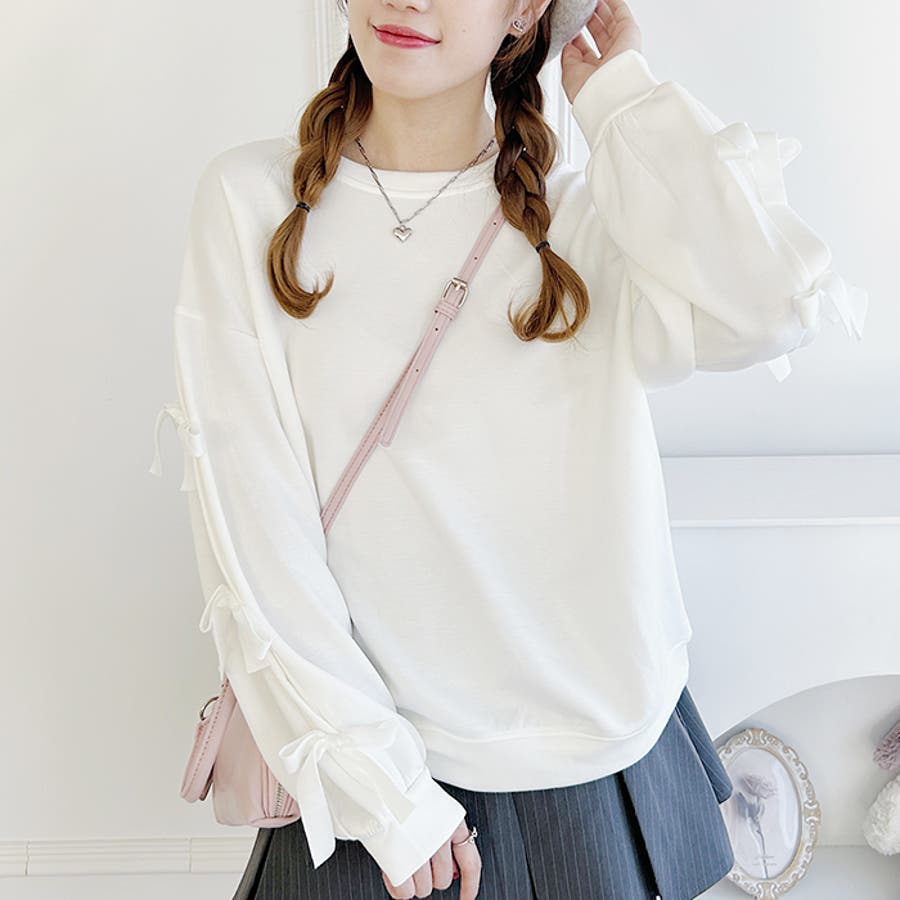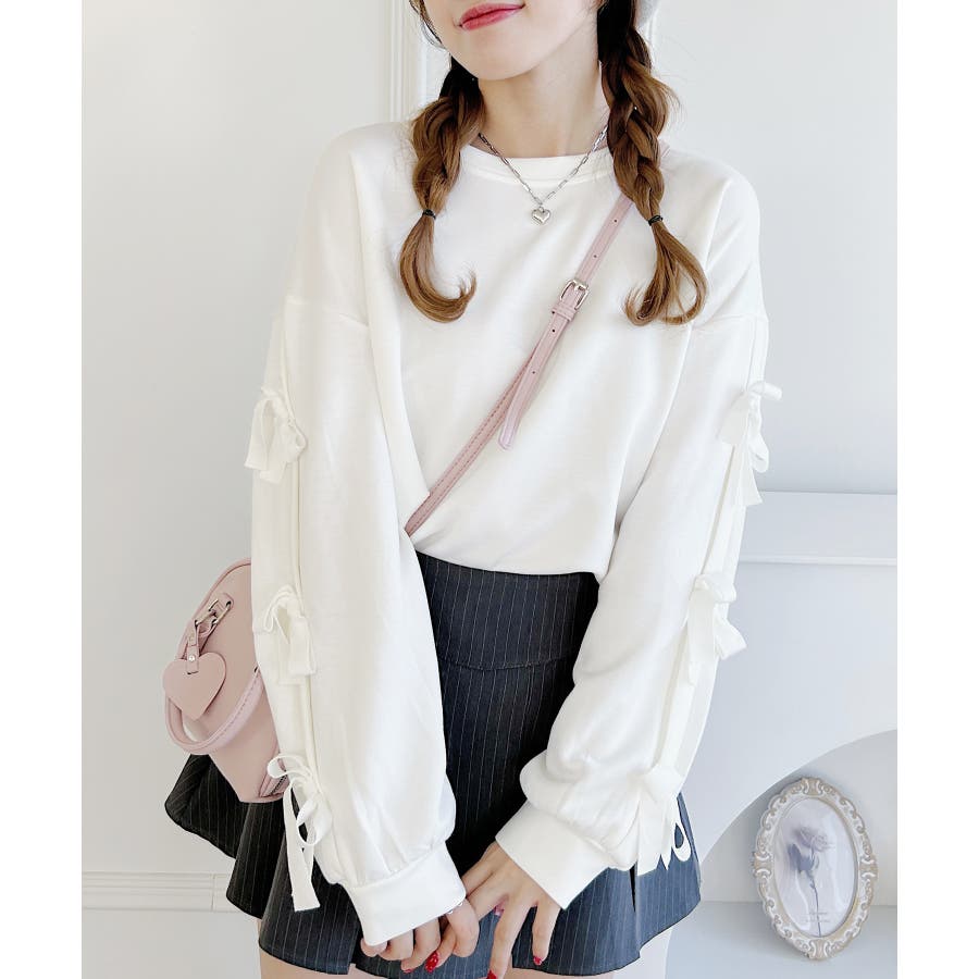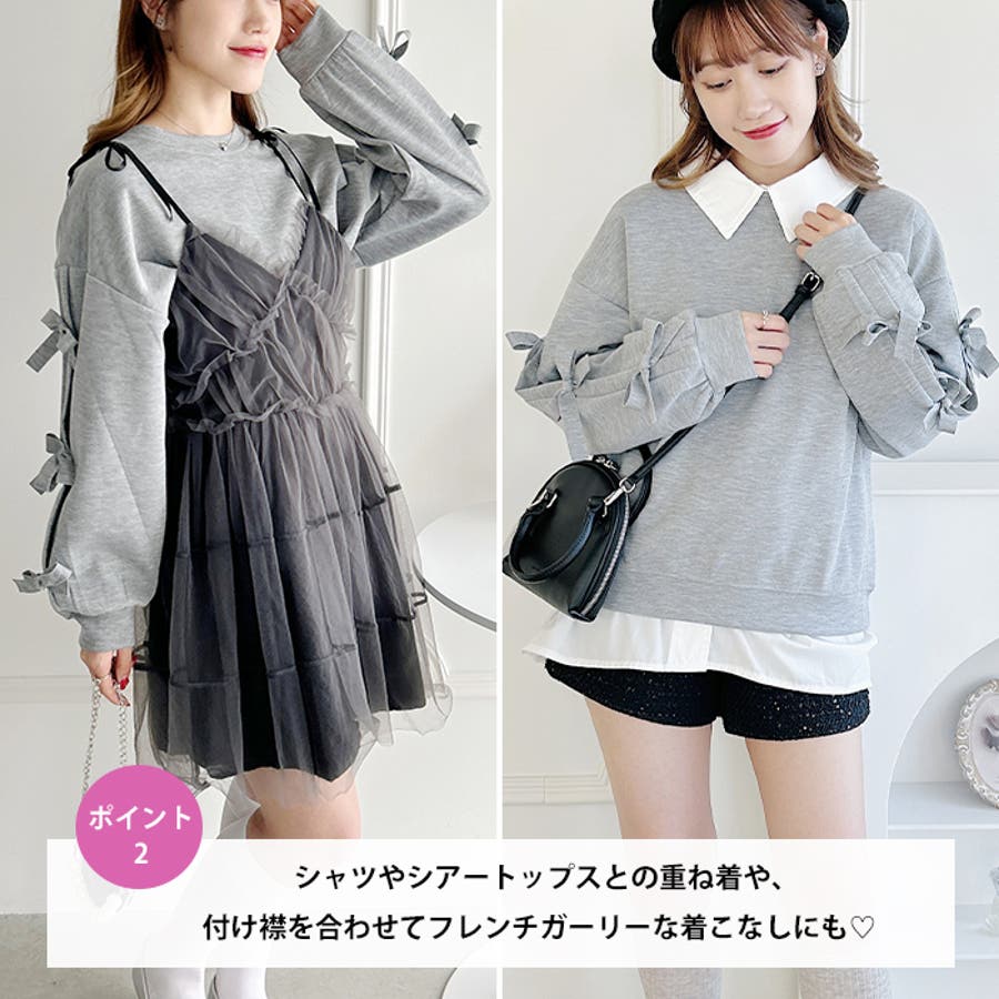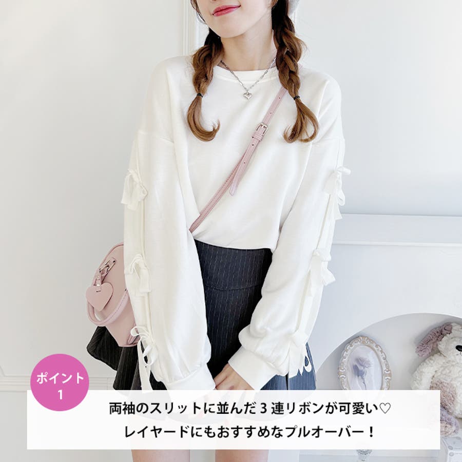 ・両袖のスリットに並んだ3連リボンが可愛いスウェットトップス