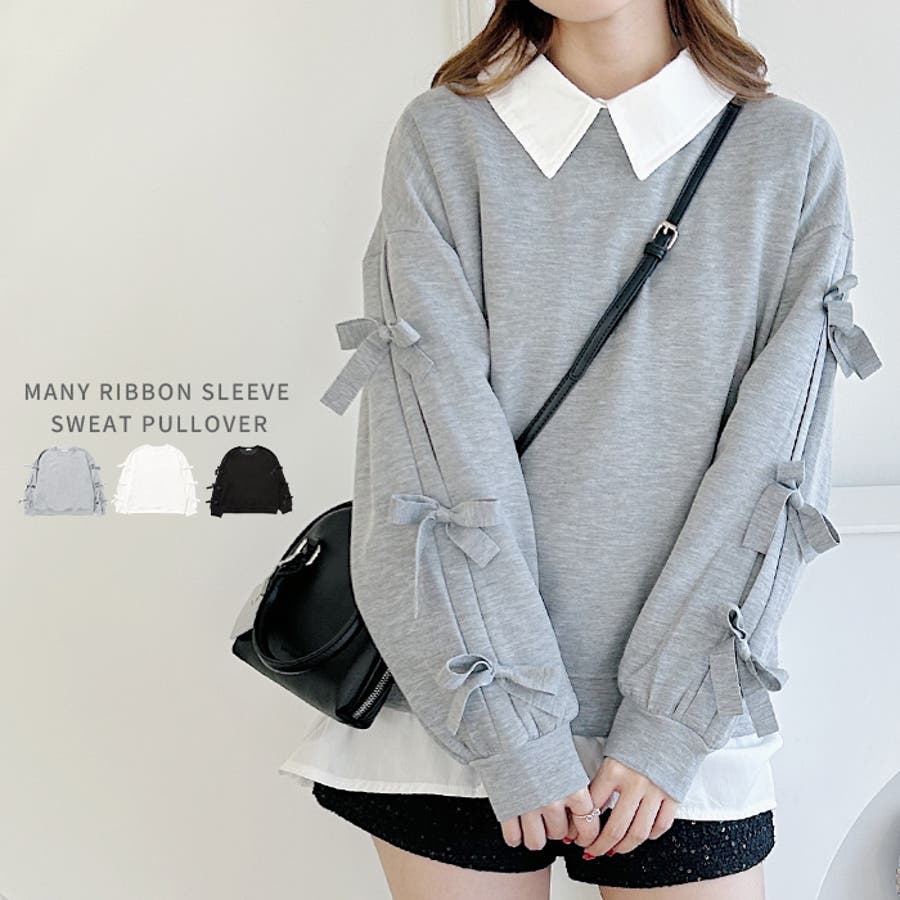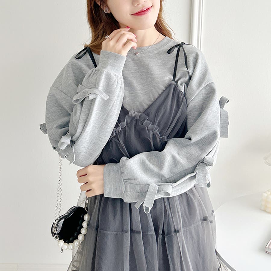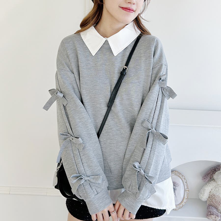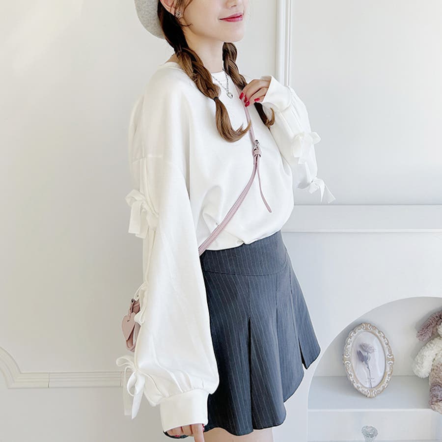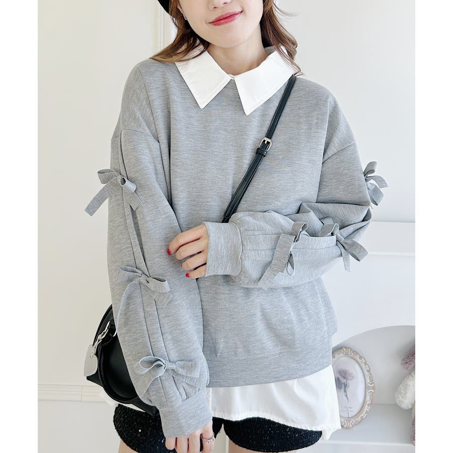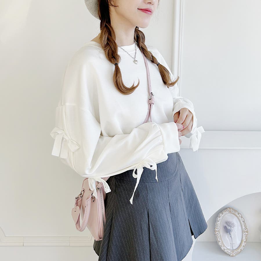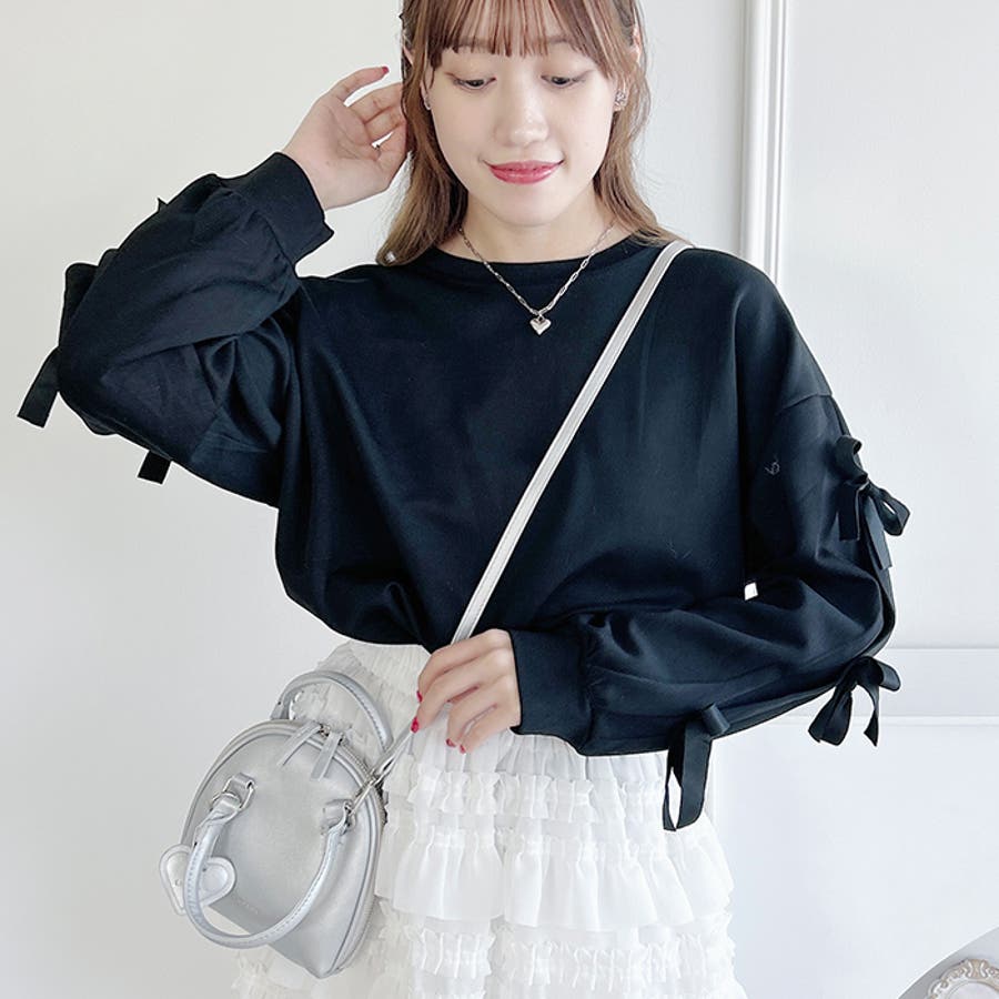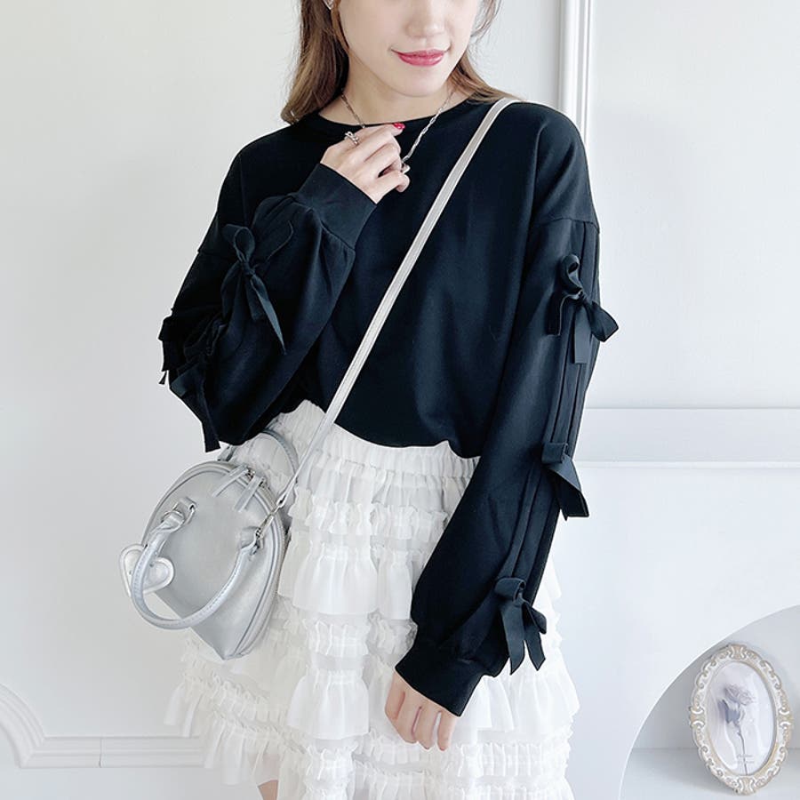 ・両袖のスリットに並んだ3連リボンが可愛いスウェットトップス