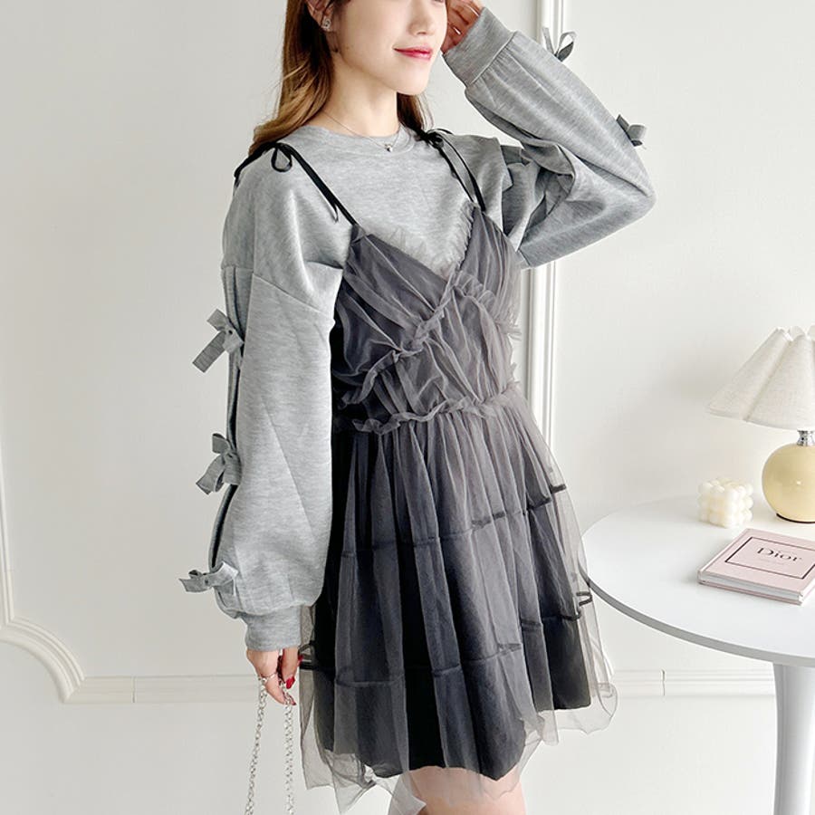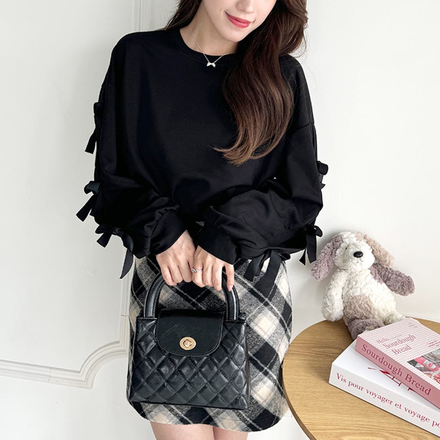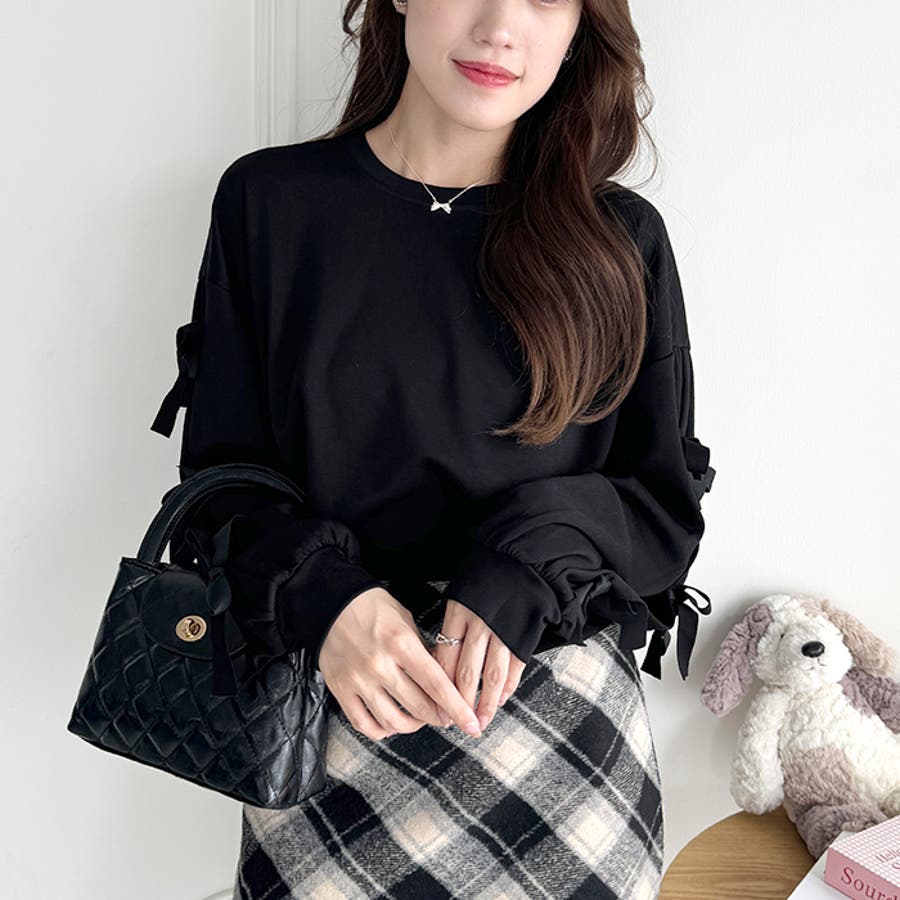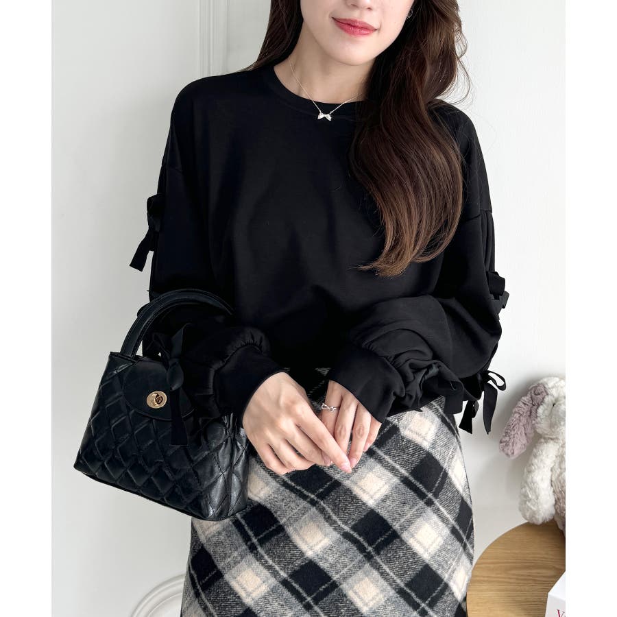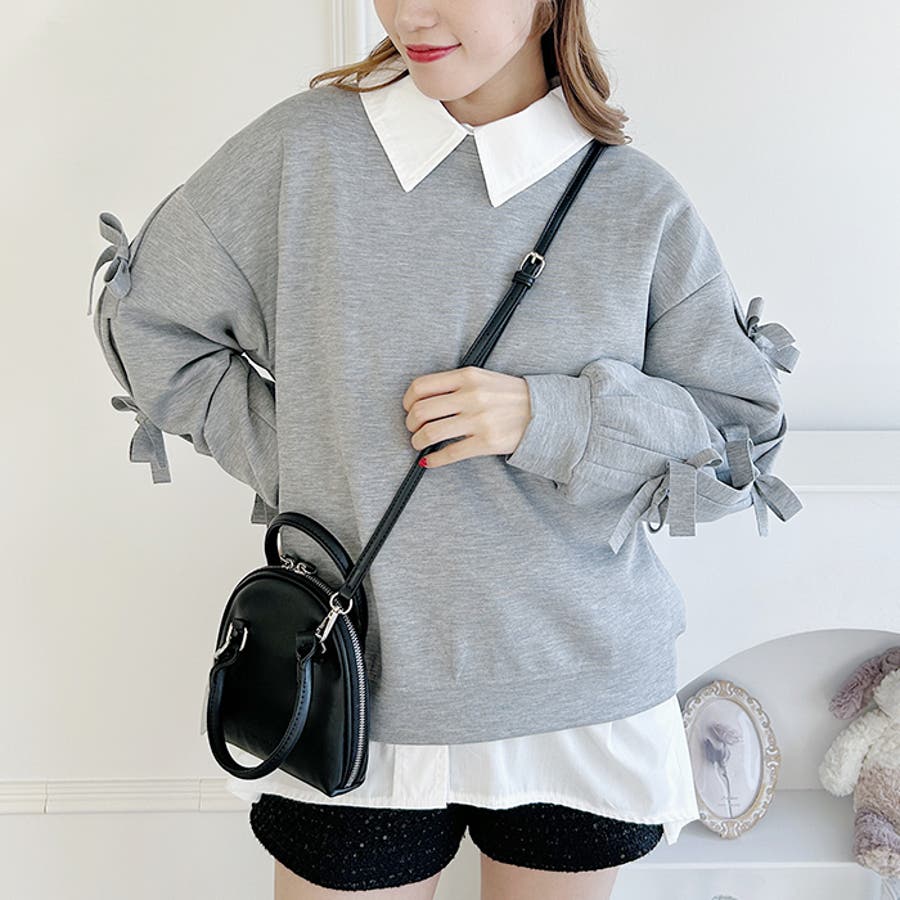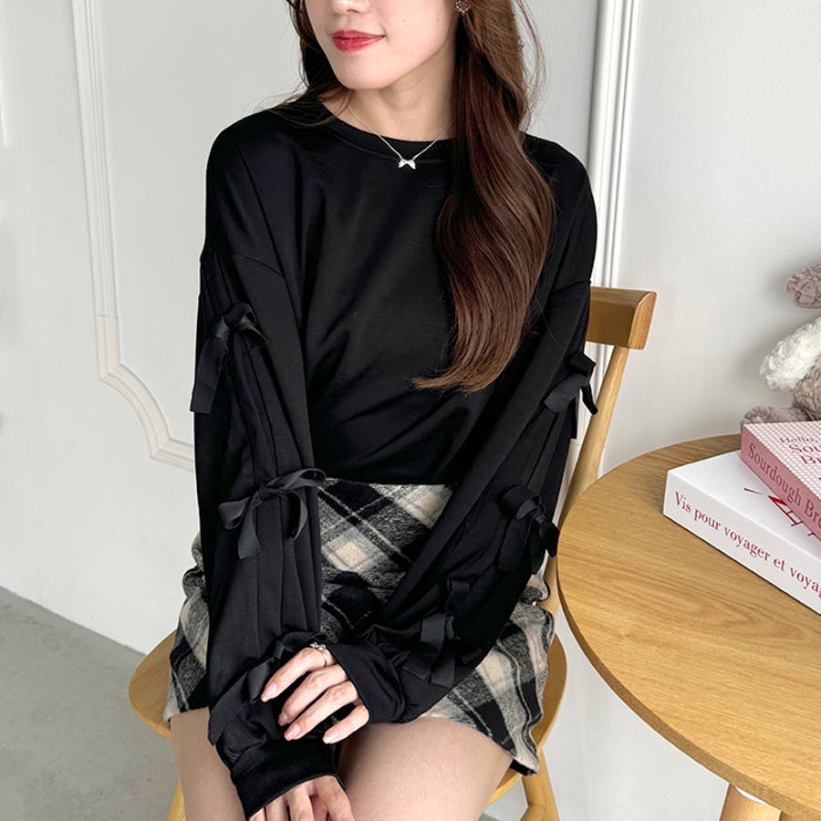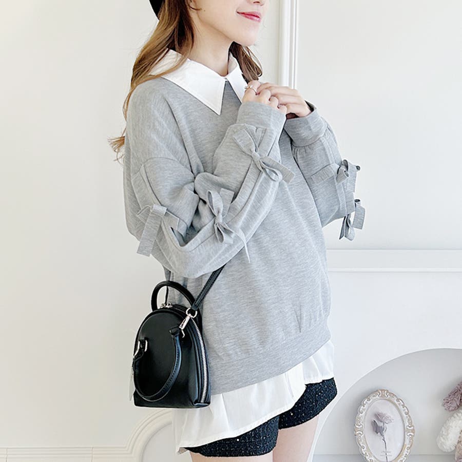 ・両袖のスリットに並んだ3連リボンが可愛いスウェットトップス