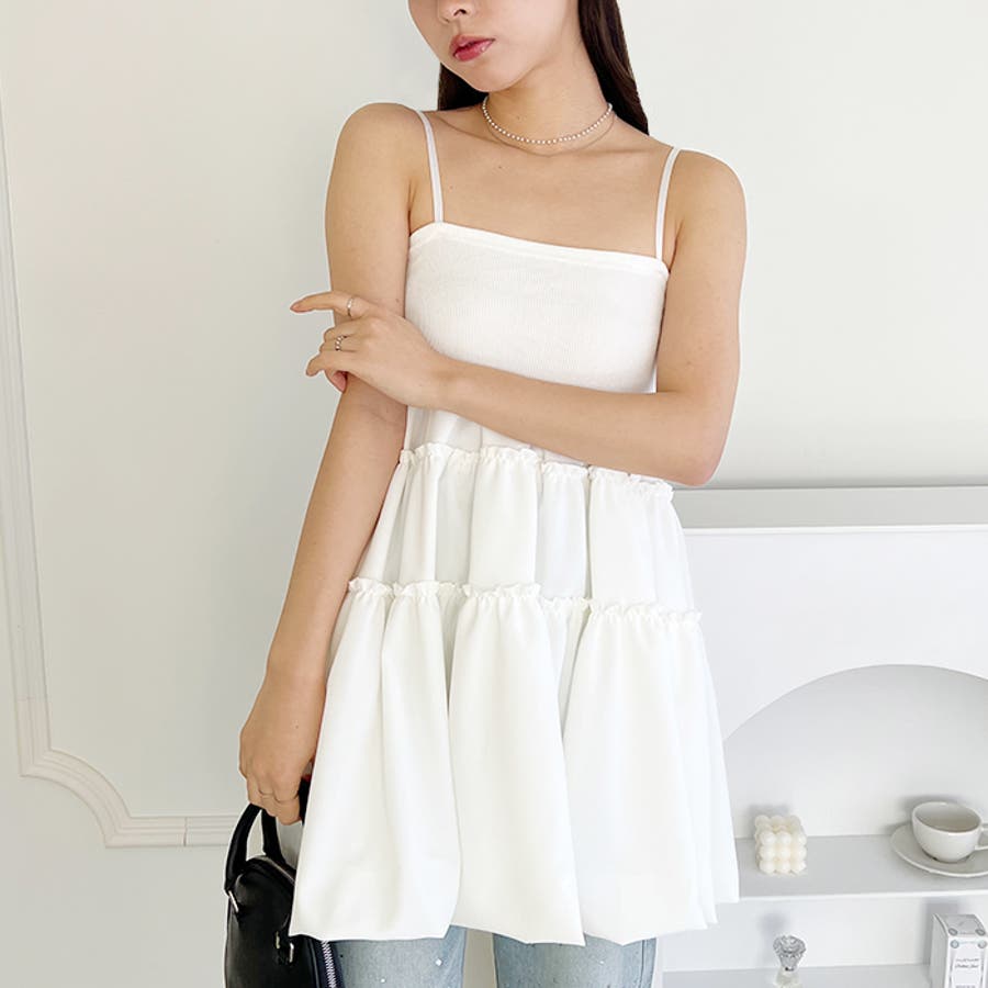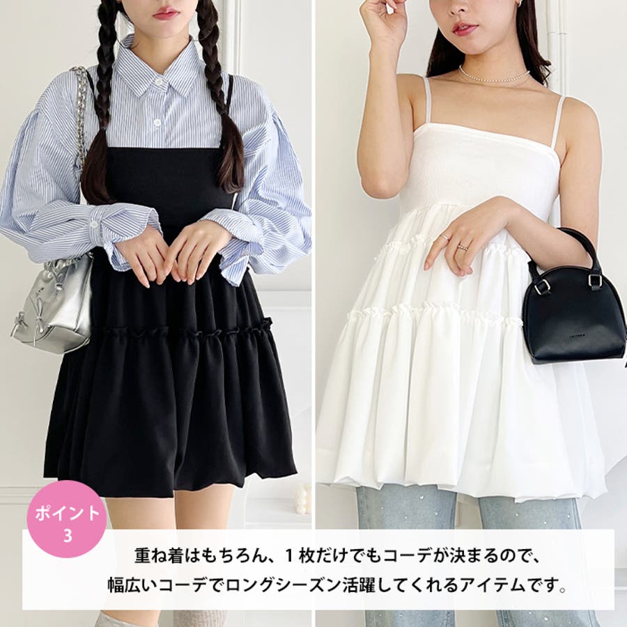 トップス部分は伸縮性のあるリブ素材&肩紐ストラップはアジャスター付きで長さ調整できるのも嬉しいPOINT。