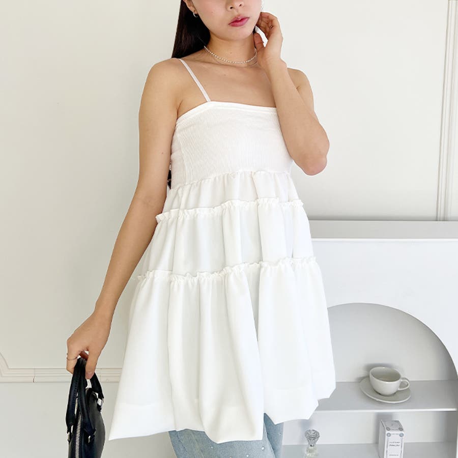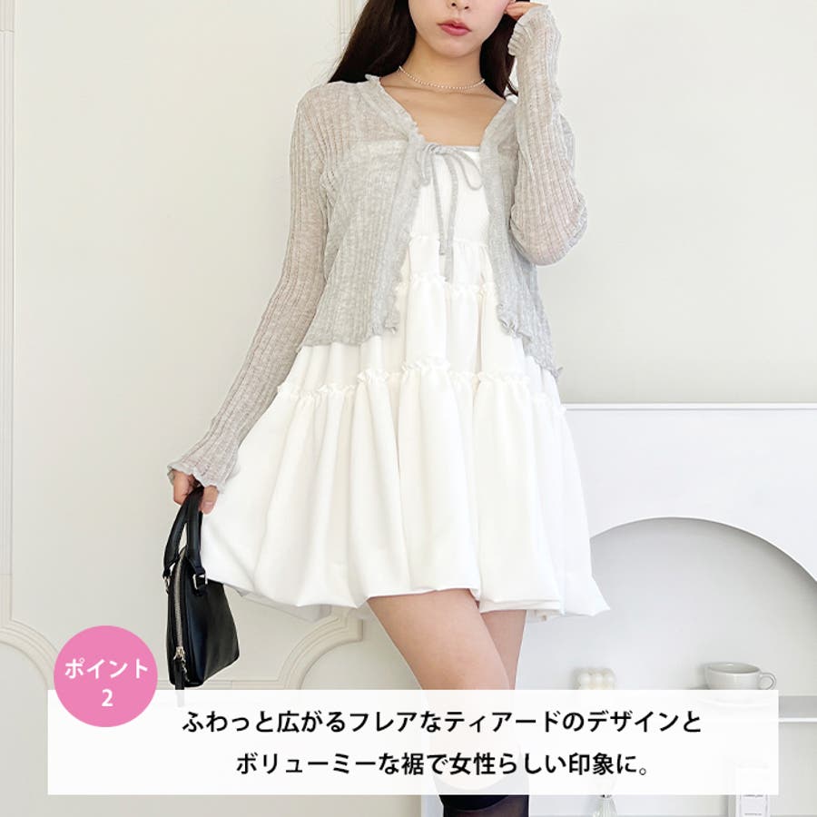ふわっと広がるフレアなティアードのデザイン&ボリューミーな裾で女性らしい印象に。