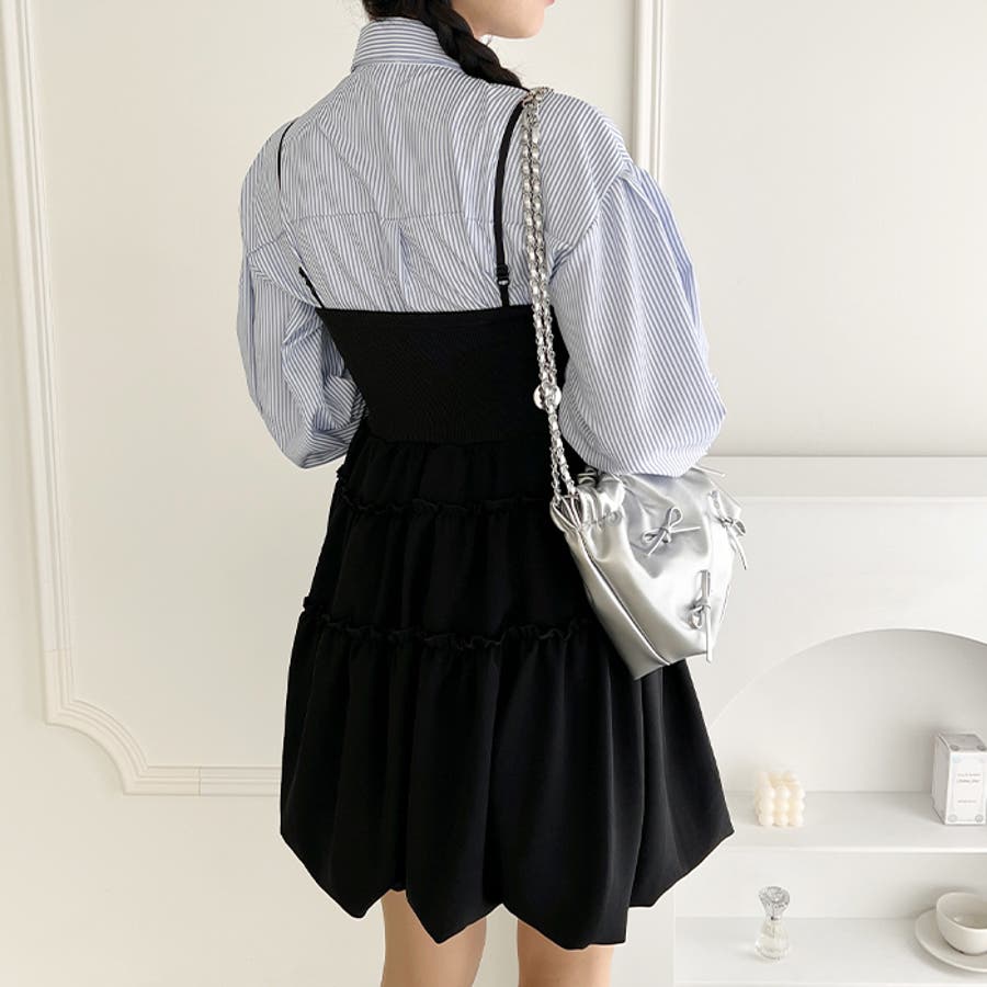 今期注目のバルーンシルエットがトレンドライクなパンプキンスカートのミニワンピース。