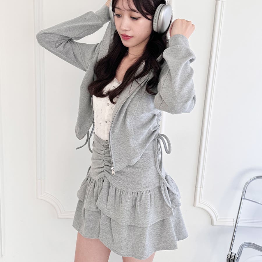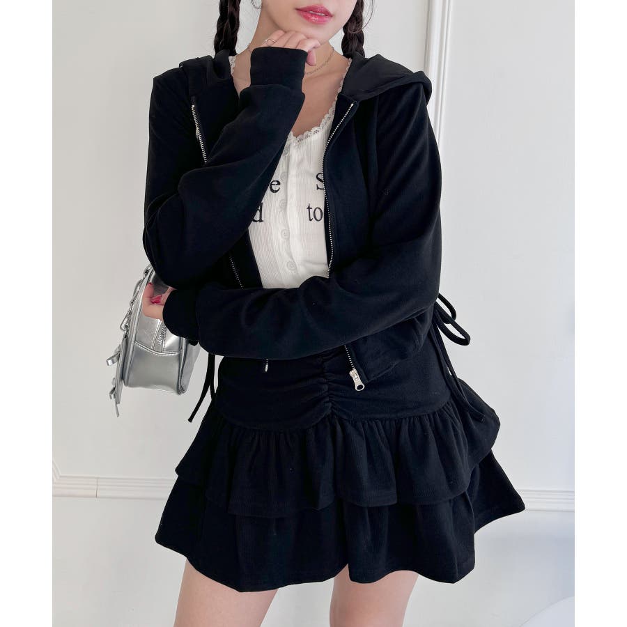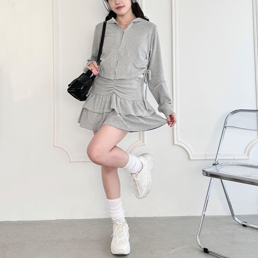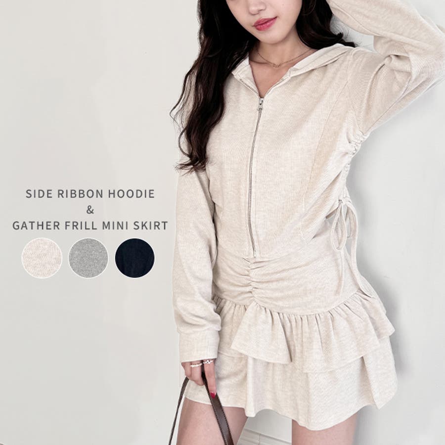 【セットアップ】サイドリボンパーカー&ギャザーフリルミニスカート