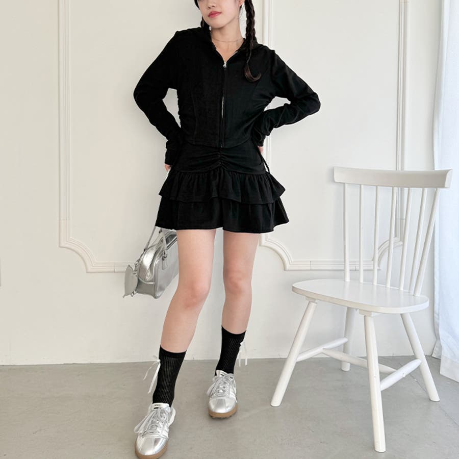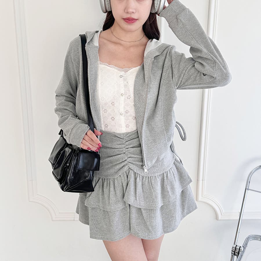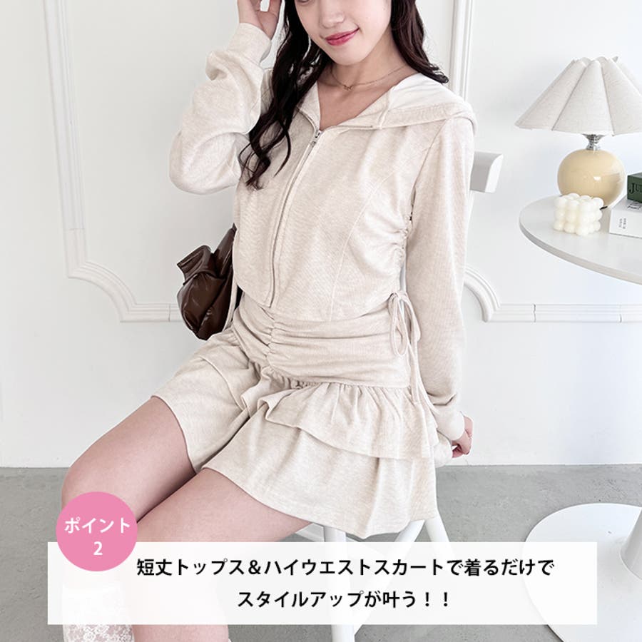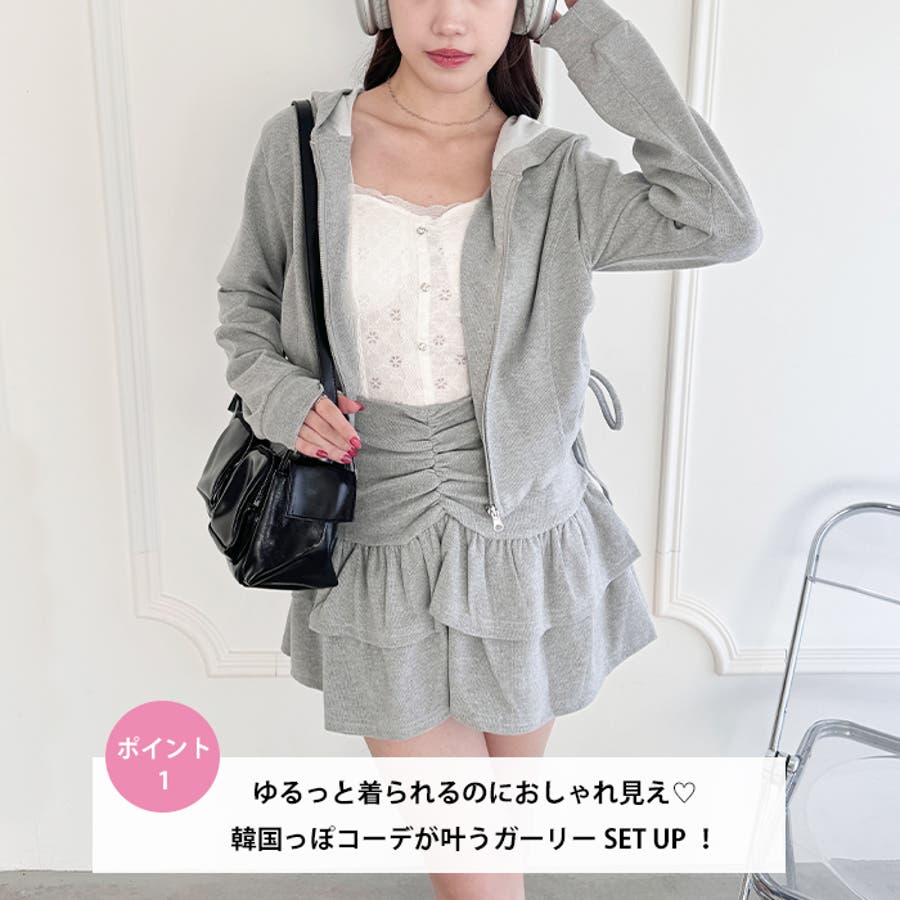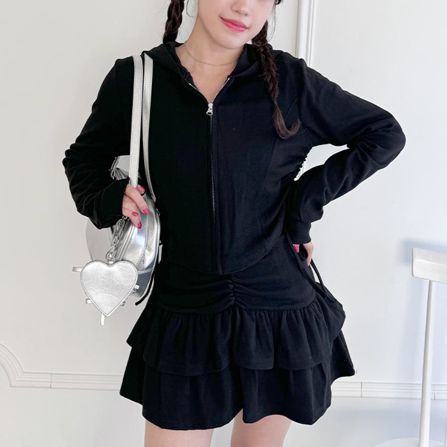 【セットアップ】サイドリボンパーカー&ギャザーフリルミニスカート
