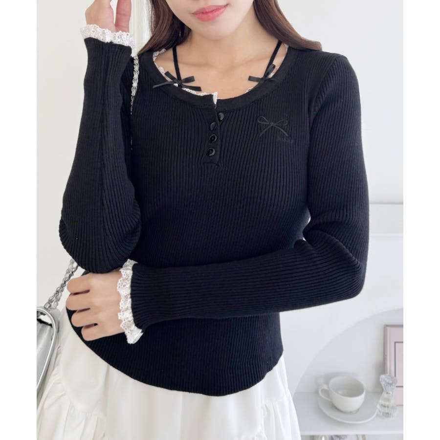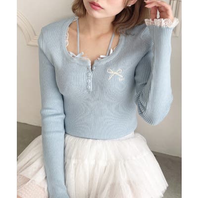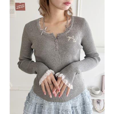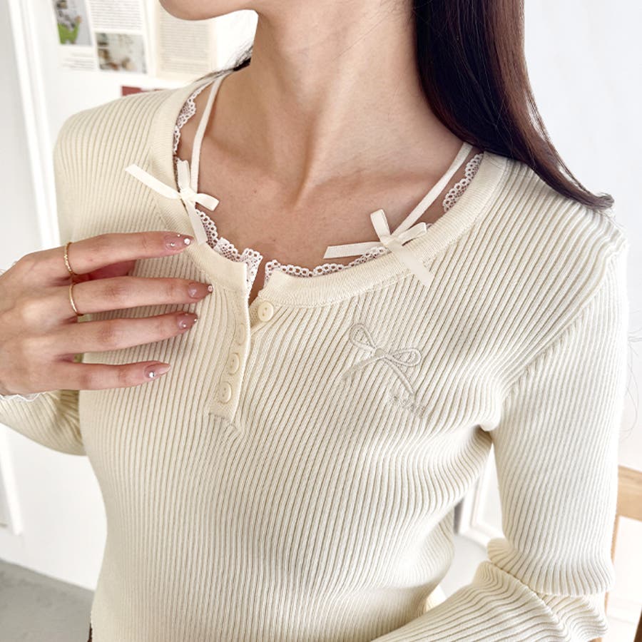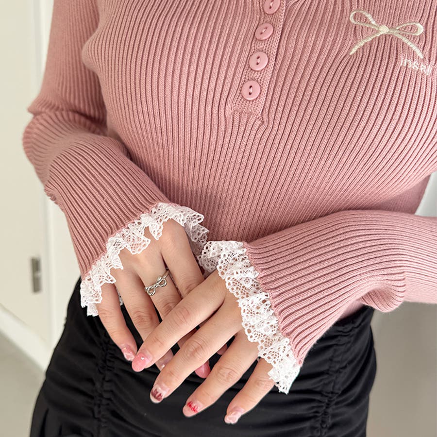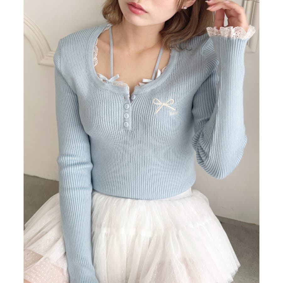 ・胸元のリボン&ワンポイント刺繍&レース縁取りでガーリー要素たっぷり