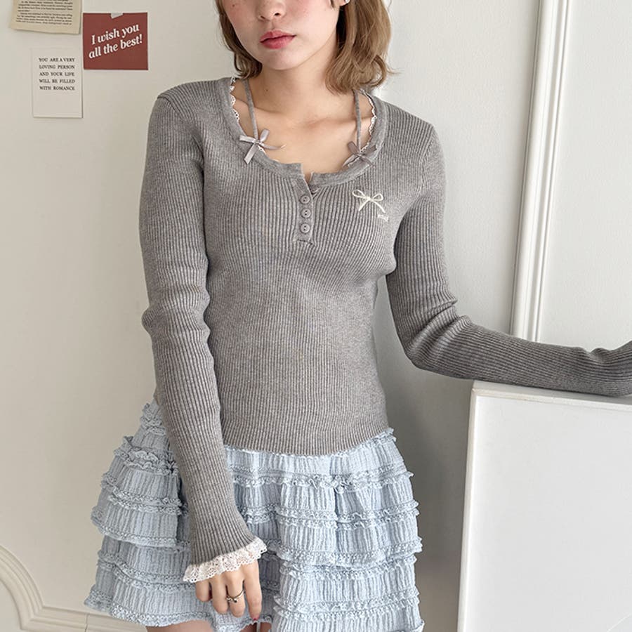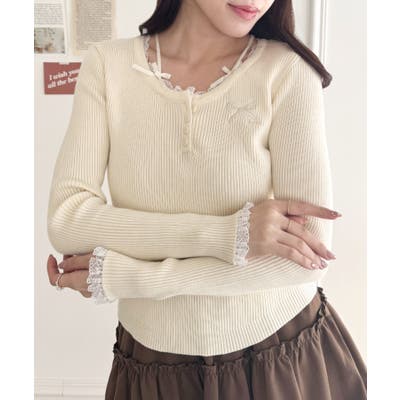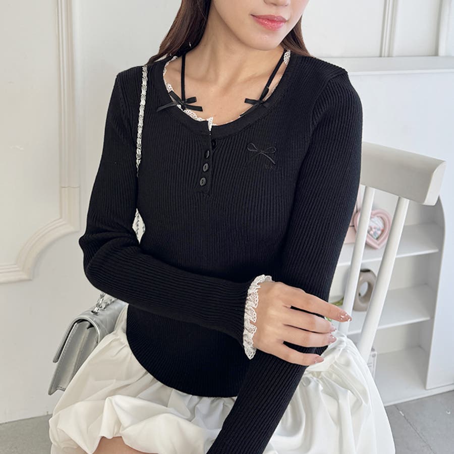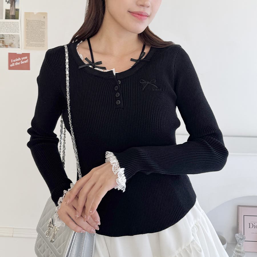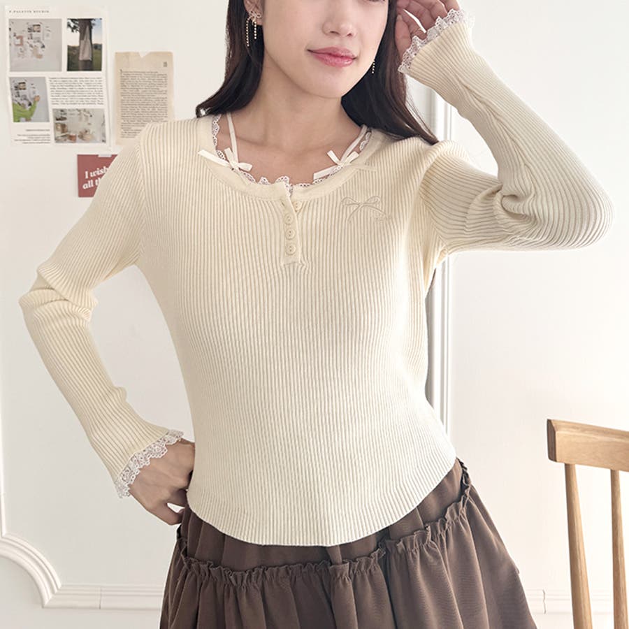 ・胸元のリボン&ワンポイント刺繍&レース縁取りでガーリー要素たっぷり