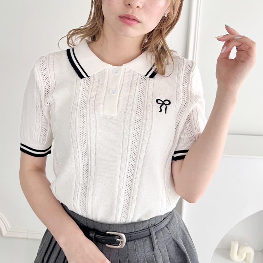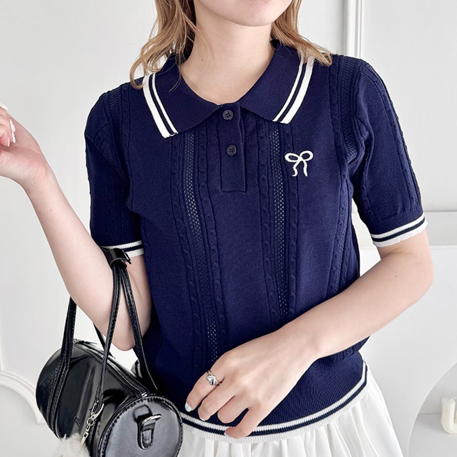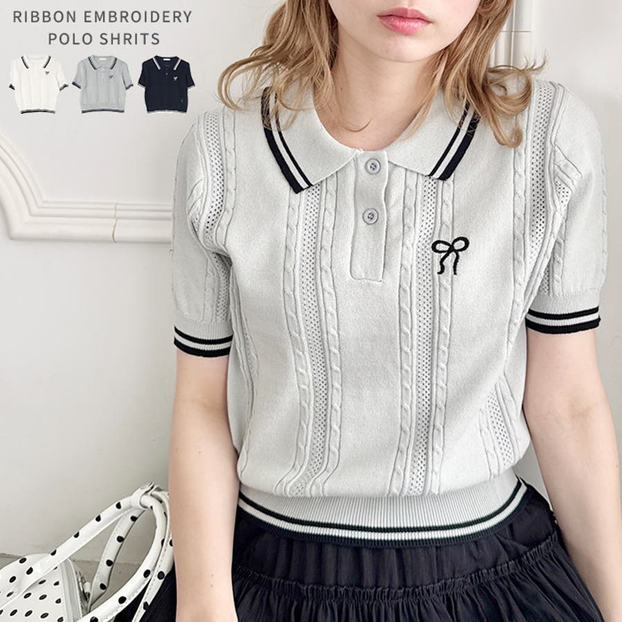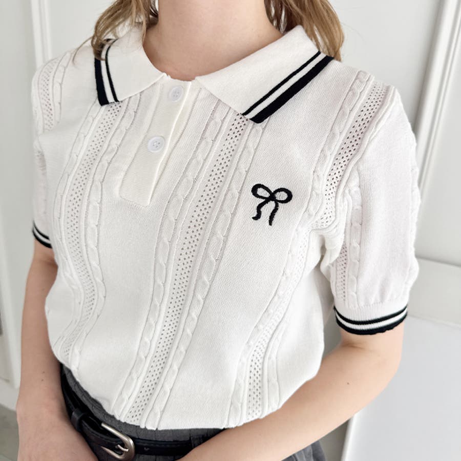・リボンのワンポイント刺繍が目を惹くポロシャツ