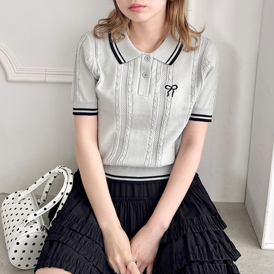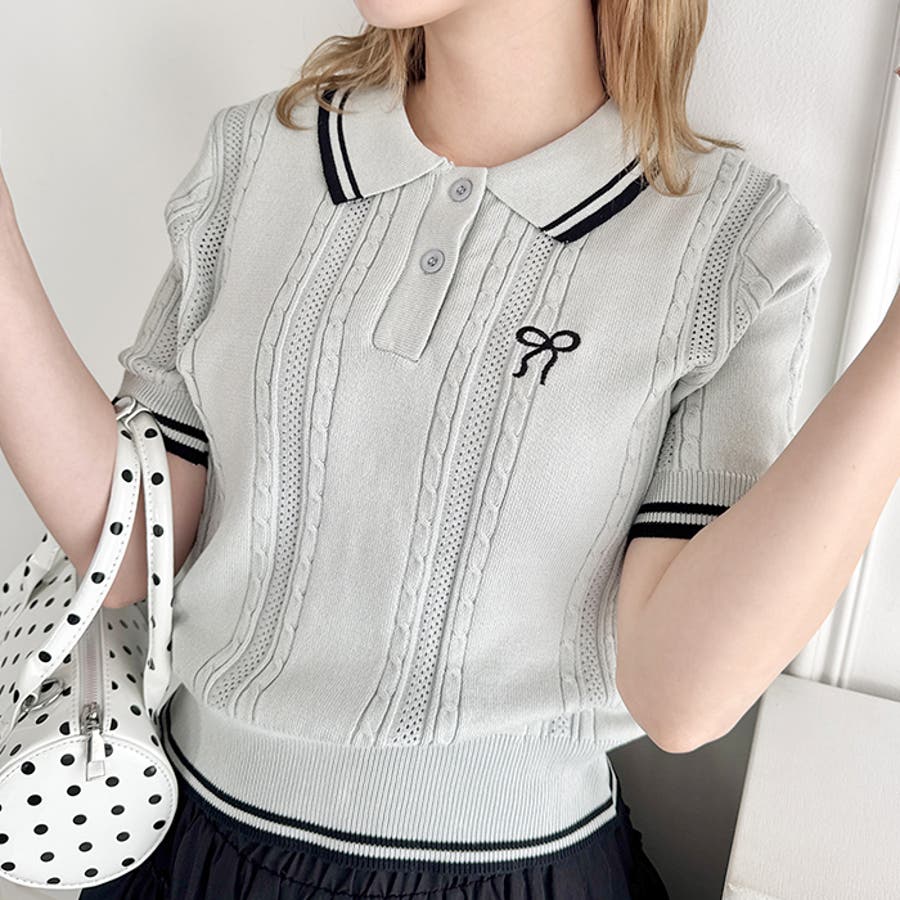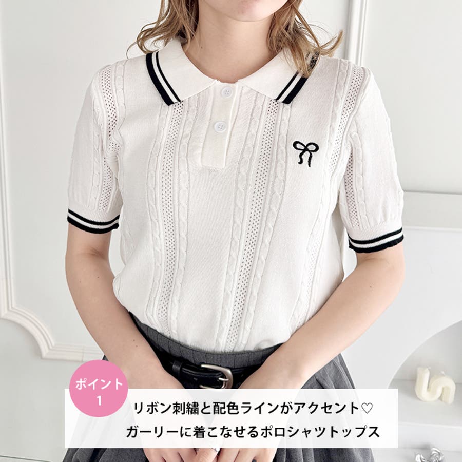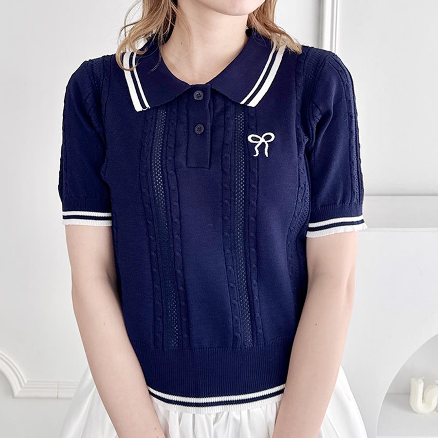 ・リボンのワンポイント刺繍が目を惹くポロシャツ