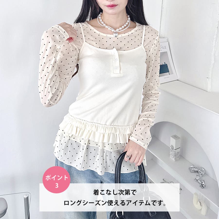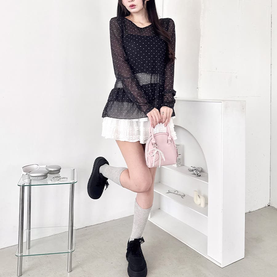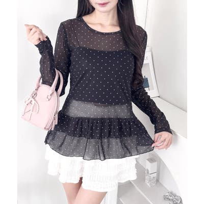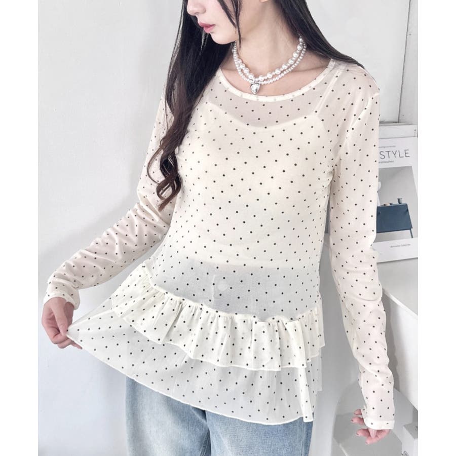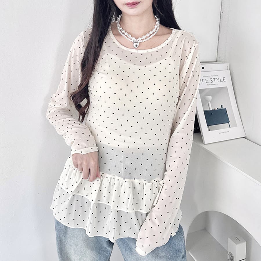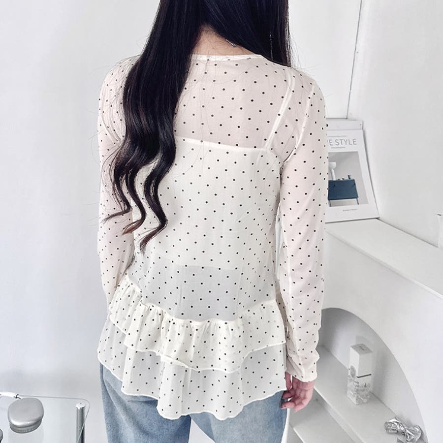裾フリルが可愛いドット柄シアートップス