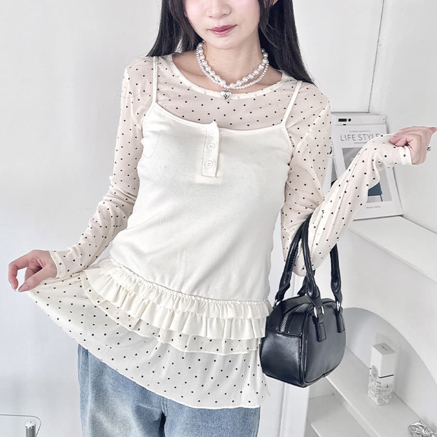 裾フリルドットティアードトップス