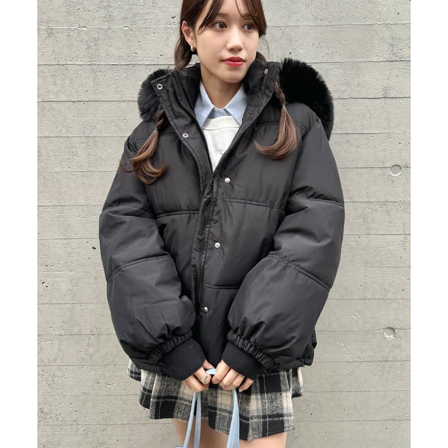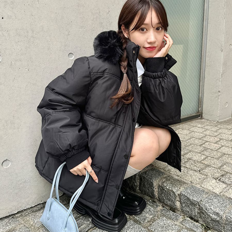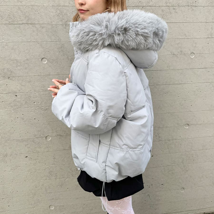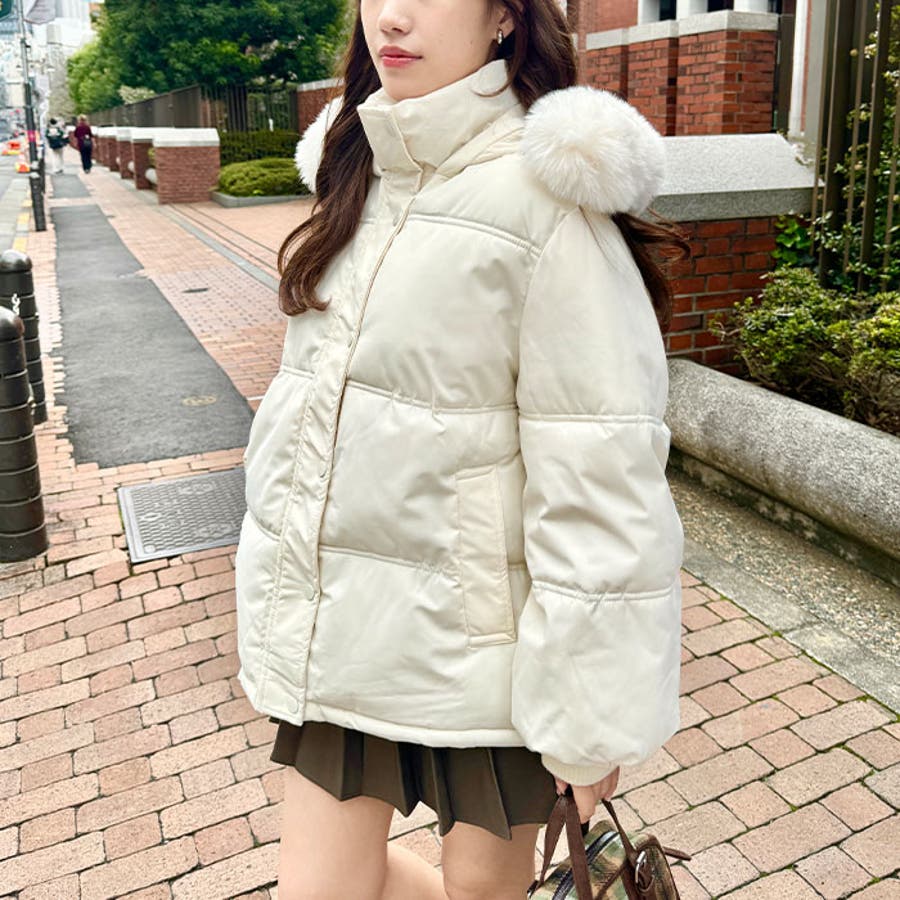 ・思わず触りたくなるフワフワのファーがトレンドライクな中綿ミドルジャケット