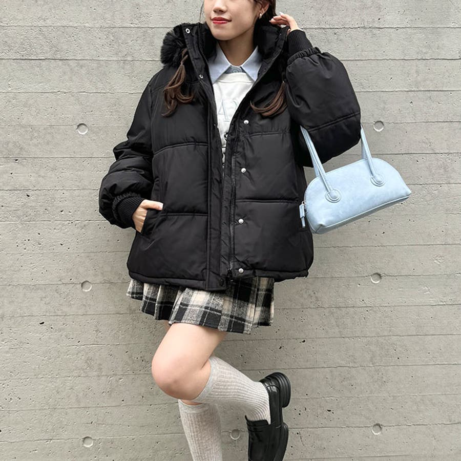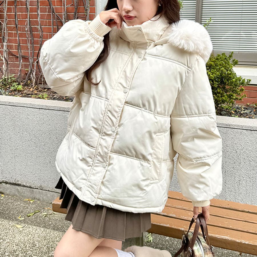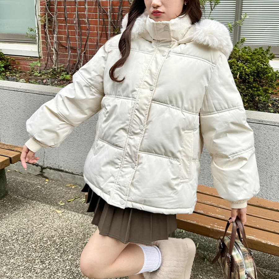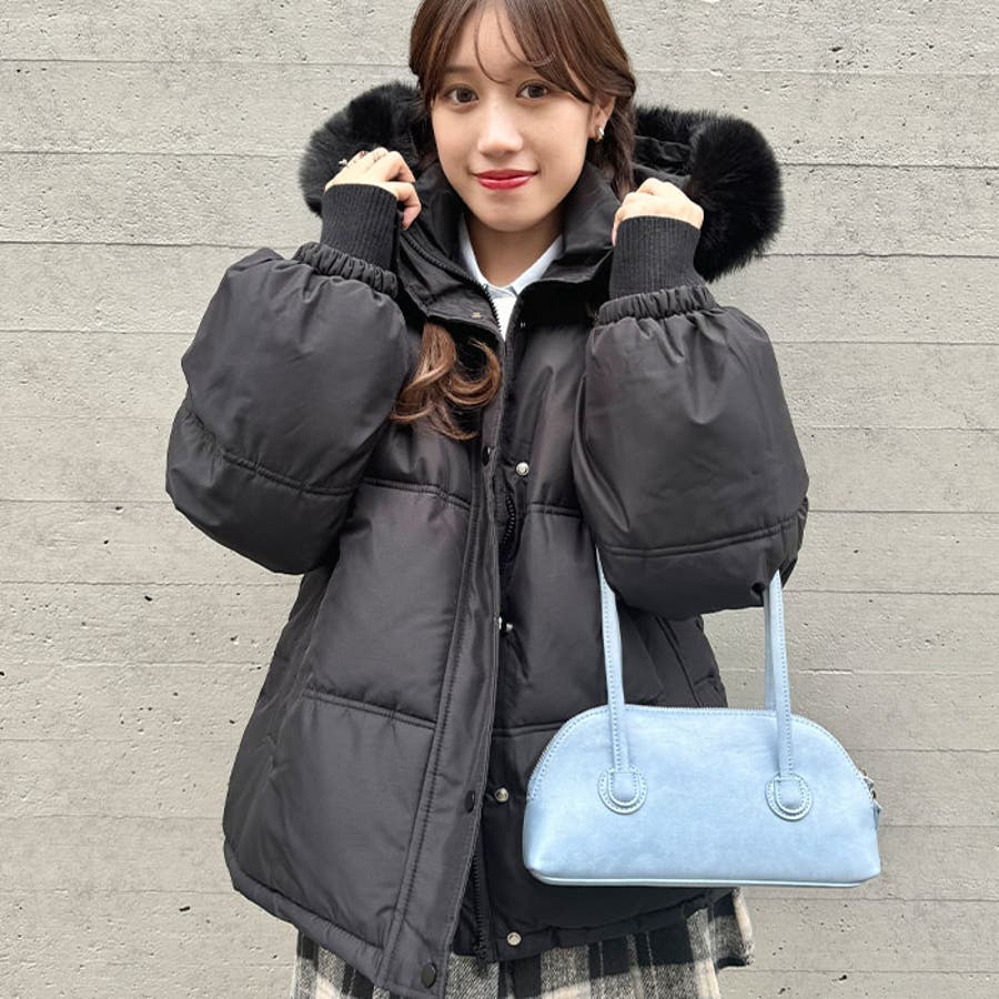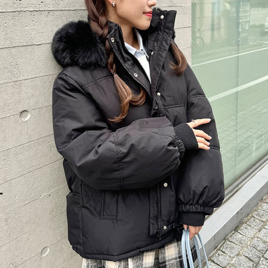 ・思わず触りたくなるフワフワのファーがトレンドライクな中綿ミドルジャケット