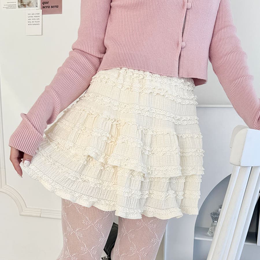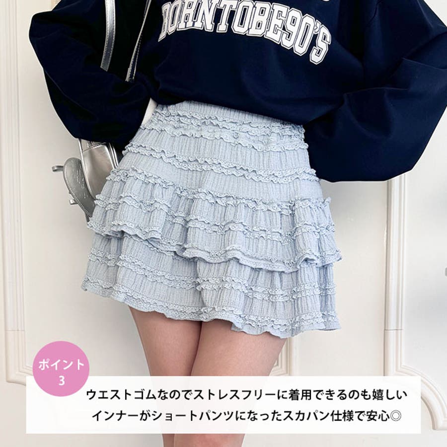 ・細かいフリルがたっぷりなレースティアードフリルスカパン