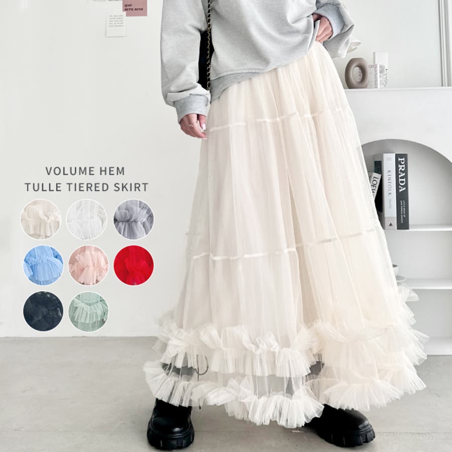 ボリュームヘムチュールティアードスカート