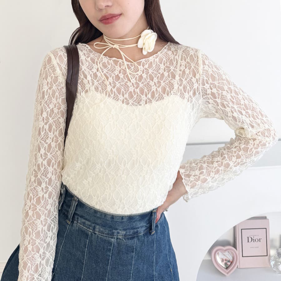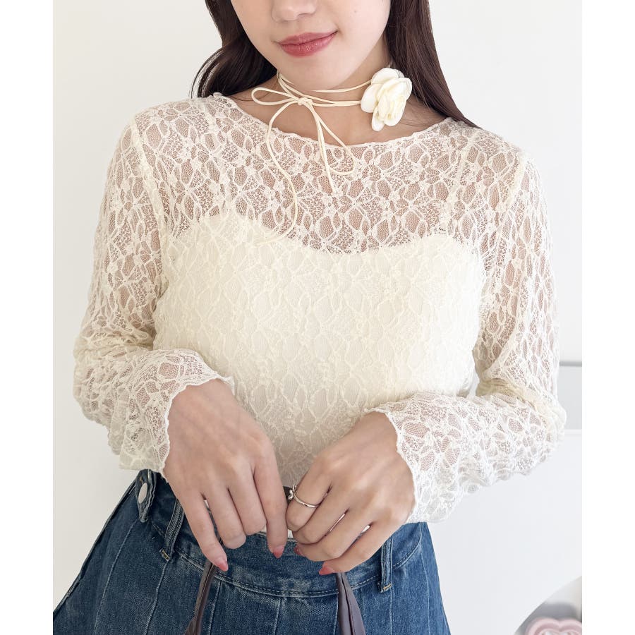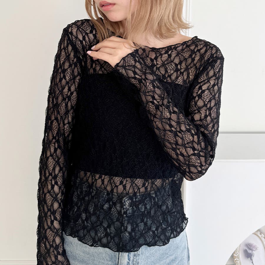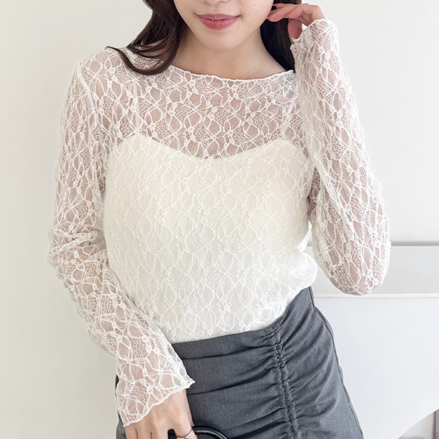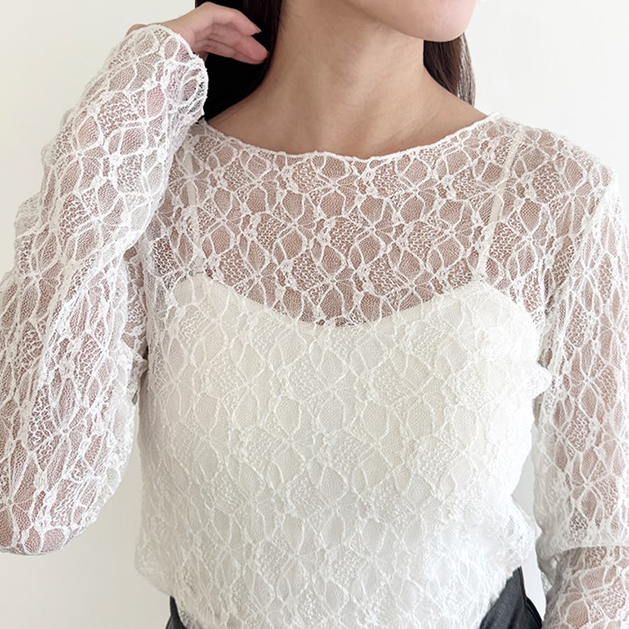 ・総レースで甘い印象に仕上げつつも程よい透け感が上品なトップス