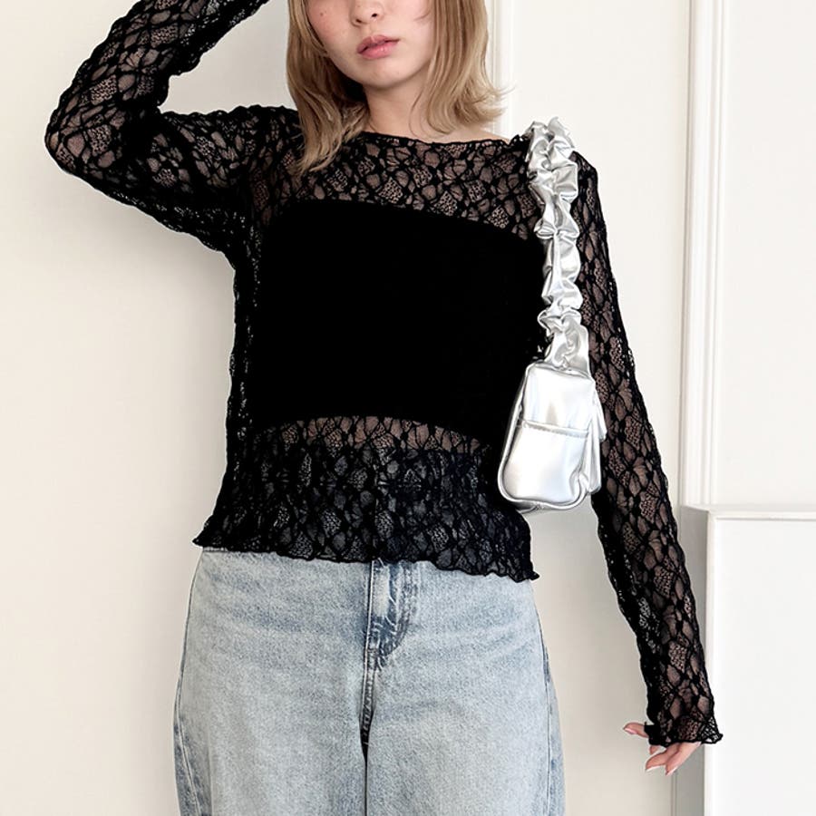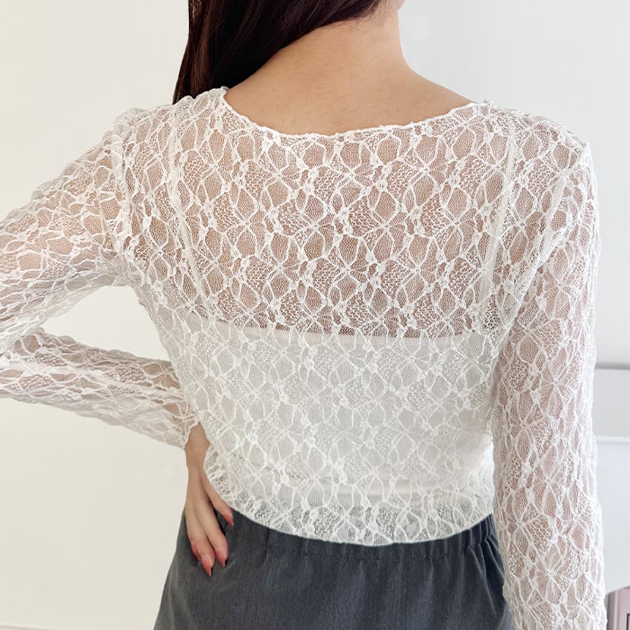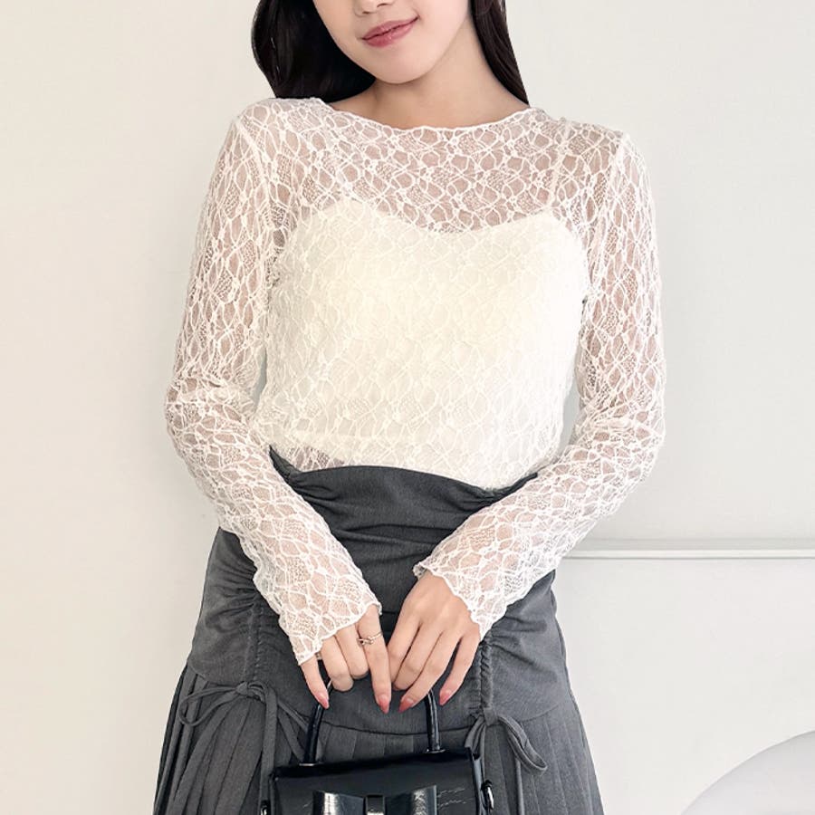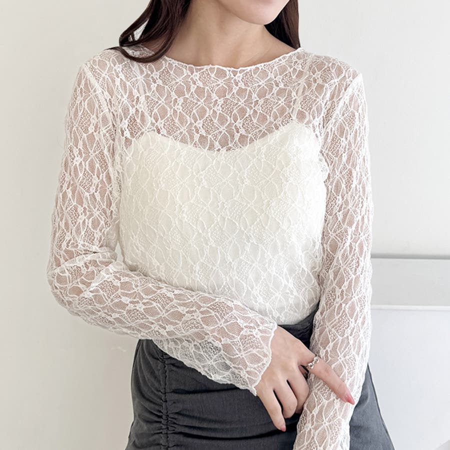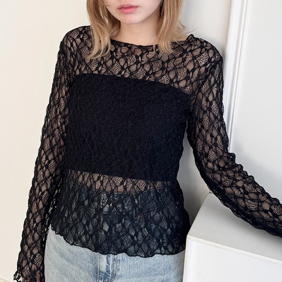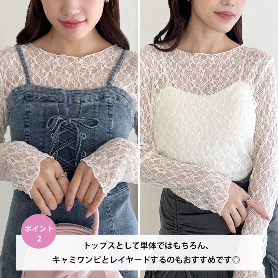 ・総レースで甘い印象に仕上げつつも程よい透け感が上品なトップス