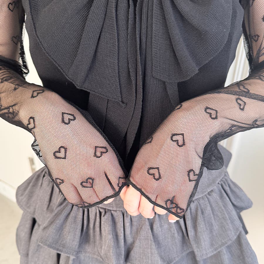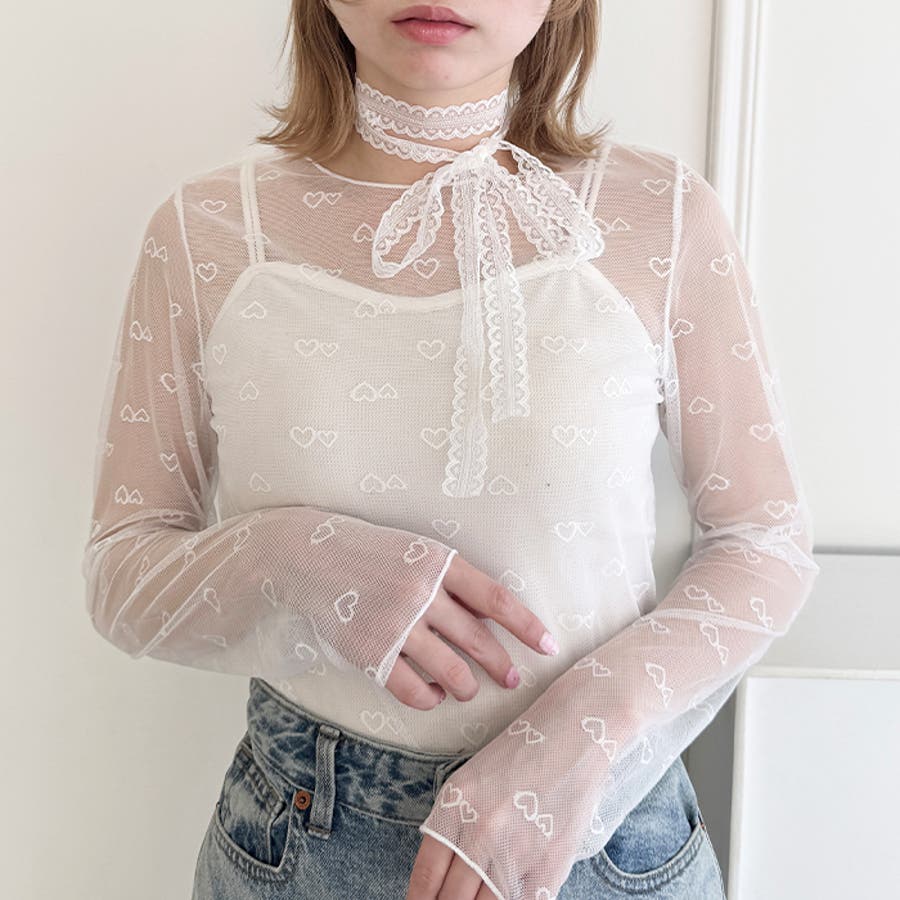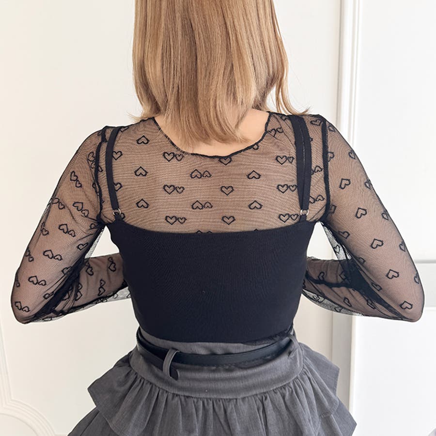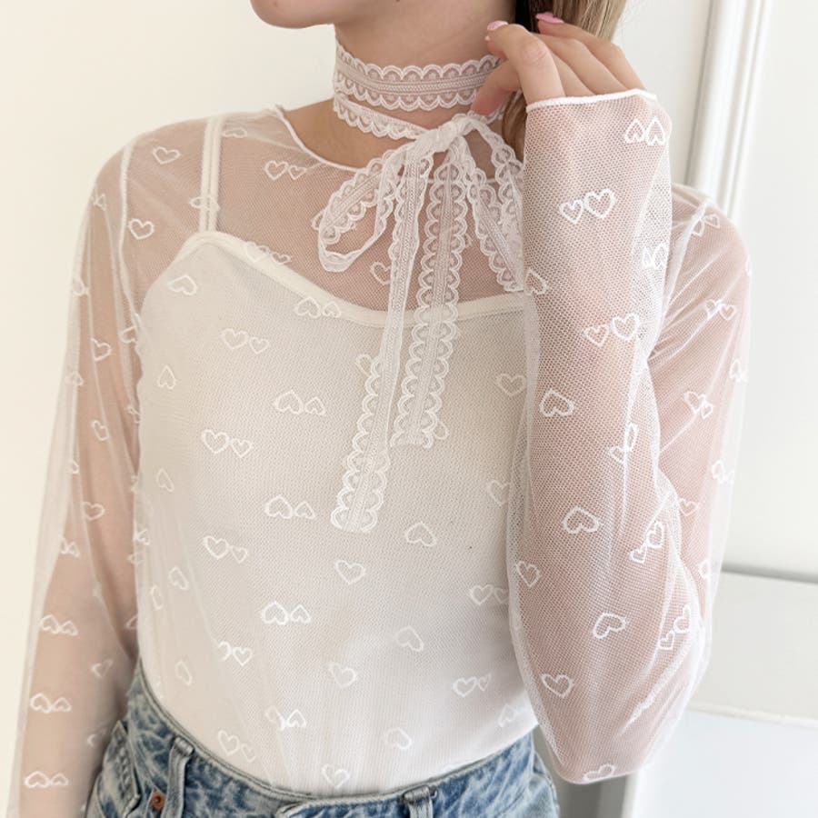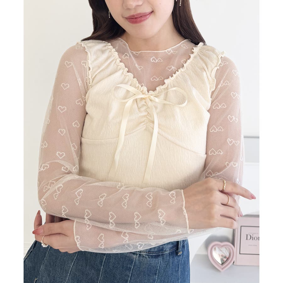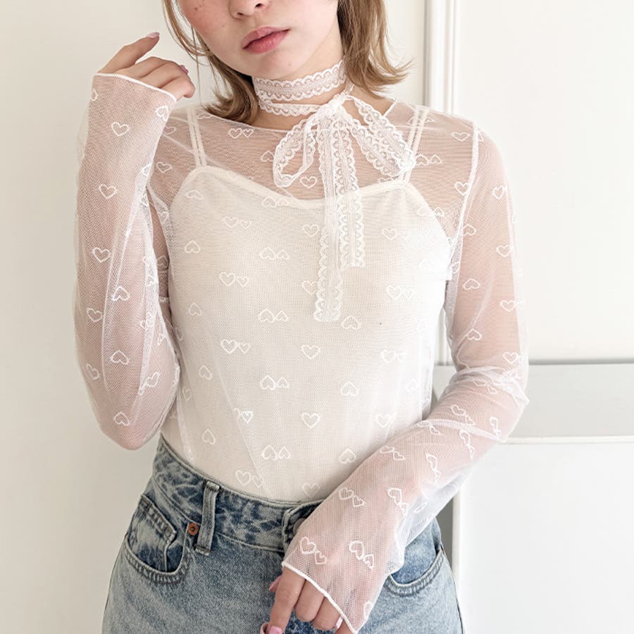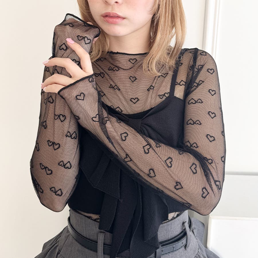 ・ハートの総柄が目を惹くシースルートップス