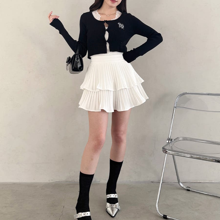 ブラウスやカーディガンでとことん甘めガーリーに仕上げるのが可愛い♡