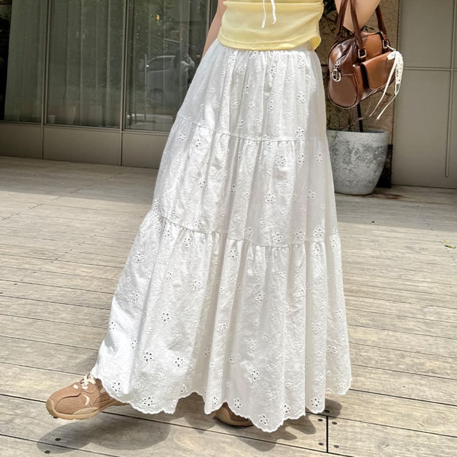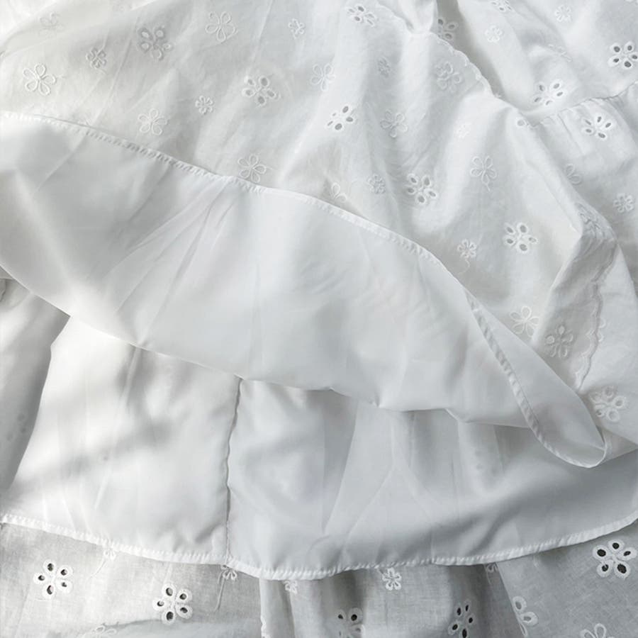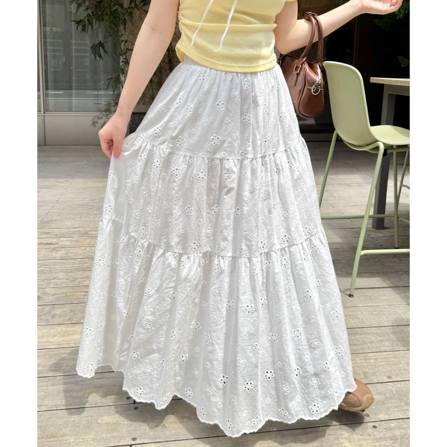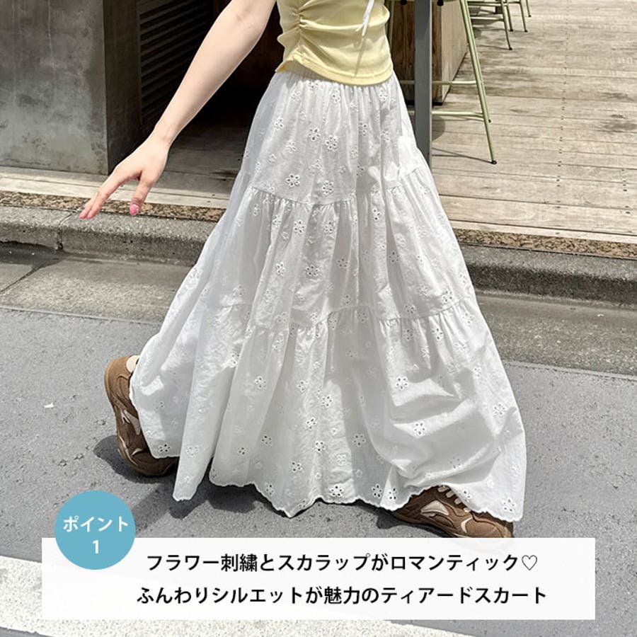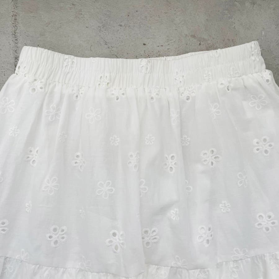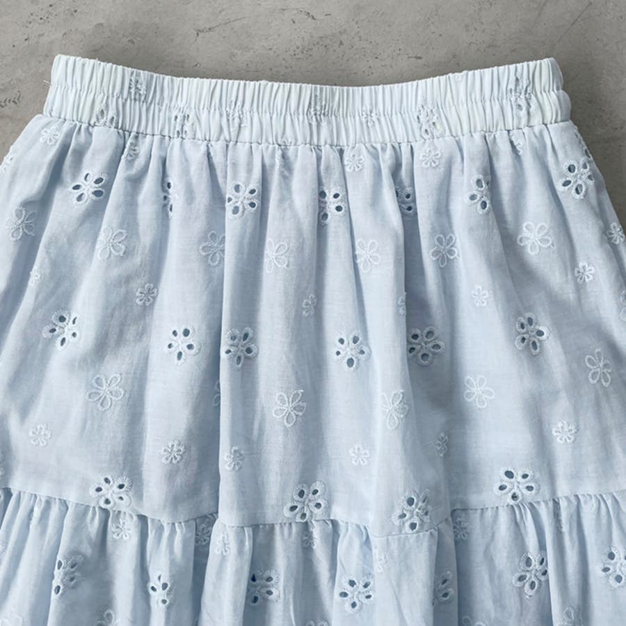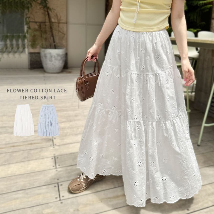 フラワー刺繍コットンレースティアードスカート