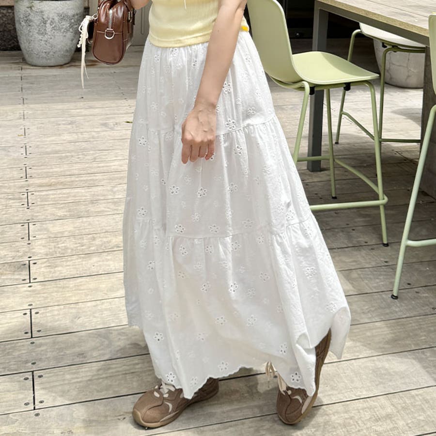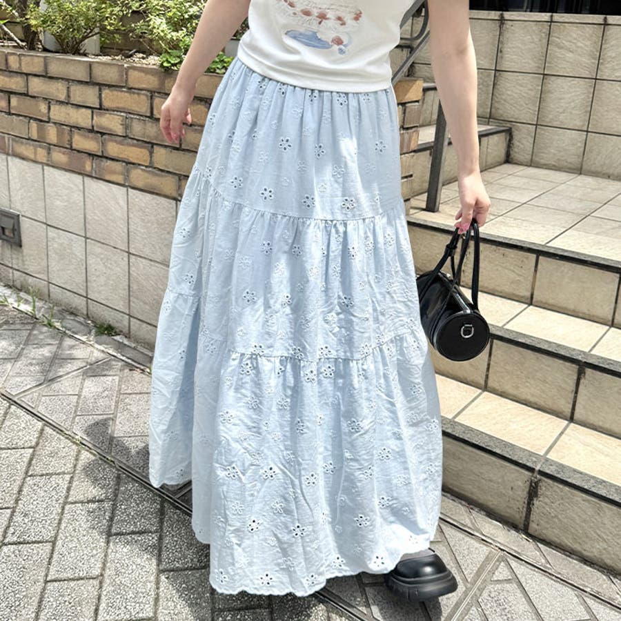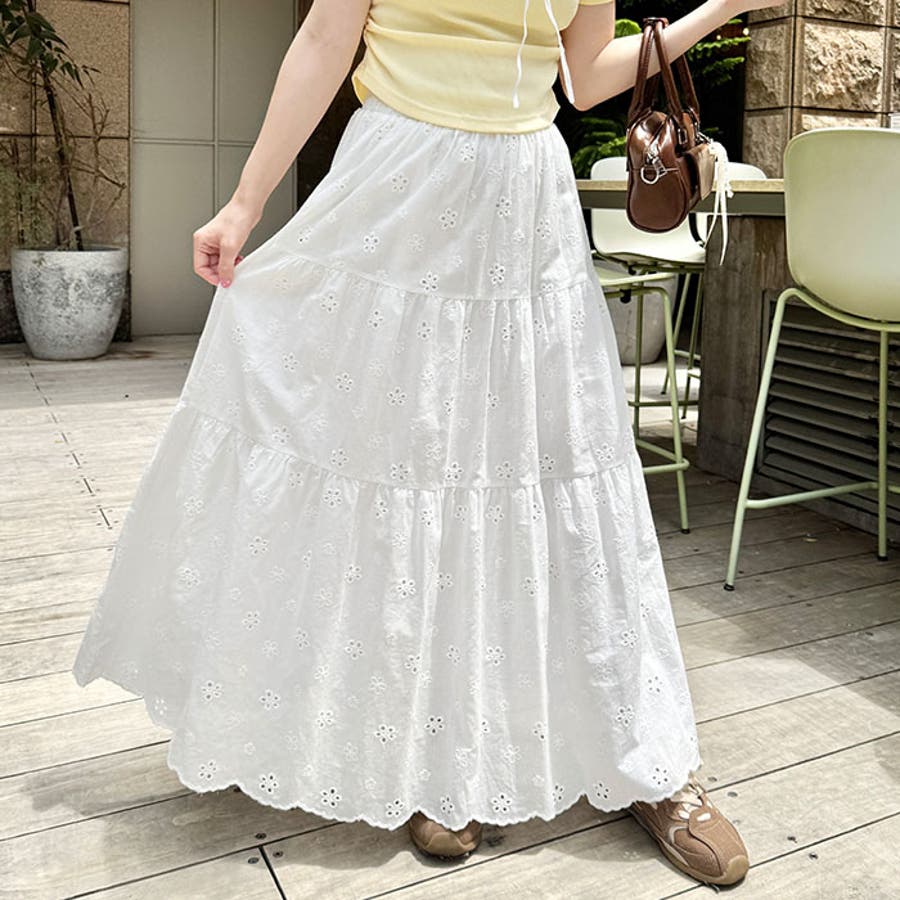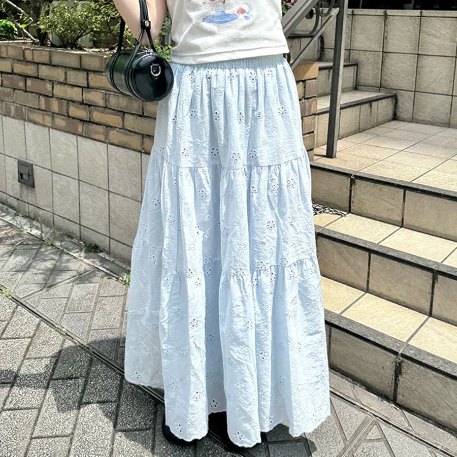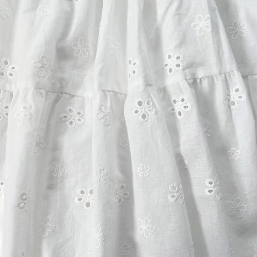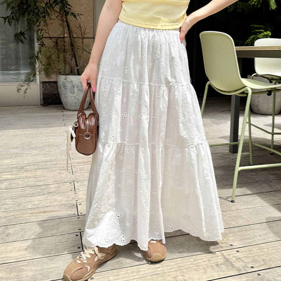 フラワー刺繍コットンレースティアードスカート