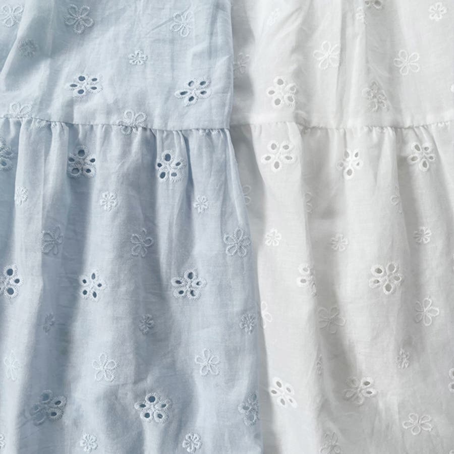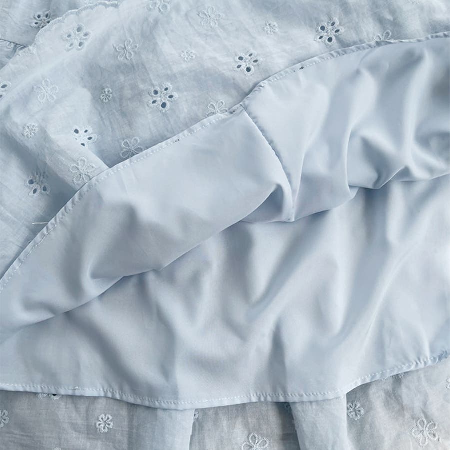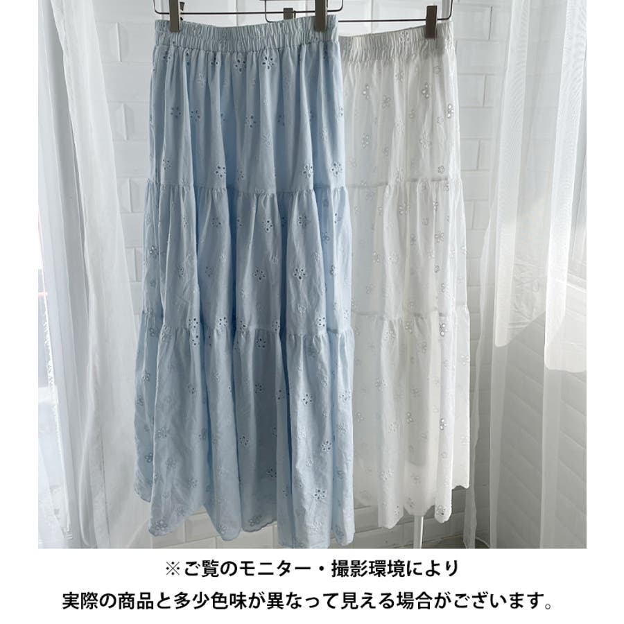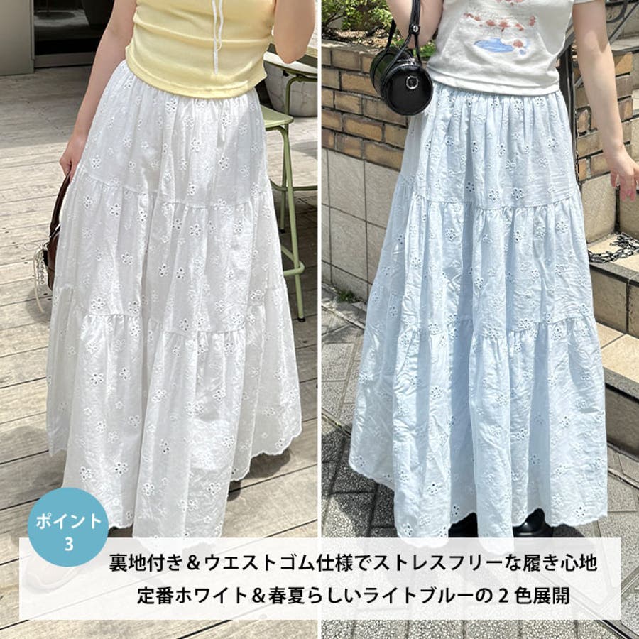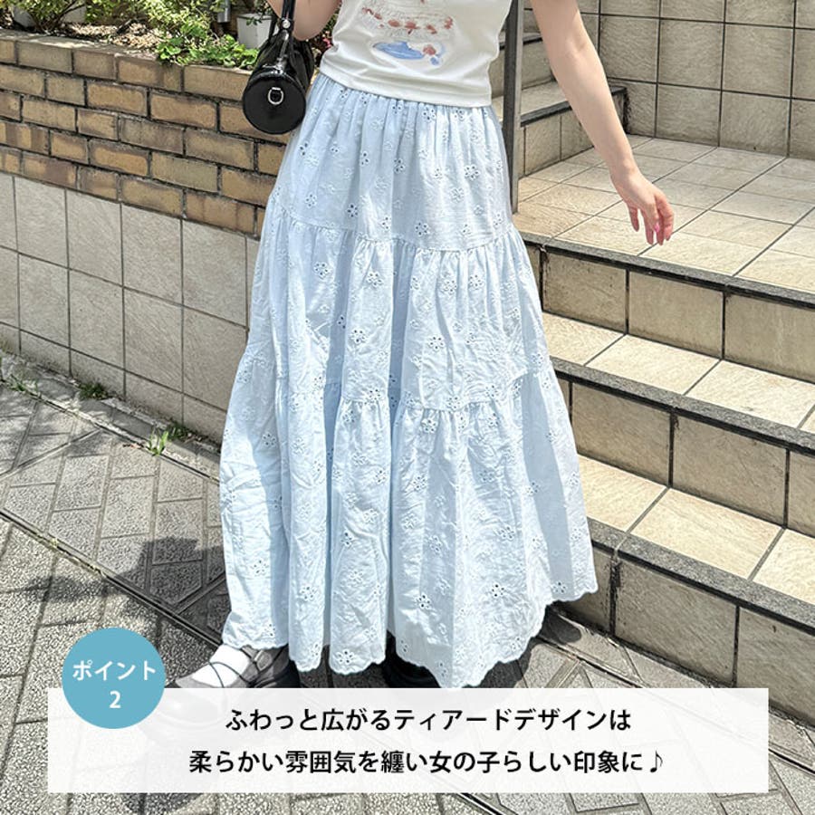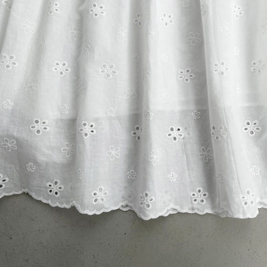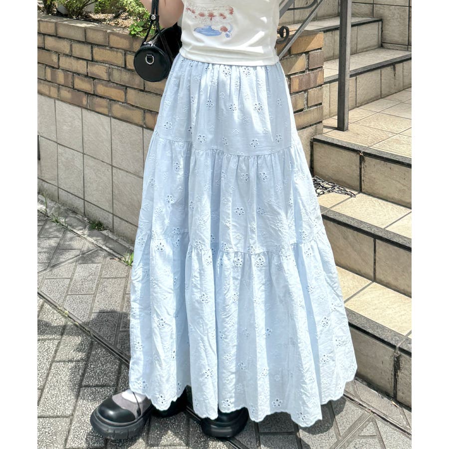 フラワー刺繍コットンレースティアードスカート