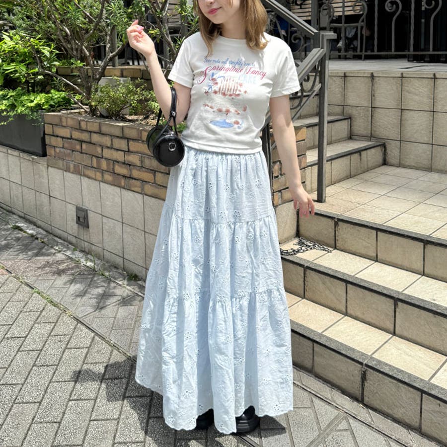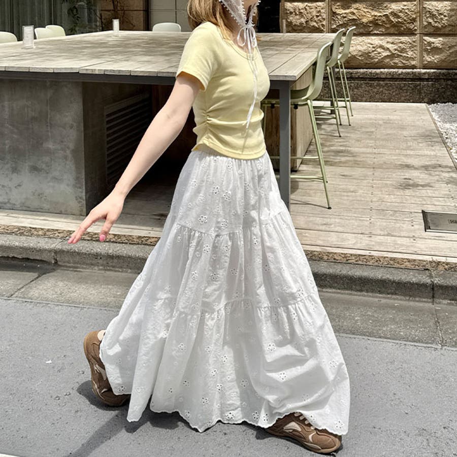 ふんわりシルエットが魅力のティアードスカート