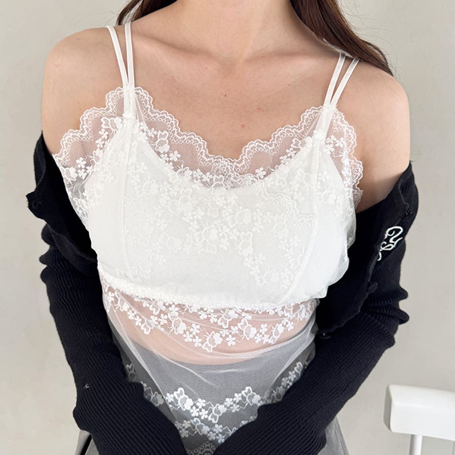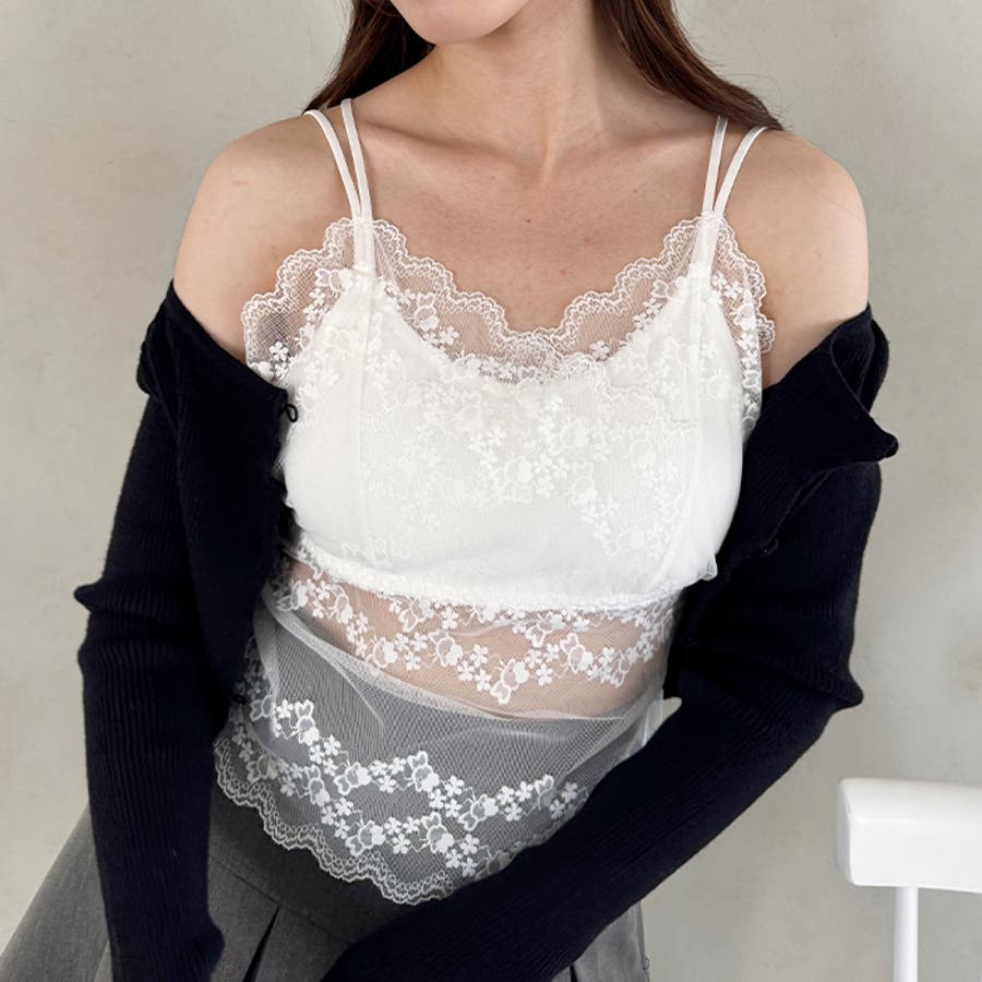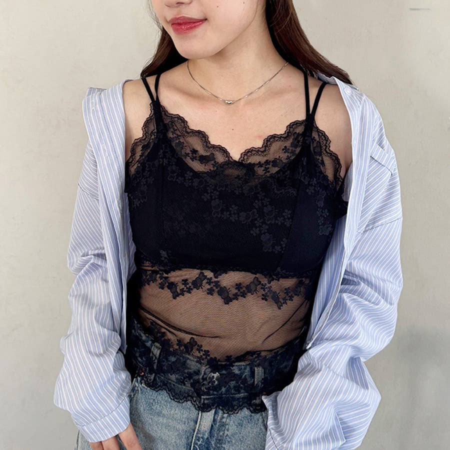 ・いつもの着こなしをワンランクアップさせるカップ付きレースキャミ