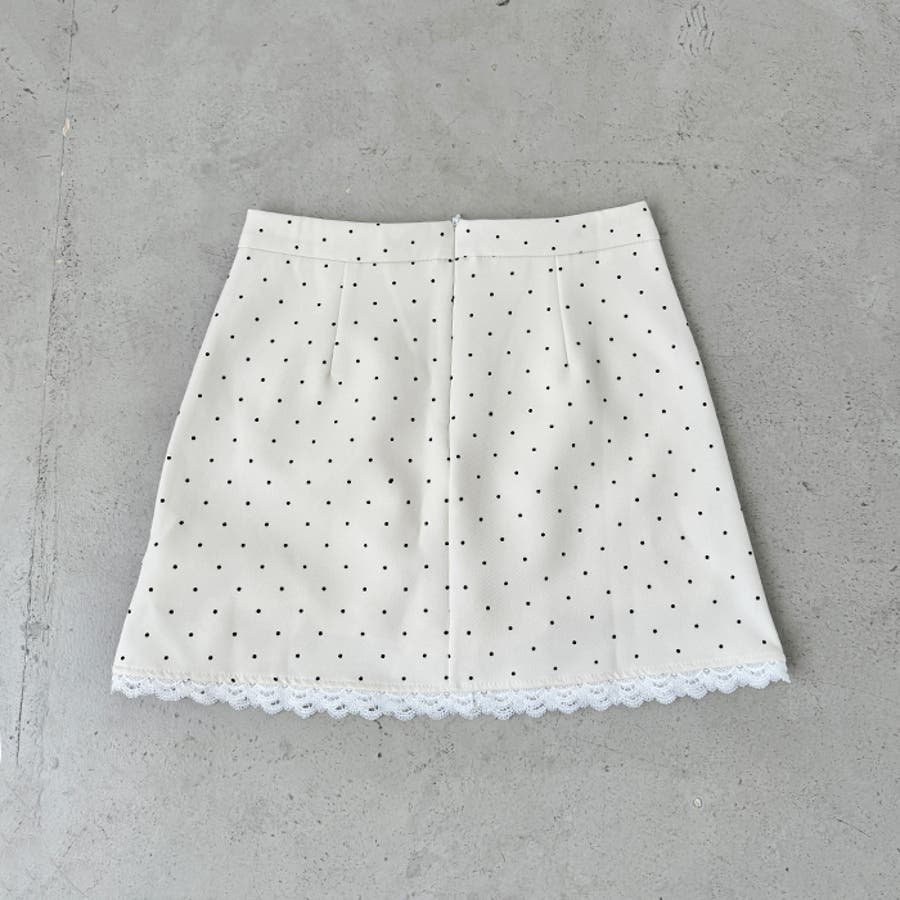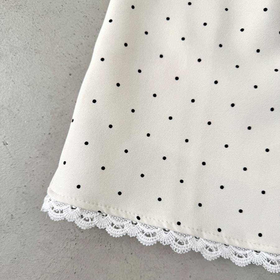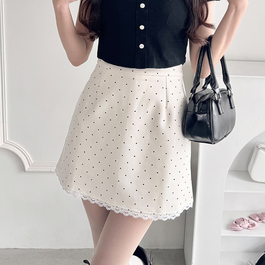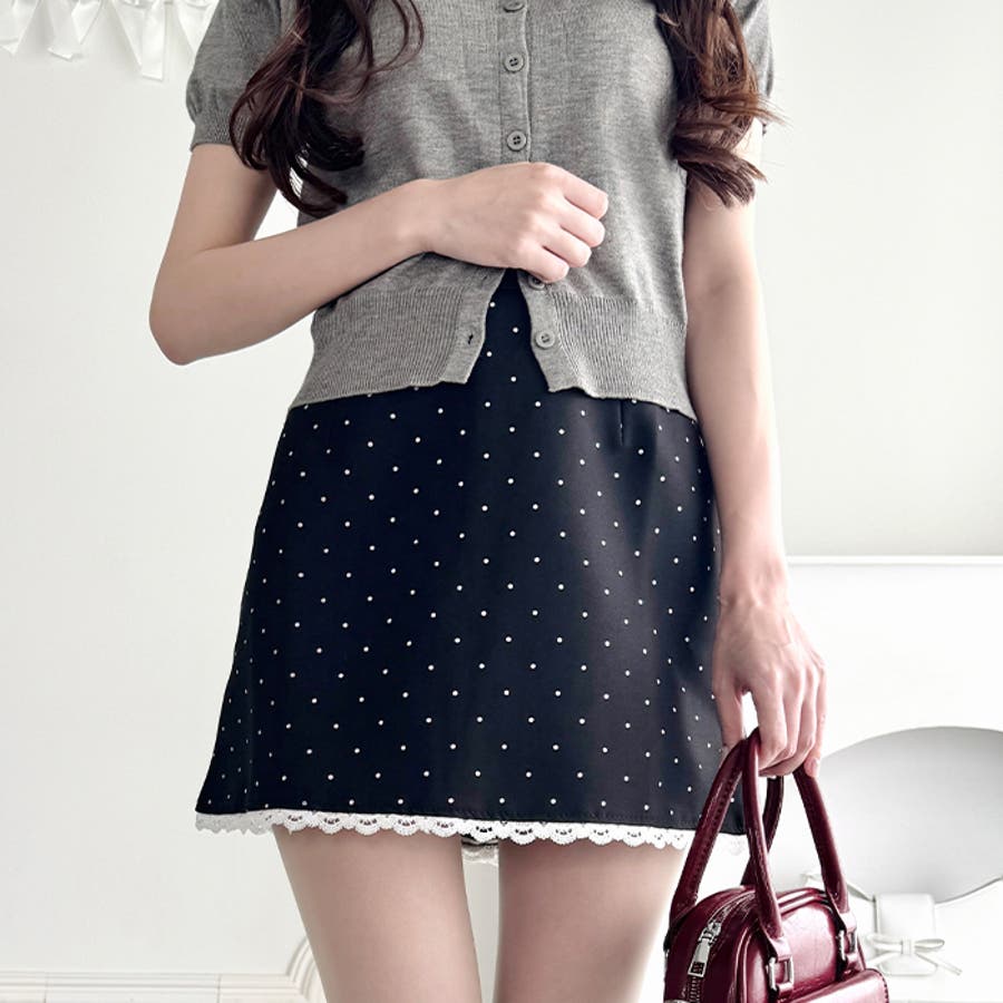 ・裾に施された繊細なレースが可愛い水玉模様のミニスカート