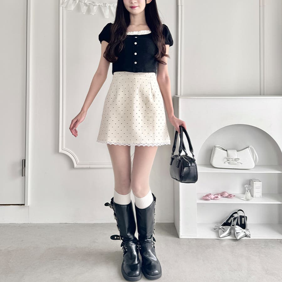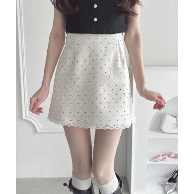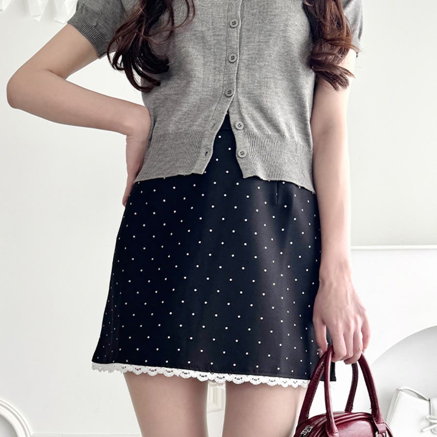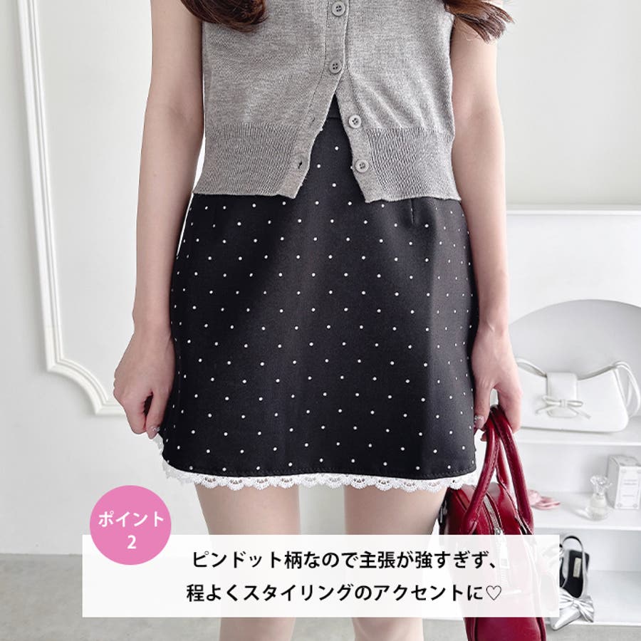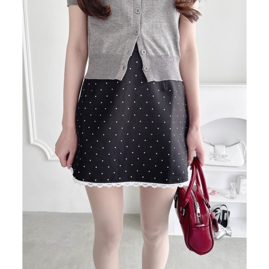 ・裾に施された繊細なレースが可愛い水玉模様のミニスカート