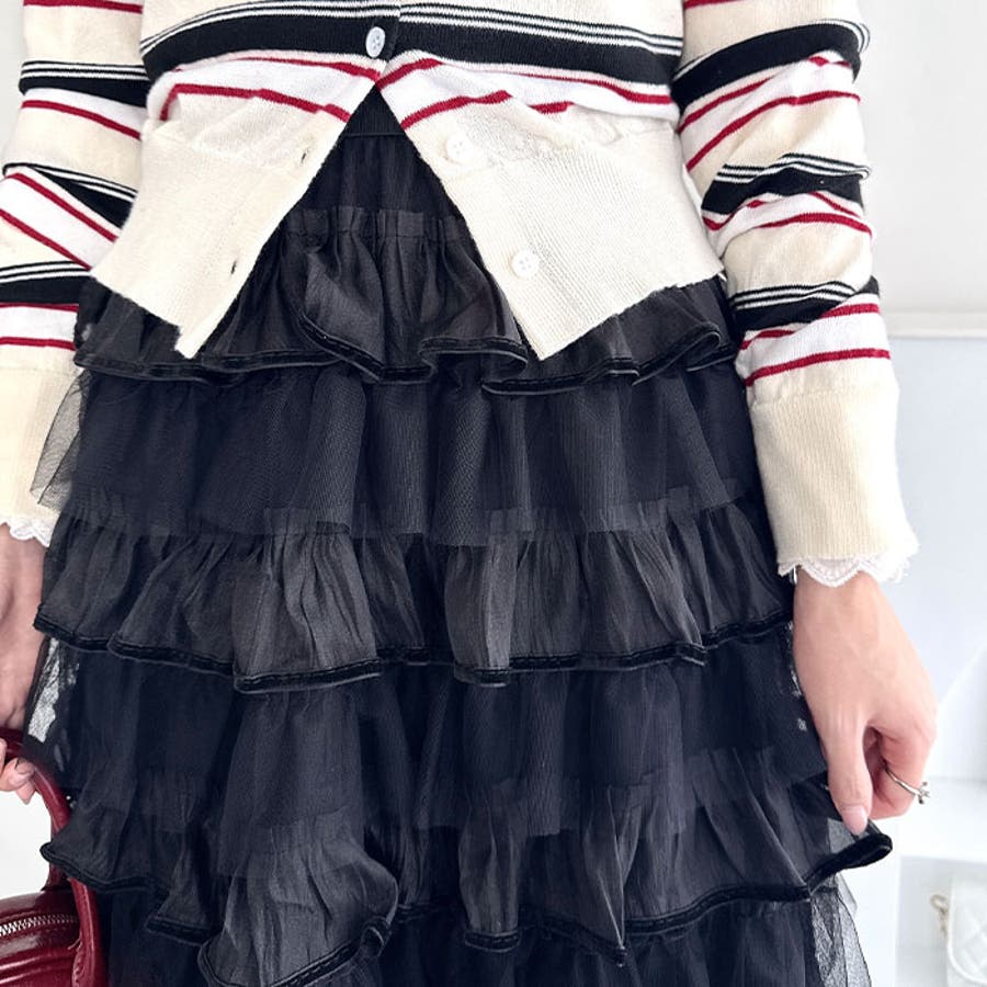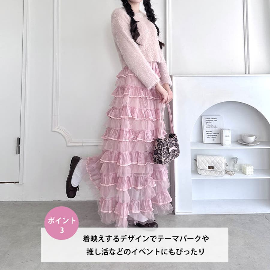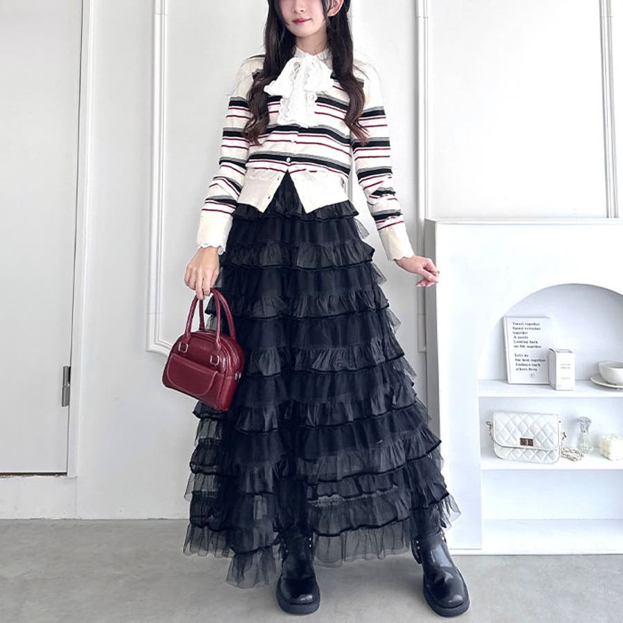 ブラウスやカーディガンと合わせて王道ガーリーやバレエコアなスタイリングはもちろん、