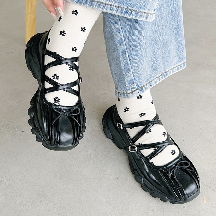 スニーカーソールを使用したメリージェーンバレエシューズなので甘すぎず、カジュアルなスタイリングにもマッチ。