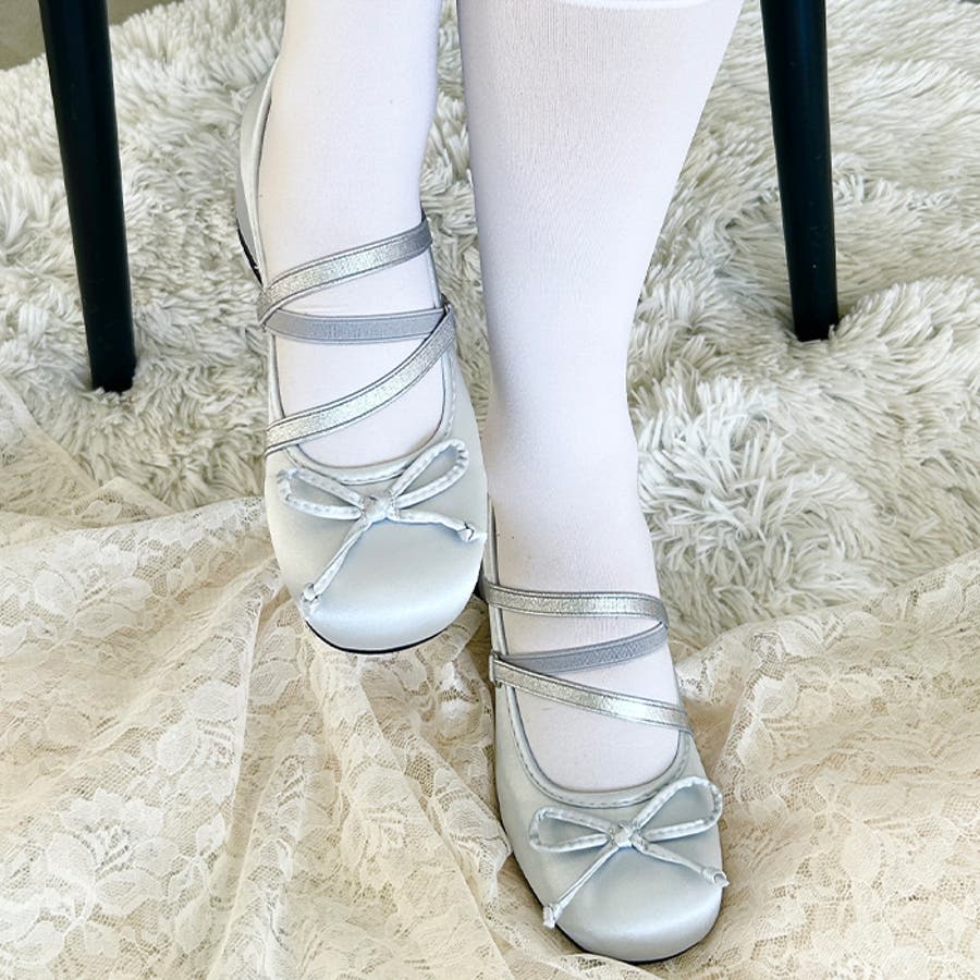 リボンは取り外し可能な2WAY仕様なので、スタイリングに合わせてストラップシューズとしても着用できます。