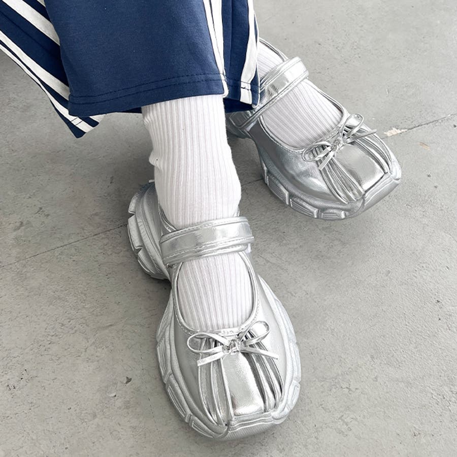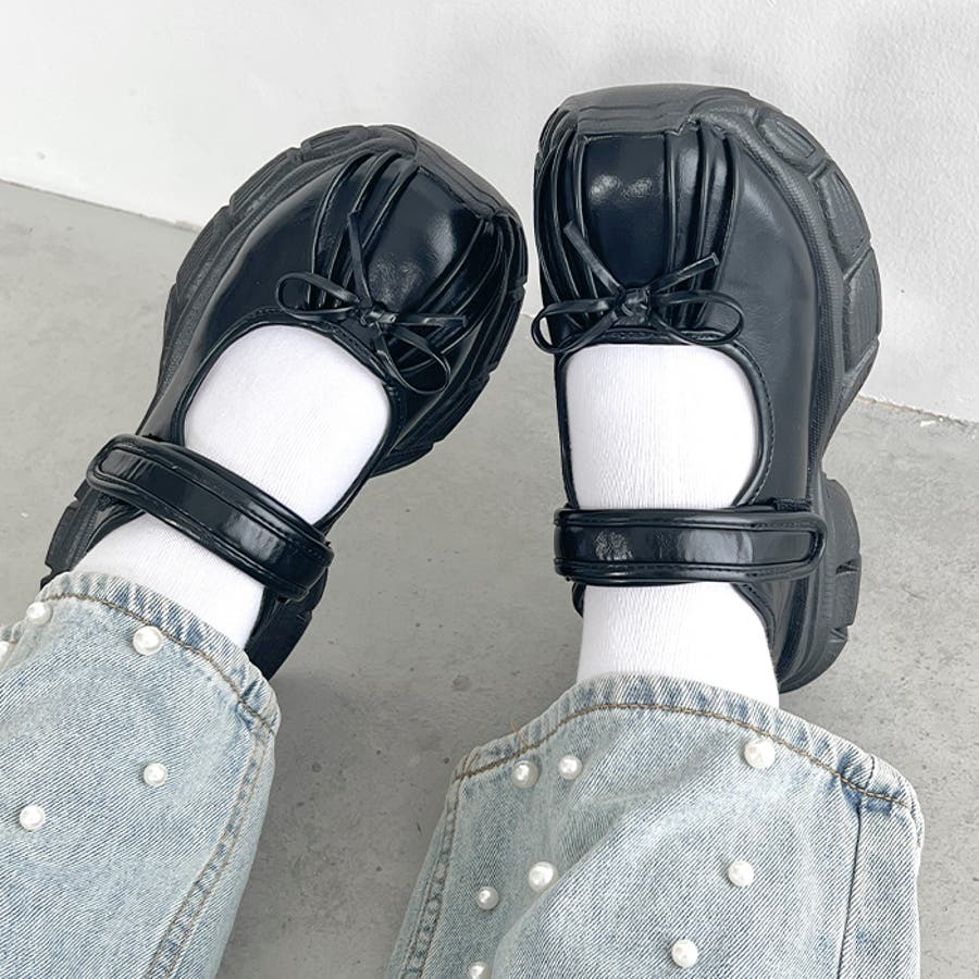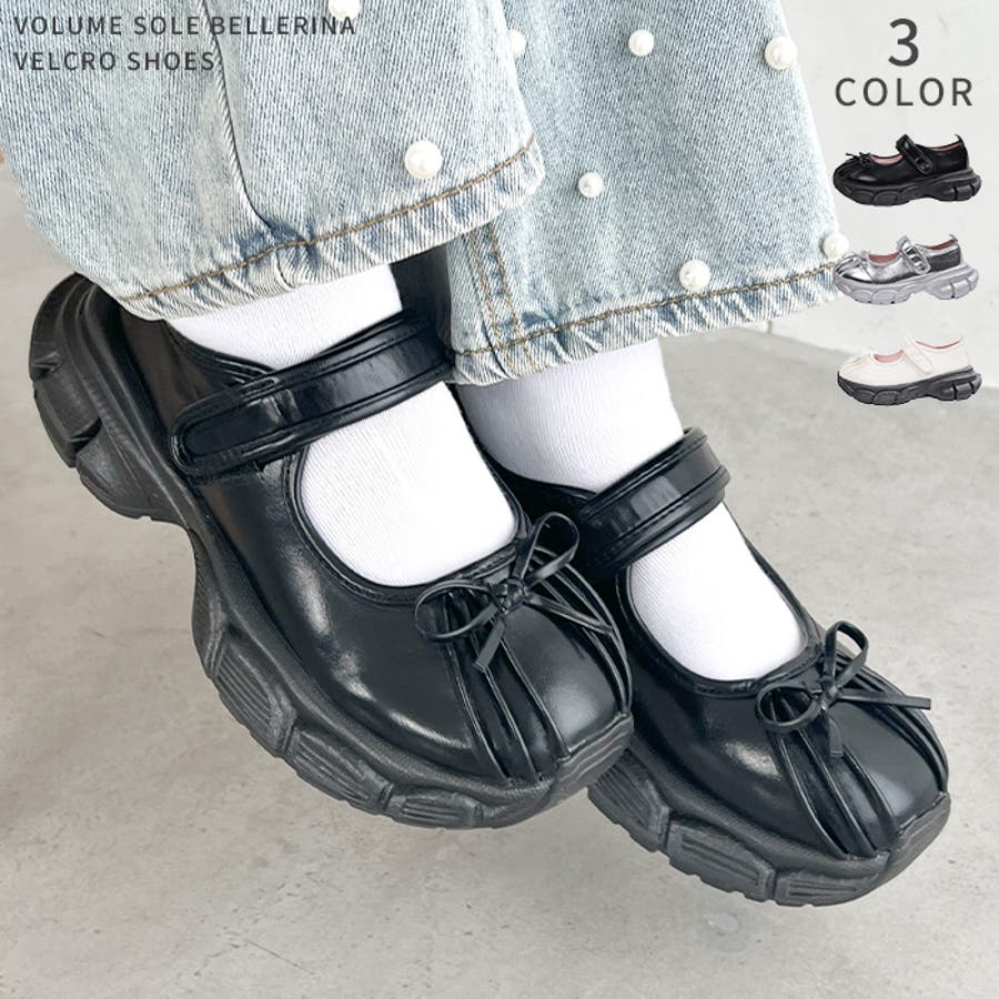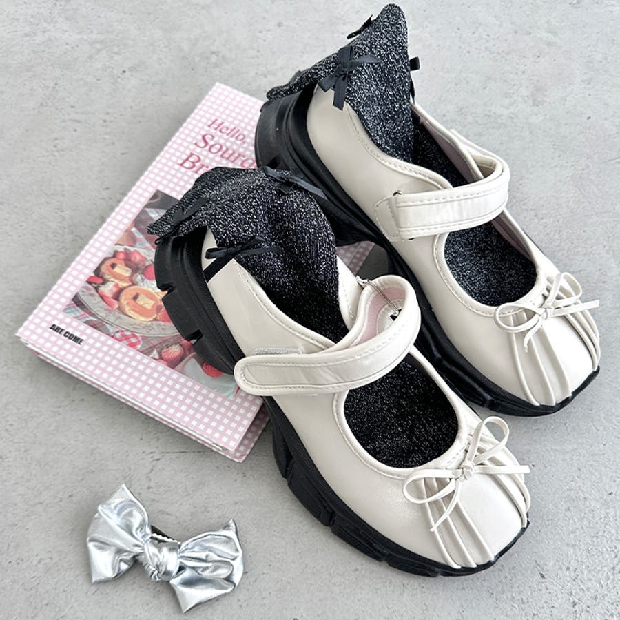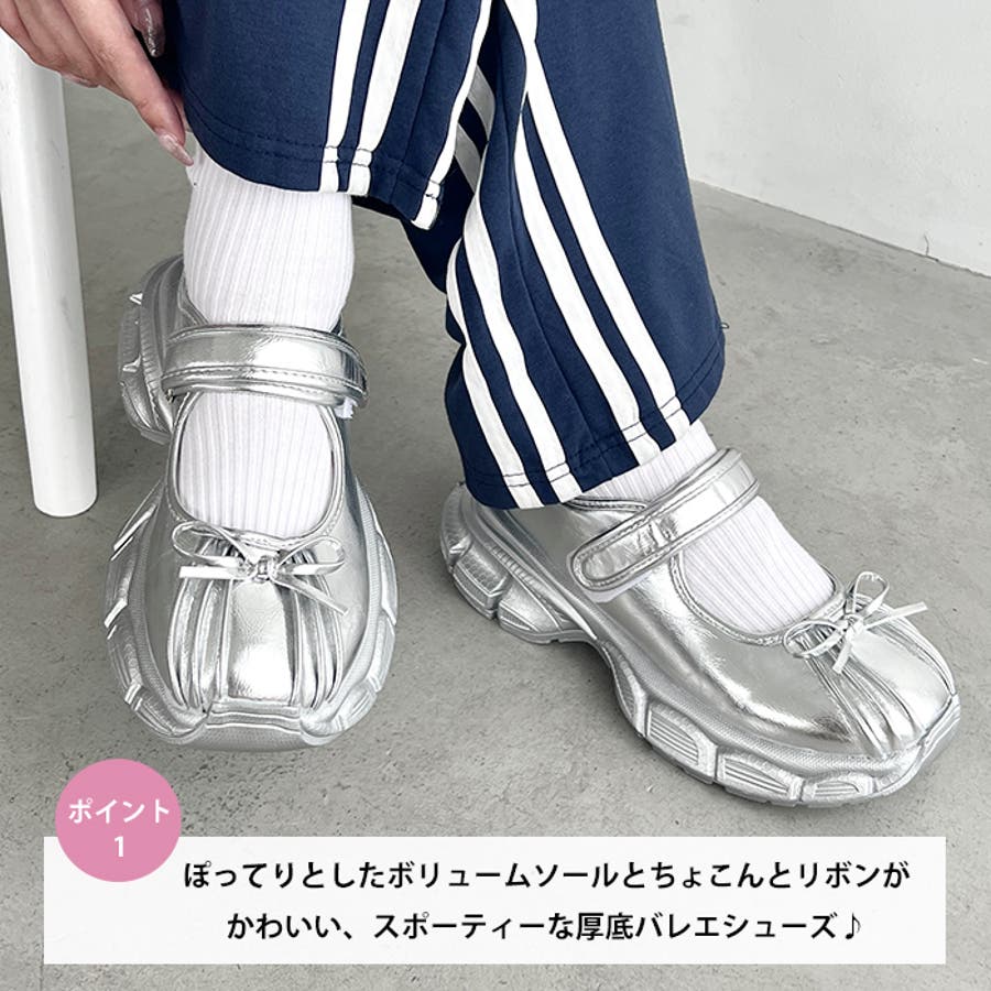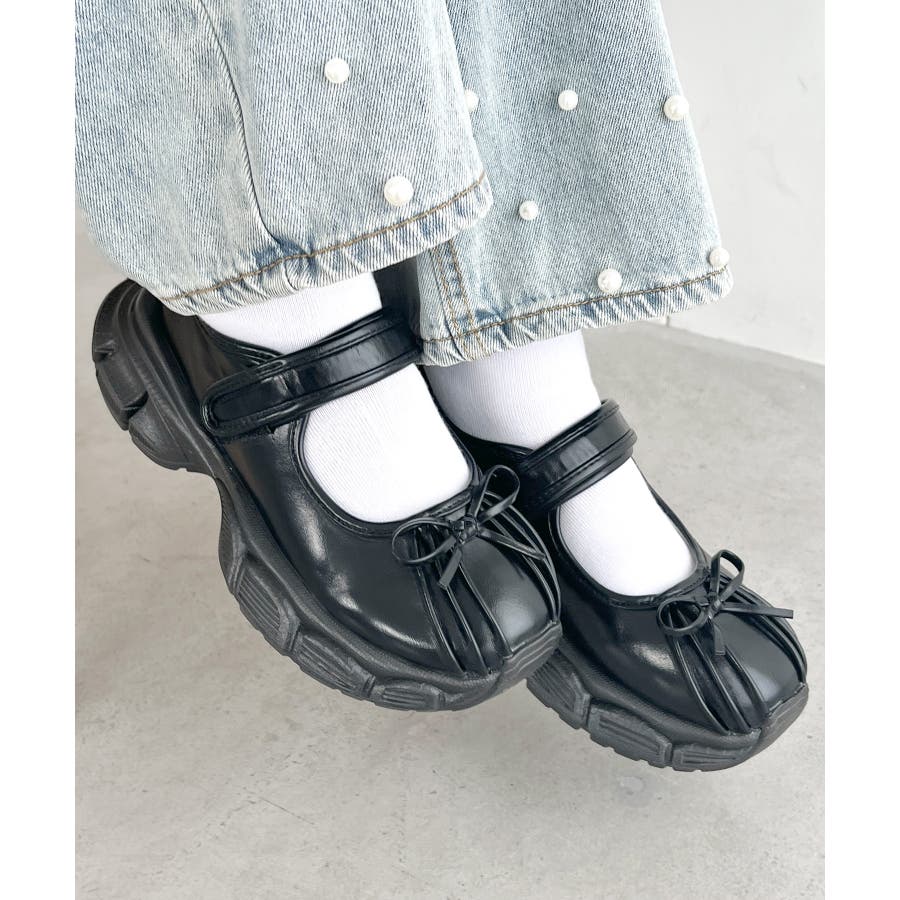 ・ぽってりとしたボリュームソールとちょこんとリボンがかわいい、スポーティーな厚底バレエシューズ♪