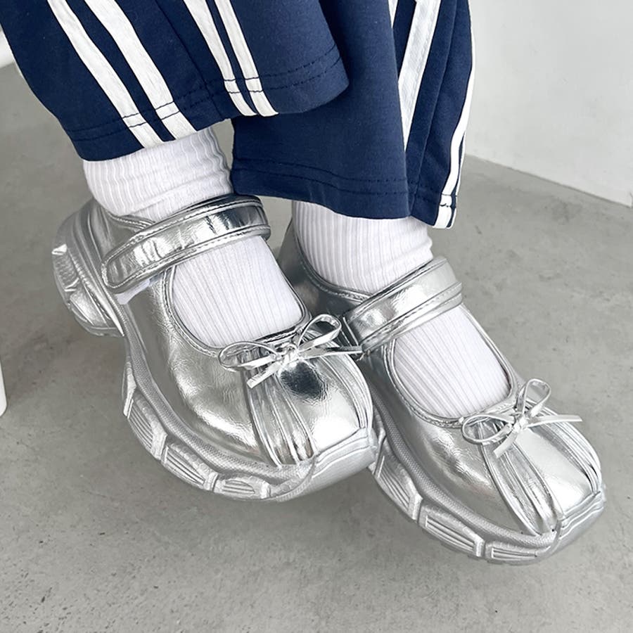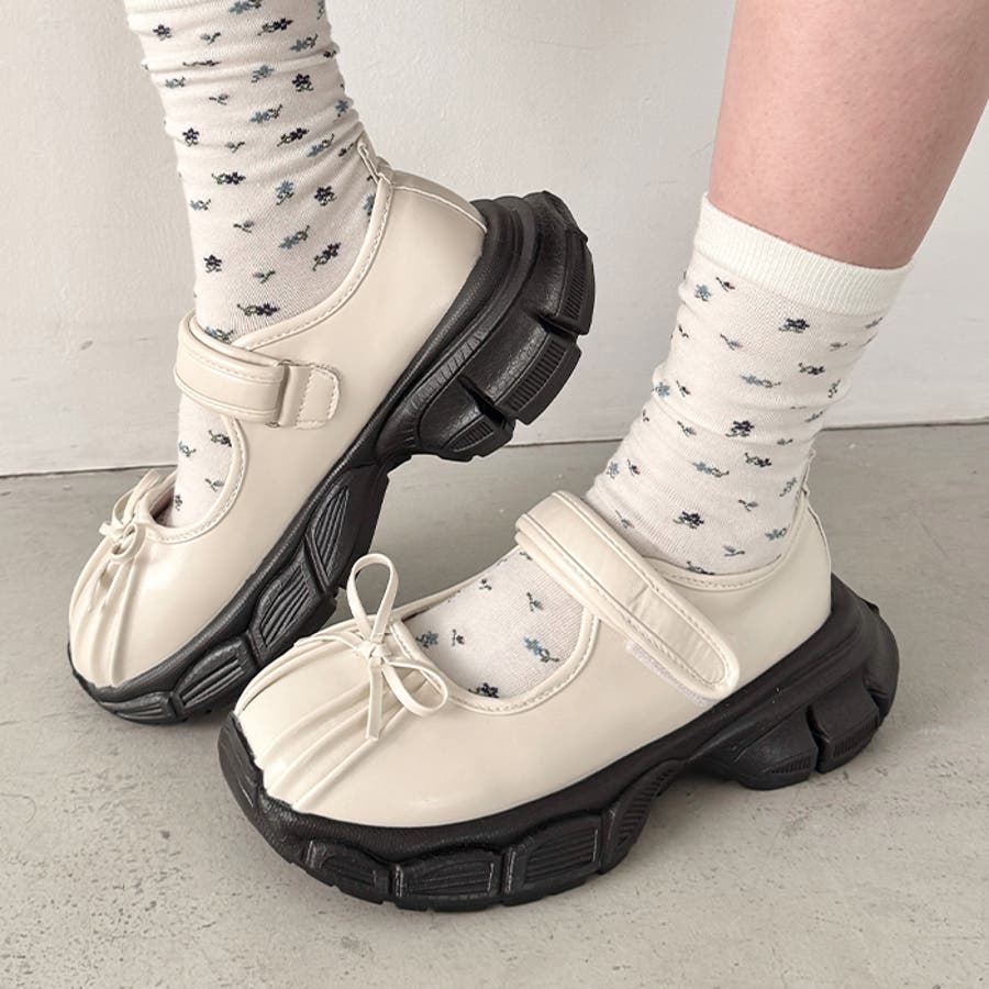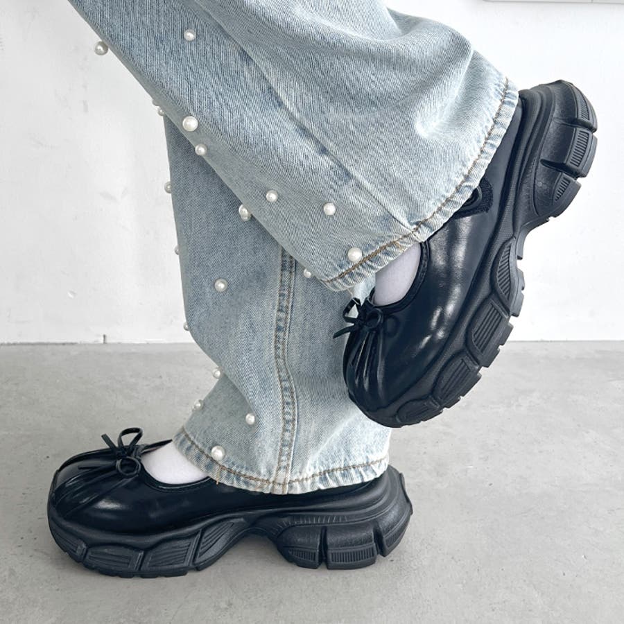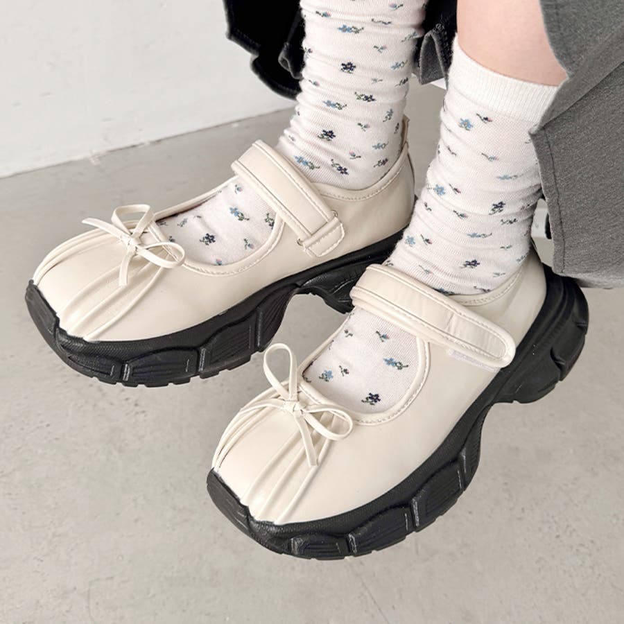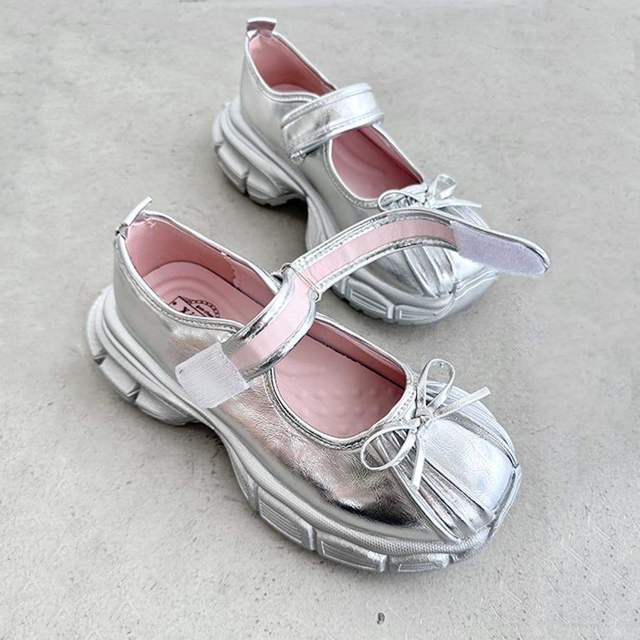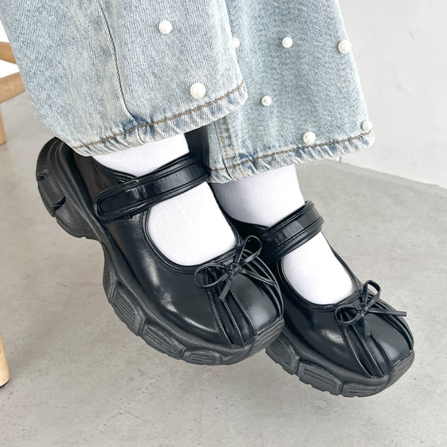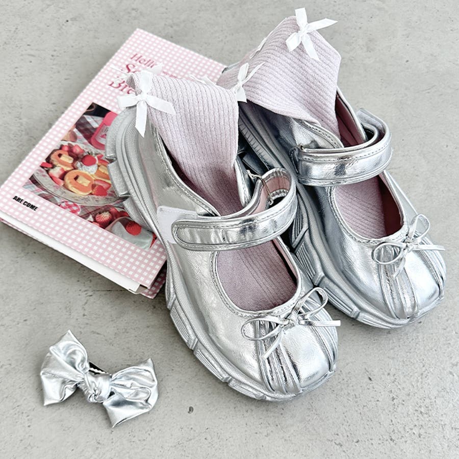・ぽってりとしたボリュームソールとちょこんとリボンがかわいい、スポーティーな厚底バレエシューズ♪