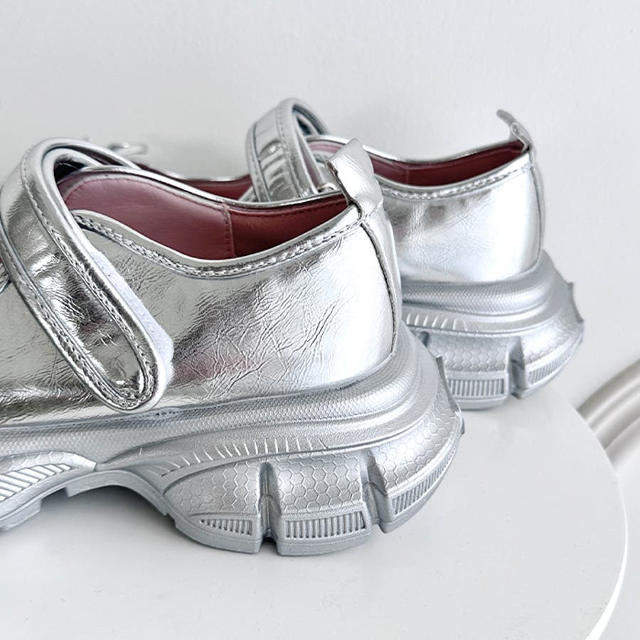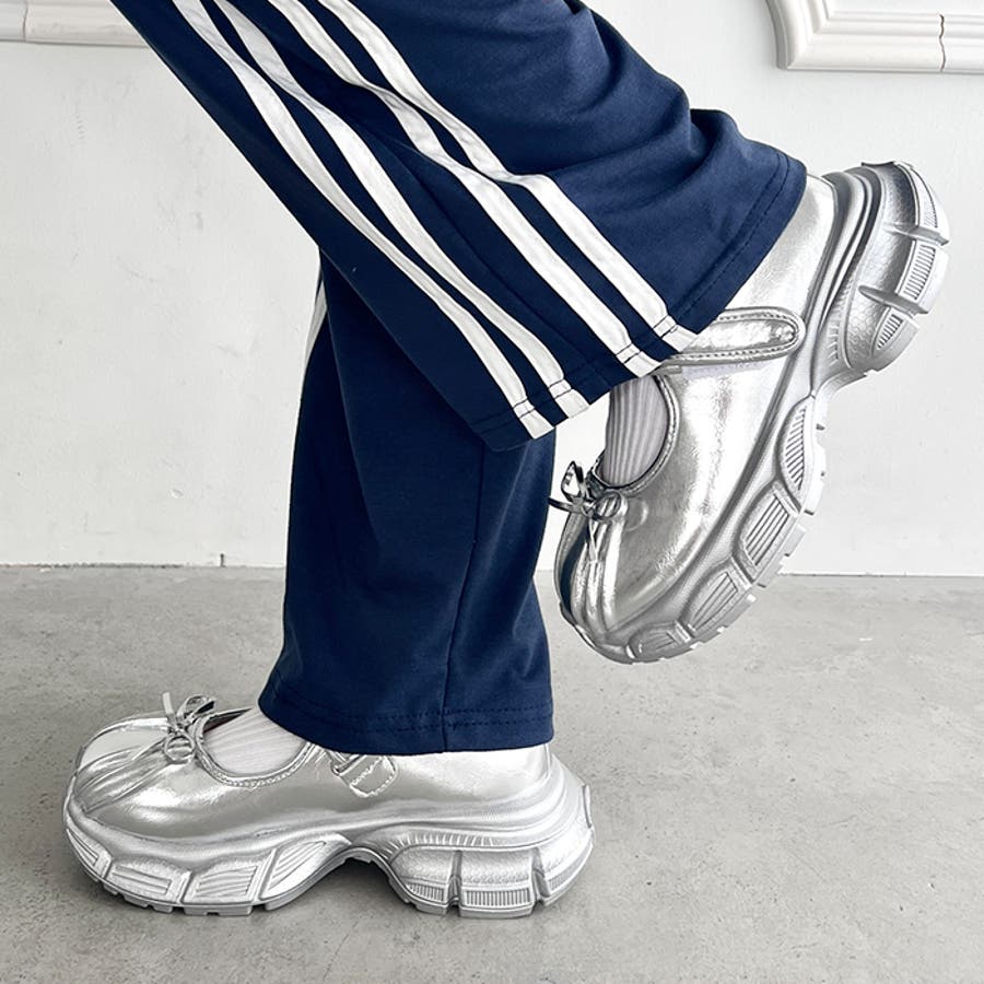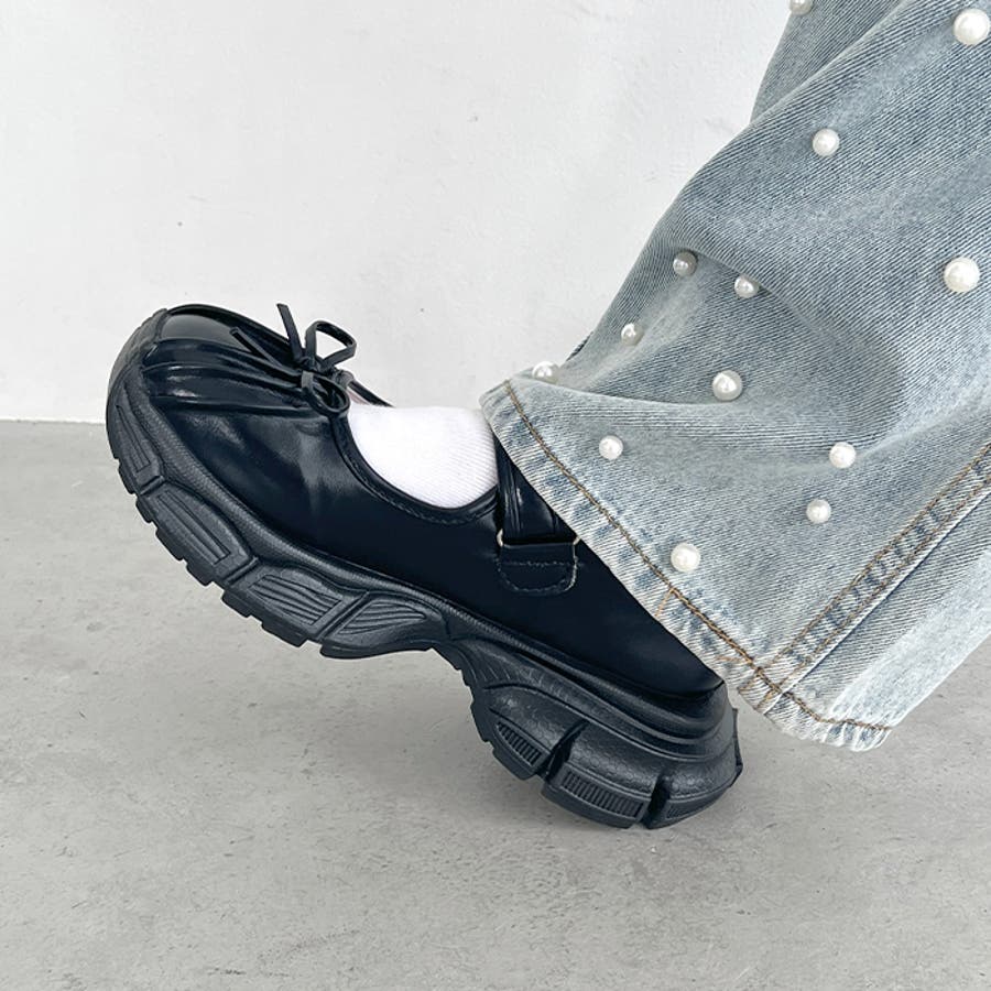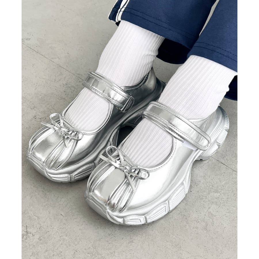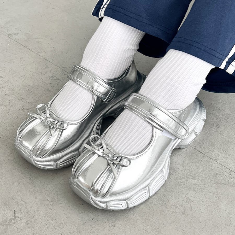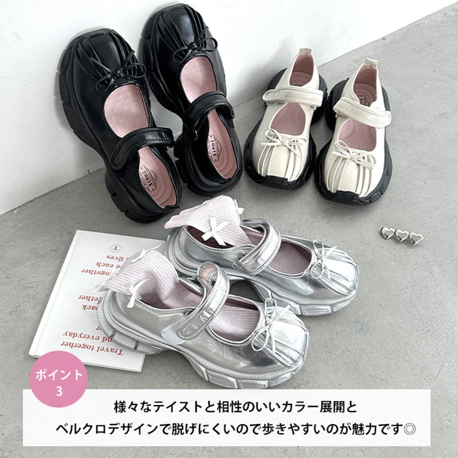 ・ぽってりとしたボリュームソールとちょこんとリボンがかわいい、スポーティーな厚底バレエシューズ♪