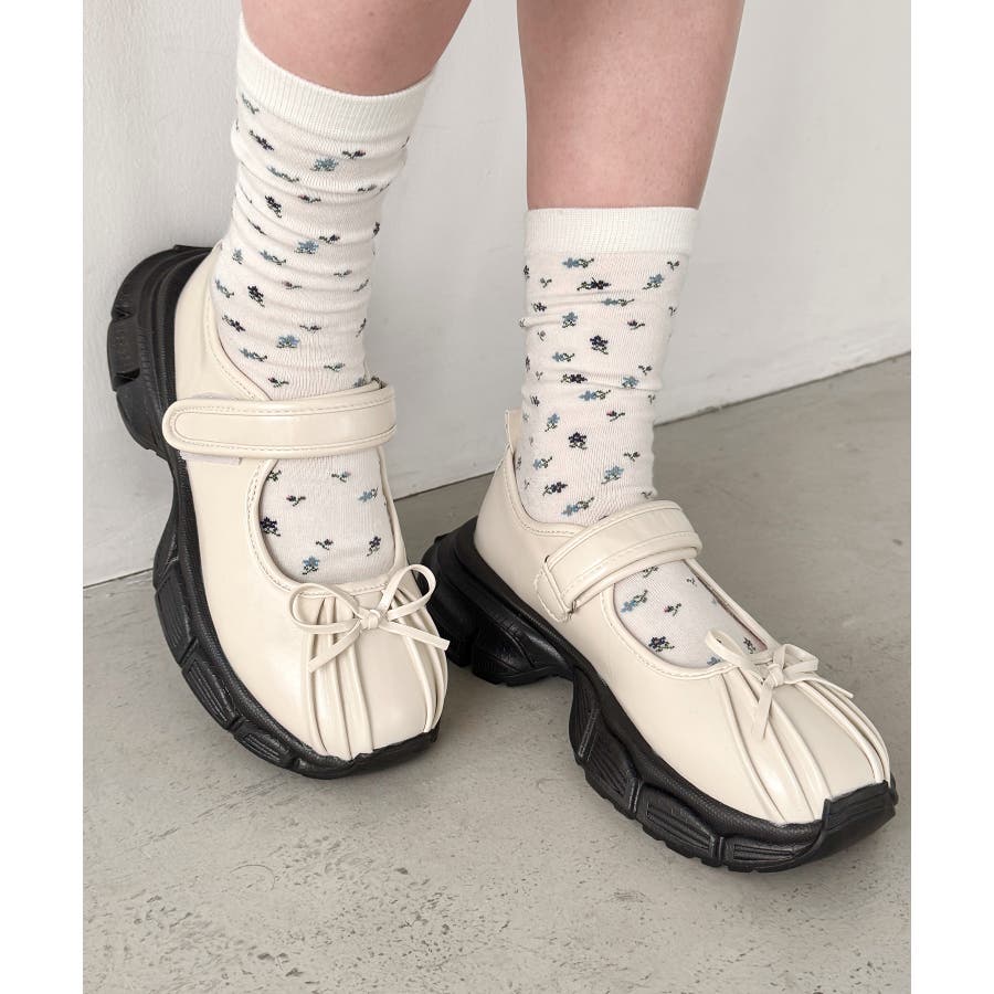 ・スニーカーソールを使用したメリージェーンバレエシューズなので甘すぎず、カジュアルなスタイリングにもマッチ