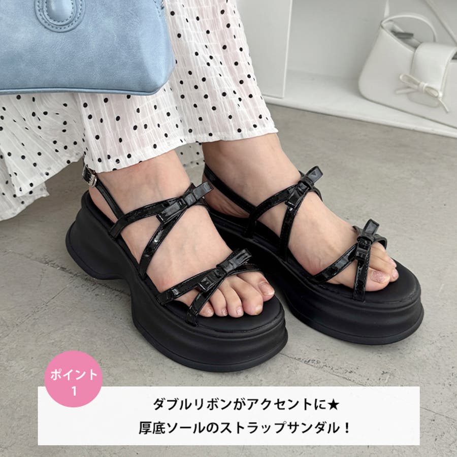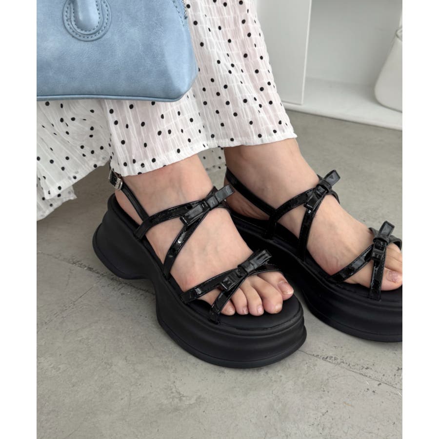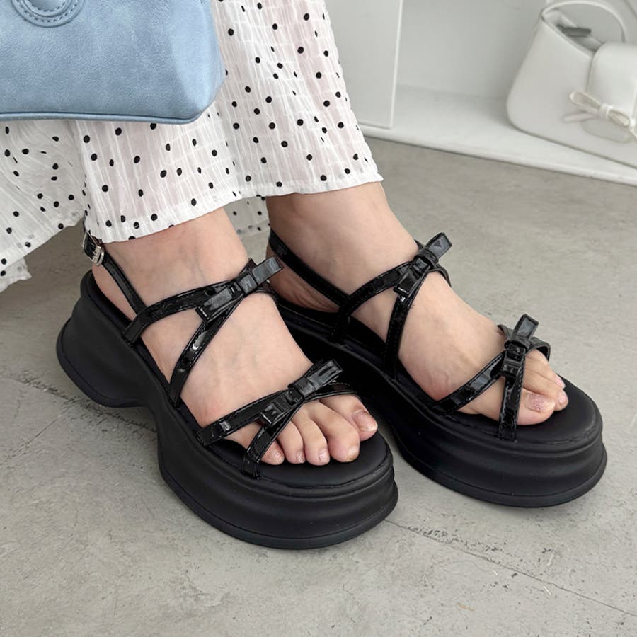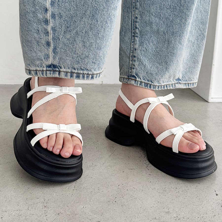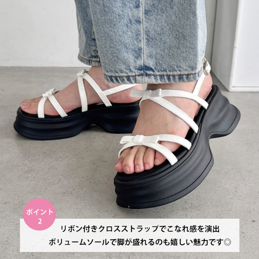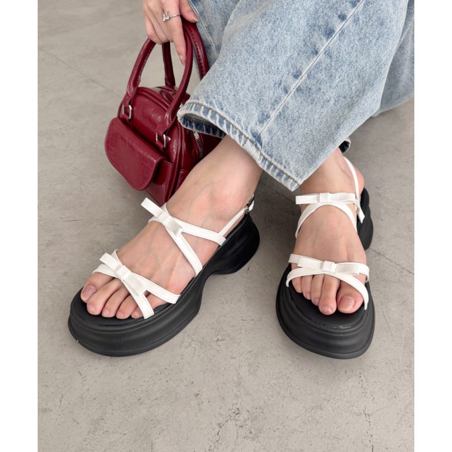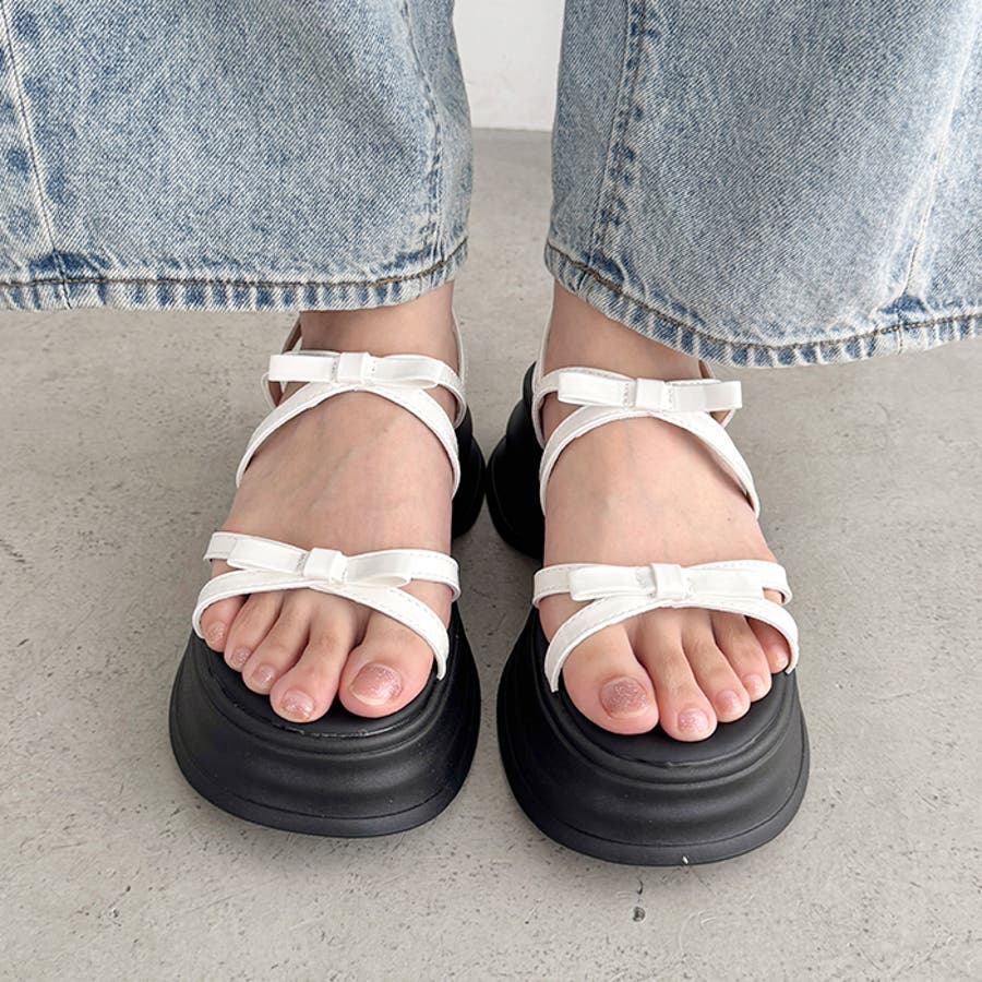 ・リボン付きクロスストラップでこなれ感のあるお洒落な足元を演出