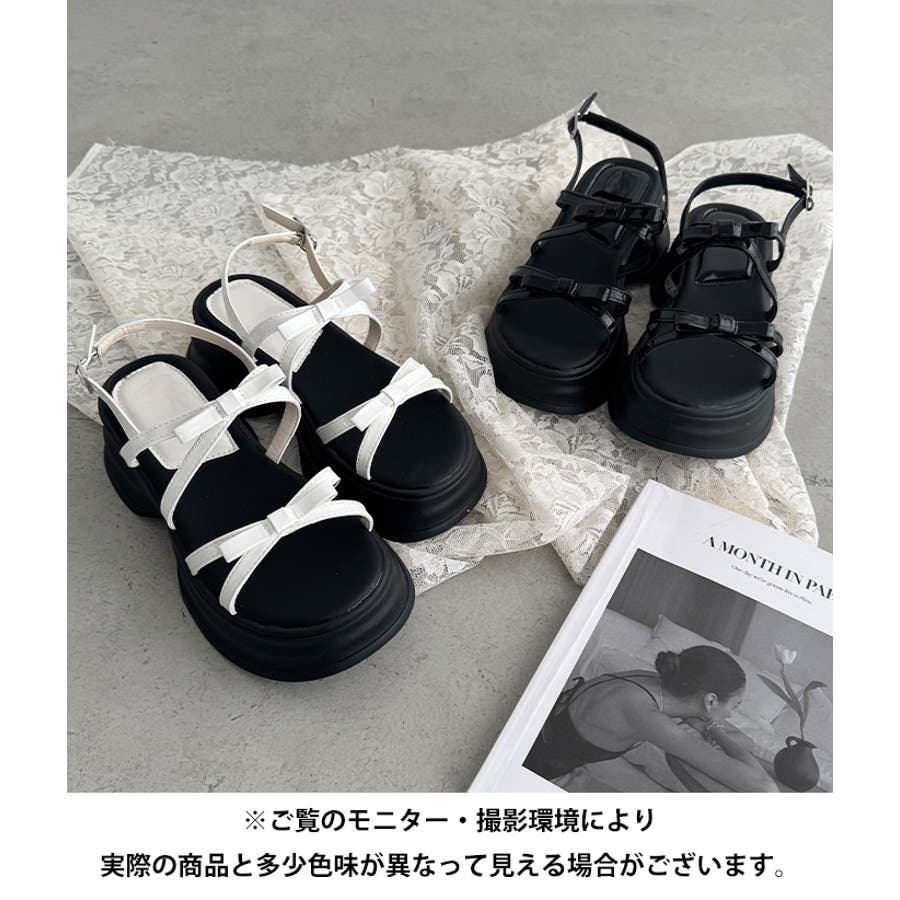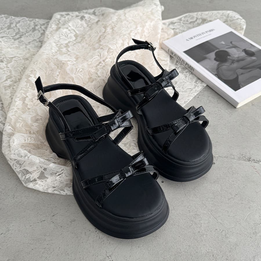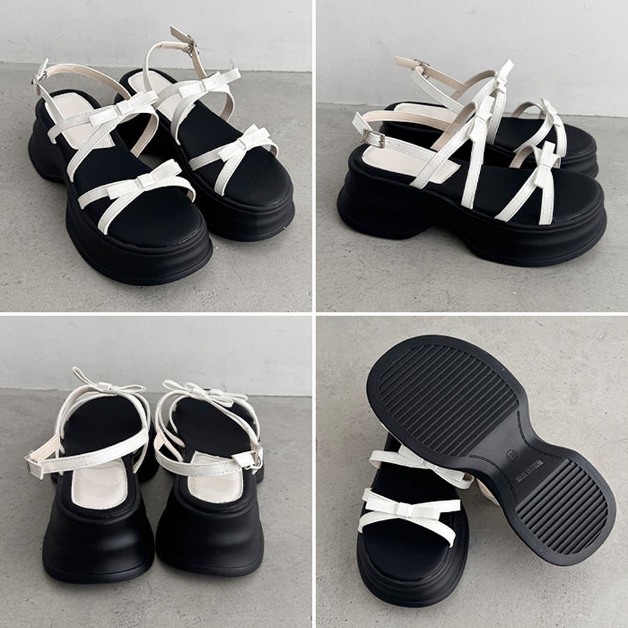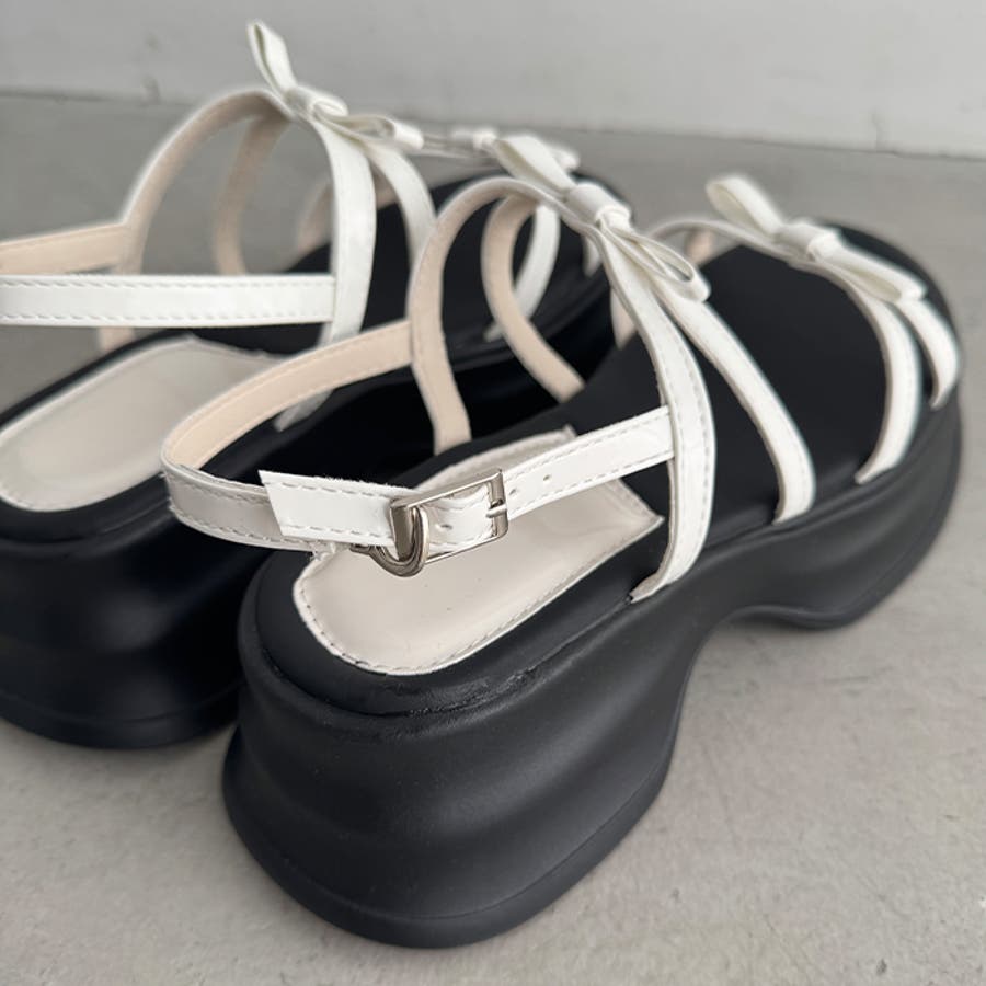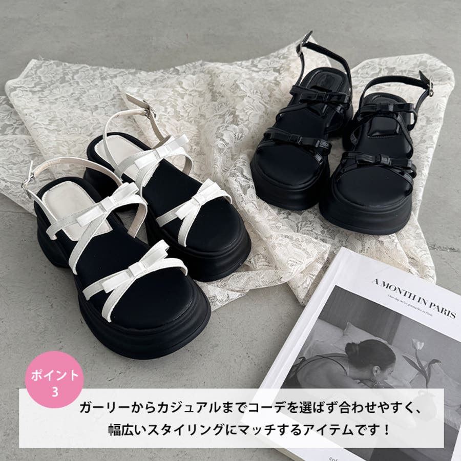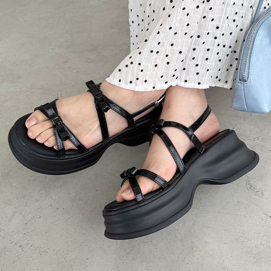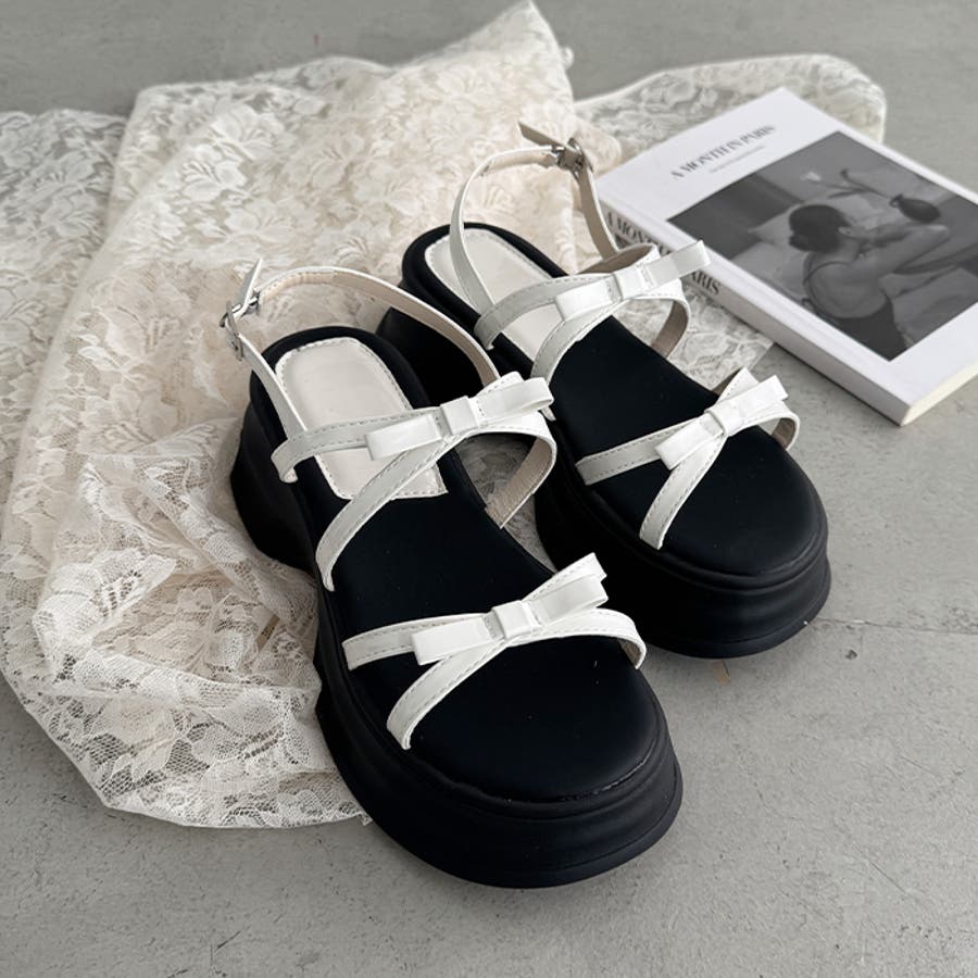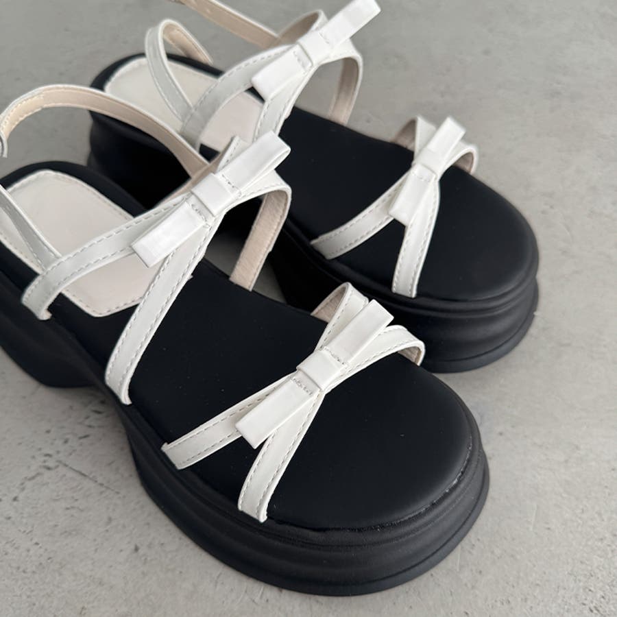 ・リボン付きクロスストラップでこなれ感のあるお洒落な足元を演出