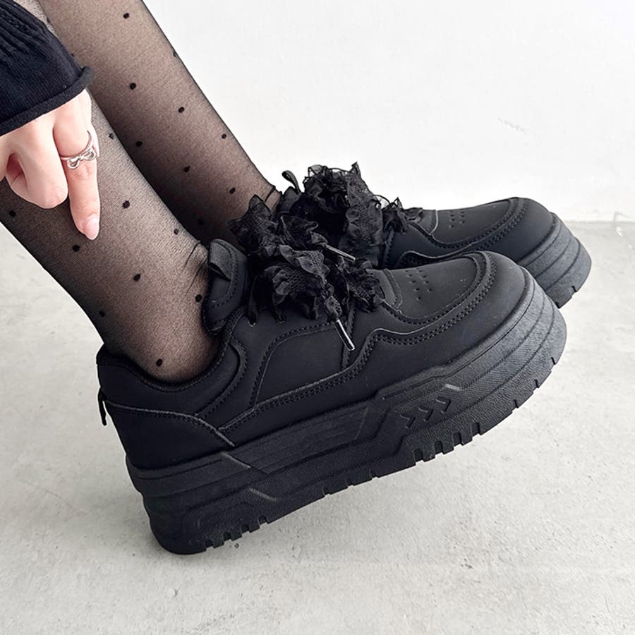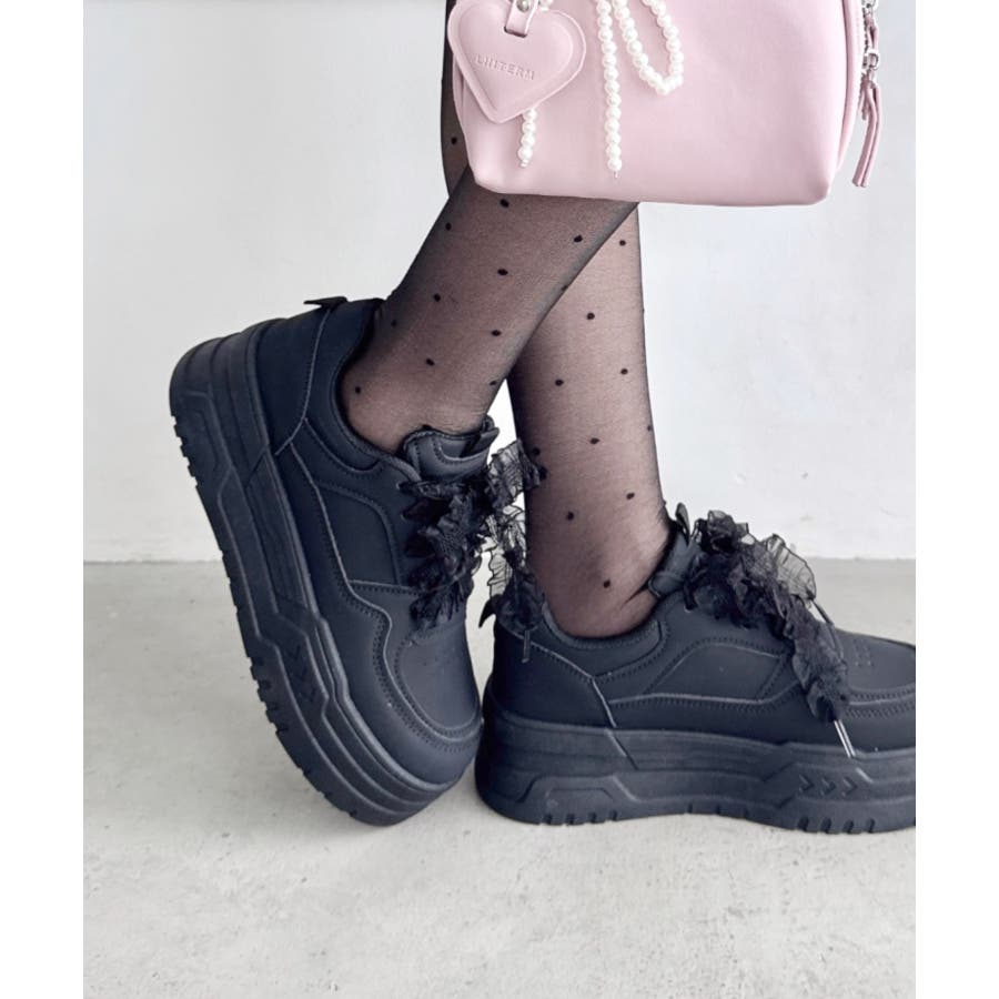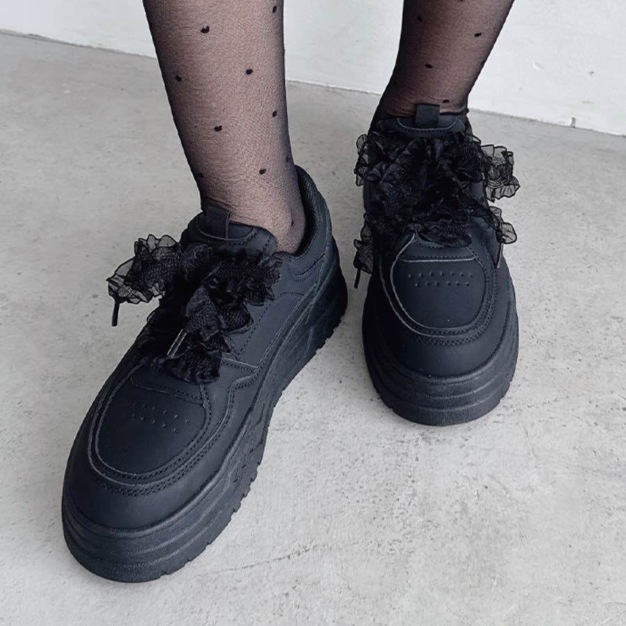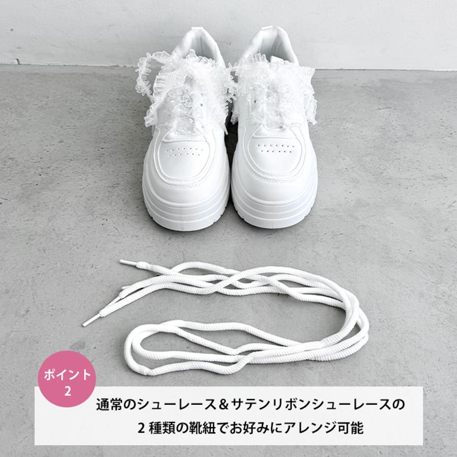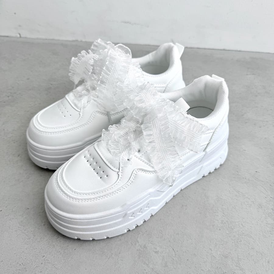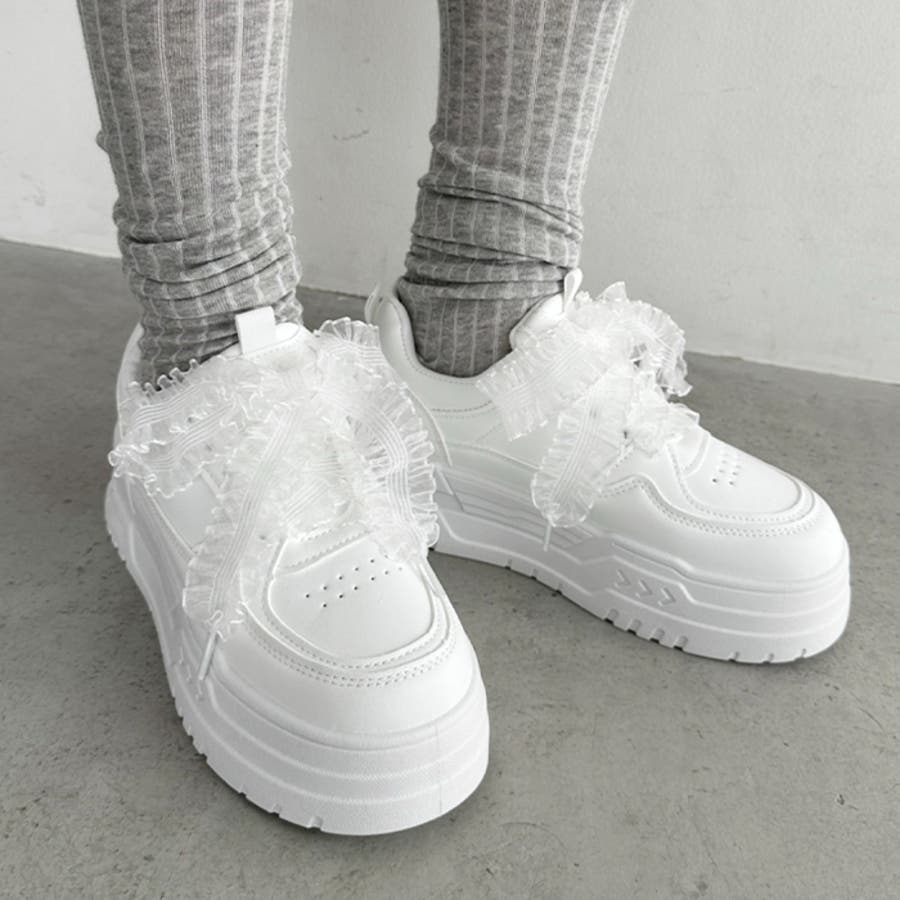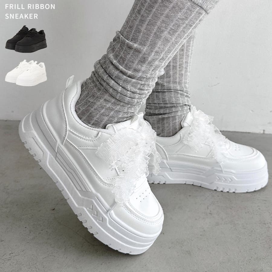 【靴紐2種SET】フリルリボン厚底スニーカー
