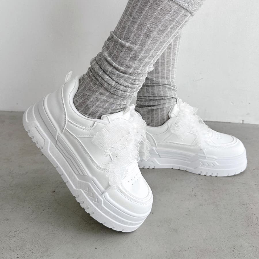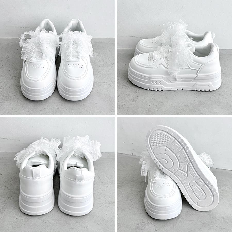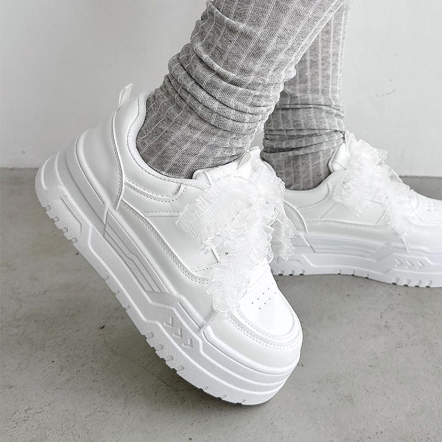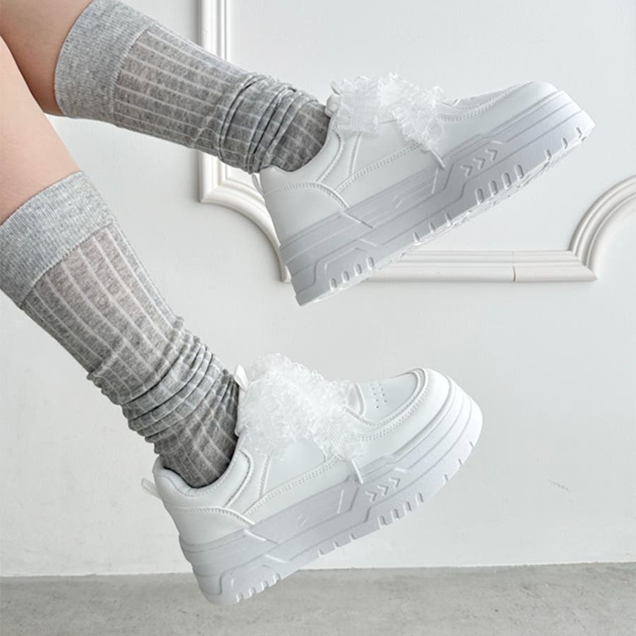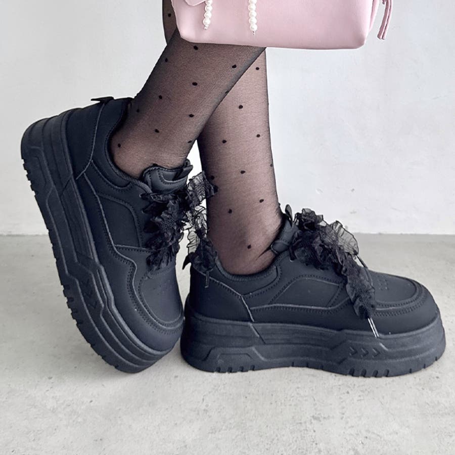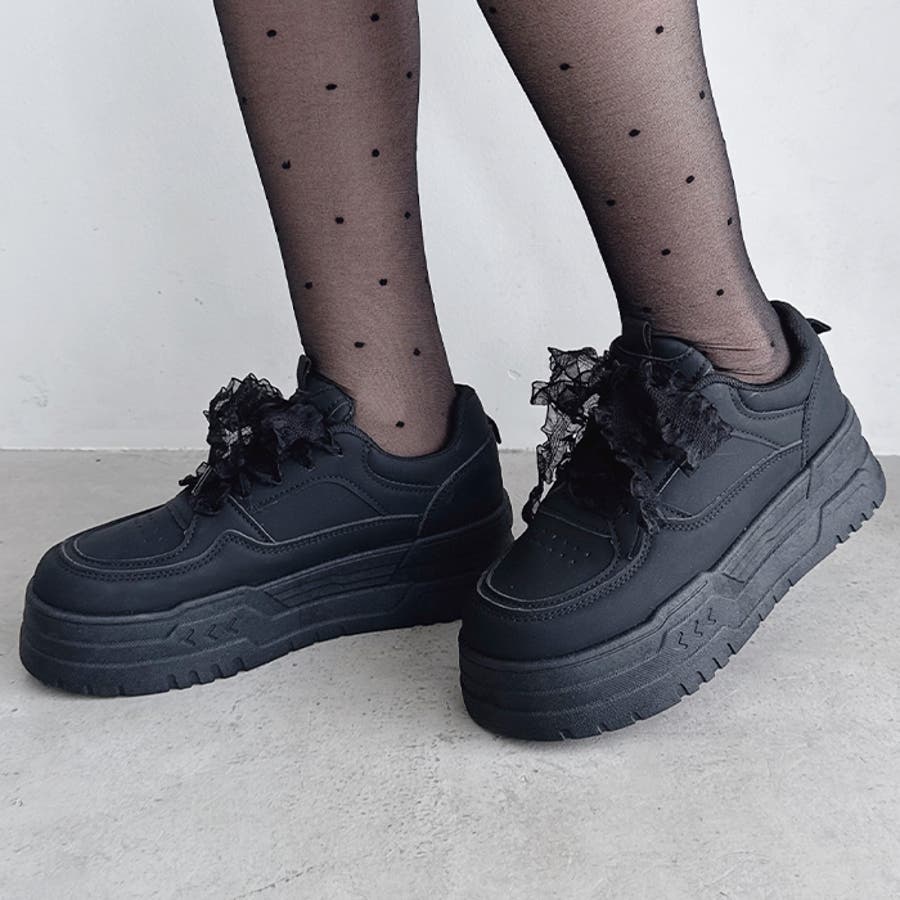 【靴紐2種SET】フリルリボン厚底スニーカー